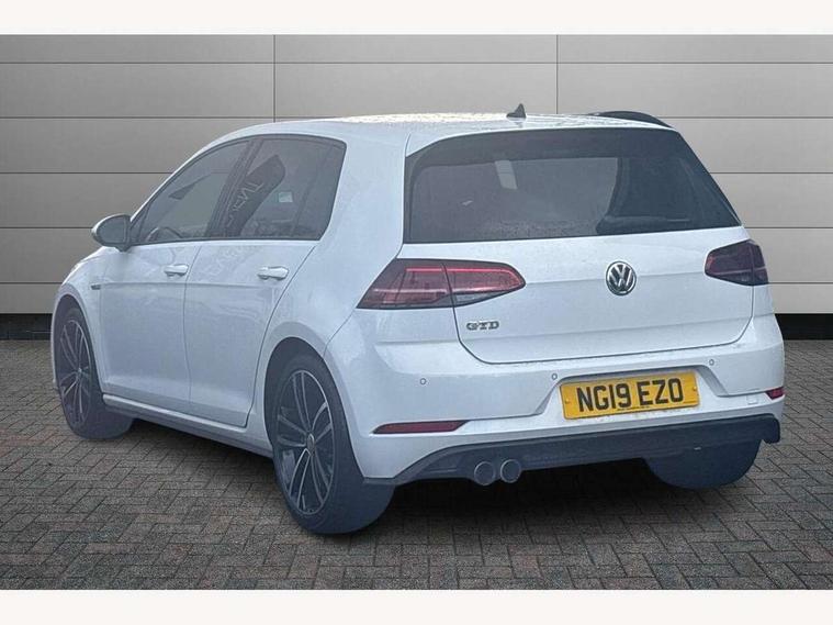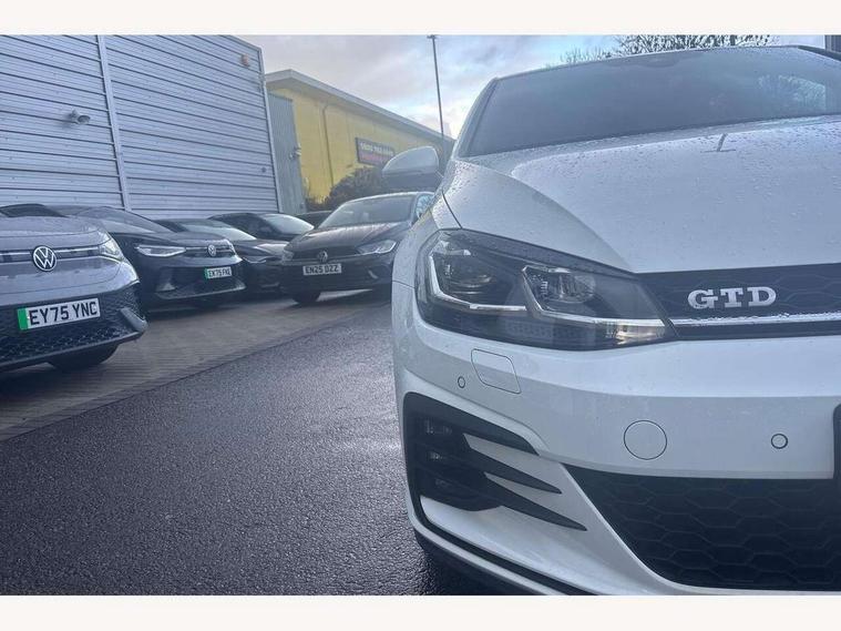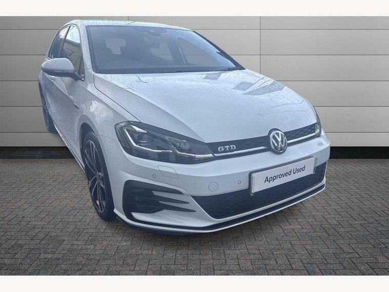 'Lights On' Reminder warning buzzer, ACC - Adaptive cruise control with front assist, forward collision warning, distance monitoring, city emergency brake and speed limiter, Bluetooth telephone and audio connection for compatible devices, Brake pad wear indicator warning light, Driver alert system, Driver profile selection, Driving Mode Selection with four preset modes - Eco, normal, sport or individual modes, Instrument cluster in white, Lane assist with dynamic light assist and traffic sign recognition, Misfuelling protection device, Multifunction computer with visual gear change recommendation for fuel consumption, Progressive power assisted steering, Push tank flap, Rear view camera, Speedo, rev counter, electronic odometer, trip, service interval display, exterior temperature and fuel gauge, Stop/start system, Warning buzzer and light for front seatbelts unfastened, Anti-tramp function, Battery regeneration during braking, Diesel particulate filter, Lowered sports suspension, XDS plus electronic differential lock, Composition media system, DAB Digital radio receiver, MP3/WMA compatability, Multi device interface (MDI) with USB connection, Premium USB cable in choice of either Apple or Android smartphone compatibility, SD card slot, SMS Functionality, USB and SD card connectivity, Volkswagen media control, 3D-LED tinted rear light clusters with indicator sweep function, Black rear diffuser, Body colour door handles, Body colour door mirrors with integrated indicators, Body colour rear roof spoiler, Body colour sports bumpers, Dusk sensor + automatic driving lights, Electric front windows, Electric rear windows, Electrically adjustable and heated door mirrors, Fully galvanised body, Heated rear windscreen, High level 3rd brake light incorporating LED Technology, Honeycomb radiator grille - black, LED daytime running lights, LED front fog lights with static cornering light function, Rear fog lamp, Rear window aerial, Rear window wash/wipe with intermittent wipe, Reflectors in all doors, Shiny black aerofoil downside, Sill extensions, Twin exhaust tailpipe, Unique GTD badging, Uniquely shaped front/rear bumpers, Windscreen wipers/ intermittent wipe + 4 position delay, 12V socket in luggage compartment, 3 rear headrests, 4 load lashing points in luggage compartment, 60/40 split folding rear seat backrest, Bag hook in luggage compartment x 2, Black headlining, Climate control - 2 zone electronic air conditioning with automatic air recirculation and allergy filter, Cooled glovebox, Dust/pollen filter, Front + rear carpet mats, Front centre armrest with storage compartment and two rear air vents, Front seat back storage pockets, Grab handles front x 2, rear x 2 with integrated coat hooks, Height and reach adjustable steering wheel, Illuminated door sills, Illuminated vanity mirrors, Instrument lighting white adjustable panel illumination, Interior light delay, Isofix preparation for 2 rear child seats, Leather gear knob and handbrake grip, Load through provision with rear centre armrest and cupholders x2, Luggage compartment lighting, Multifunction leather steering wheel with GTE logo and selector lever boot grip with grey stitching including paddle shift, Overhead storage box, Stainless steel pedals, Storage box in luggage compartment, Storage compartment in roof console with cover, Storage compartments in front doors, Storage compartments in rear doors, Stowable luggage compartment cover, Sun visors, Variable boot floor, height adjustable and removable, Ambient lighting pack - Golf, Convenience Pack - Golf, Light and Sight pack - Golf, Mirror pack - Golf, 3 rear three point seatbelts, Airbags - Driver's and front passenger's, curtain airbag, Driver's knee, front side impact and passenger's airbag deactivation switch, Anti-lock Braking System (ABS) with Hydraulic Brake Assist (HBA), Automatic post collision braking system, Child locks on rear doors, Driver/Passenger optimised head restraints, Electronic parking brake with auto hold, Electronic stability control (ESC) including Electronic differential lock (EDL) and ASR (Traction control) with deactivation via infotainment system, Front ventilated disc brakes and rear disc brakes, Pre crash preventive occupant protection, Three point height adjustable front seatbelts with tensioners, Tyre pressure loss indicator, Alarm with interior protection and deactivation via infotainment system, Electronic engine immobiliser, Keyless entry with start/stop button on centre console, Remote central locking with 2 remote folding keys, Chrome plated air vent surround, Chrome plated electric mirror adjustment light switch surround, Honeycomb black decorative inserts, Piano black centre console, Steel space saver spare wheel,