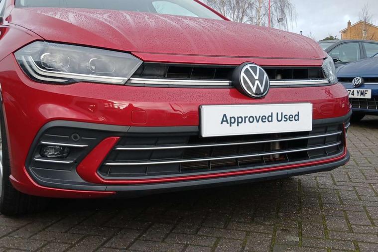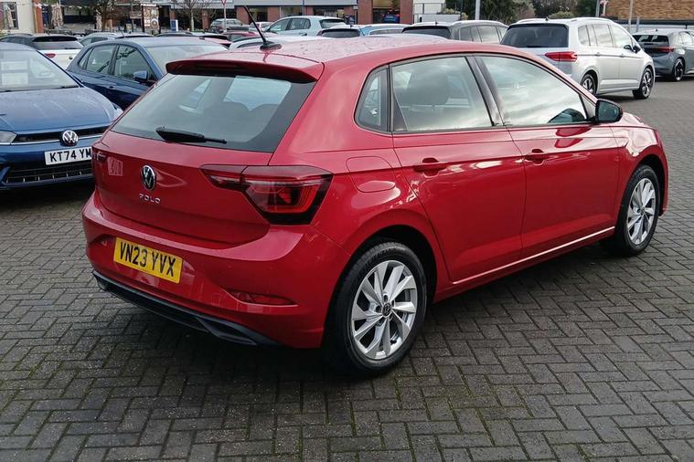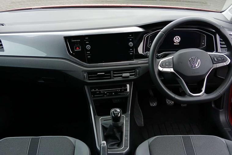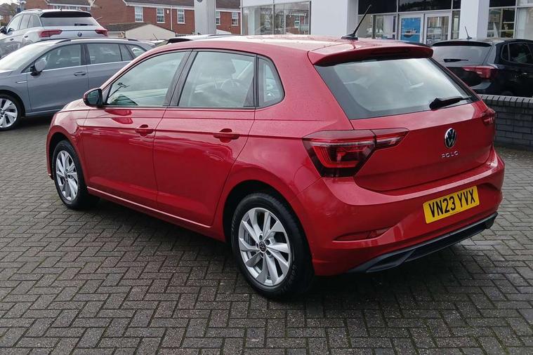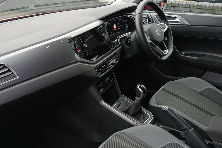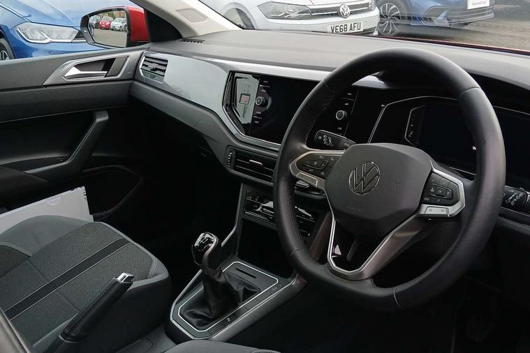 Adaptive cruise control without follow-to-stop and speed limiter, Bluetooth mobile phone interface, Digital Cockpit Pro with 10.25" Display, Driver alert system, Dynamic road sign display, Emergency call service, Power assisted speed sensitive steering, Preparation for We connect and We connect plus, Speedo and rev counter, electronic odometer, trip, service interval display and fuel gauge, Standard rear axle, Travel Assist - Lane keeping system and traffic jam assist, Travel assist including emergency assist, Trip computer, Warning signal and warning light for front and rear seatbelts not fastened, Washer fluid level indicator, Wireless app connect, Front wheel drive, Rear shock absorpion, Start-stop system with battery regeneration (recuperation - energy recovery during braking), DAB Digital radio, Diversity antenna for FM reception, Front and rear 6 speakers, Automatic dimming interior rear view mirror, Automatic headlights, Body colour door handles, Body coloured bumpers and radiator grille with chrome trims, Electric front windows, Heat insulating darkened glass in side and rear windows, Heat insulating glass windscreen, LED separate daytime running lights with coming/leaving home function, Power folding adjustable/heated exterior mirrors and front passenger exterior mirror lowering function, Rain sensor, Rear electric windows, Rear fog light, Rear side wing doors, Rear windscreen washer and wiper with interval delay, Third brake light, 12V power socket in centre console, 2 USB-C ports in the front, 2 USB-C charging sockets on the center console in the rear, 3 rear head restraints, 60/40 split folding rear seat and rear seat bench not split, Air care climatronic air conditoning system with active combination filter and 2-zone temperature control, Ambient lighting, Chrome plated radiator grille inserts, air vent surrounds and light switch surrounds, Door and side trim panel, Driver and front passenger seat height adjustment, Driver/passenger sunvisors with illuminated vanity mirrors, Front + rear carpet mats in recycled material, Front centre armrest, Front footwell illumination, Front seat backrest storage pockets, Front sports comfort seats, Handbrake lever handle in leather, Headliner in recycled material, Isofix child seat preparation easy-fit (for two outer rear seats, and front passenger seat) compatible with I-size, Leather trimmed gear knob, LED interior light with switch off delay and dimmer, 2 reading lights front and rear, Luggage compartment cover, Luggage compartment floor, Luggage compartment lighting, Lumbar adjustment for front seats, Multifunction steering wheel, Single front passenger seat, Standard pedal cluster, IQ LED matrix headlights pack - Polo, Light and vision pack - Polo, 3 point height adj front seatbelts + pretensioners, 3x3 point rear seatbelts, ABS, Driver and front passenger airbag with front passenger airbag deactivation, Drivers and front passengers safety optimised head restraints, ESC (Electronic stability control) + EDL (Electronic Differntial lock) and ASR (Traction control), Extended and predictive pedestrian/ cyclist protection, Front curtain and side airbags with center airbag, Front disc brakes, Hill hold control, Manual child lock in rear doors, Rear drum brakes, Single tone horn, Tyre pressure loss indicator, Alarm with interior protection, Anti-theft alarm system with interior monitoring, backup horn, and towing protection, Anti-theft wheel bolts, Electronic engine immobiliser, Chrome applications on rotary light, mirror adjustment, window regulator switches, outlet with frame in black, Low rolling resistance tyres,