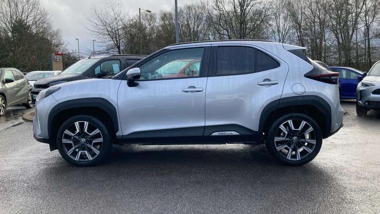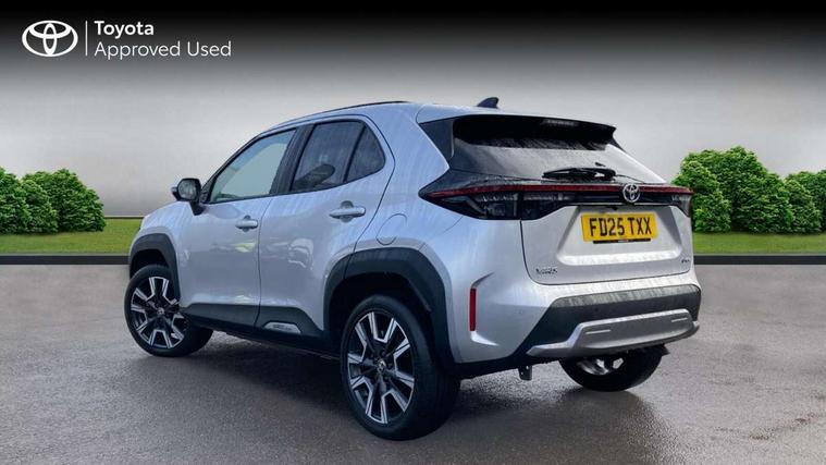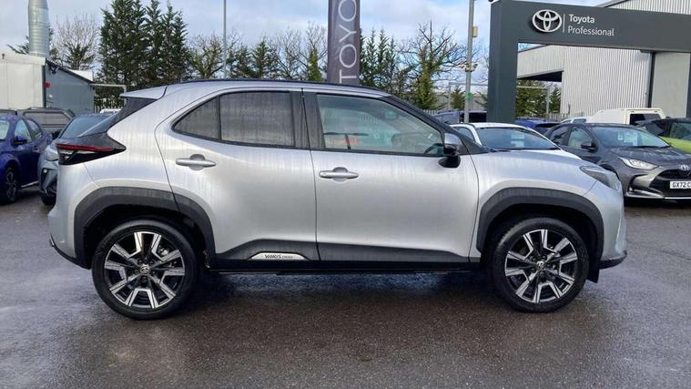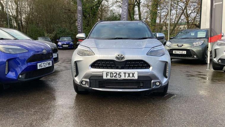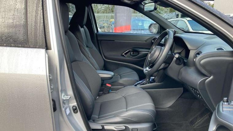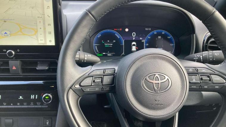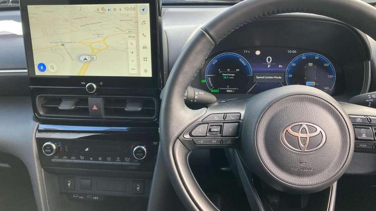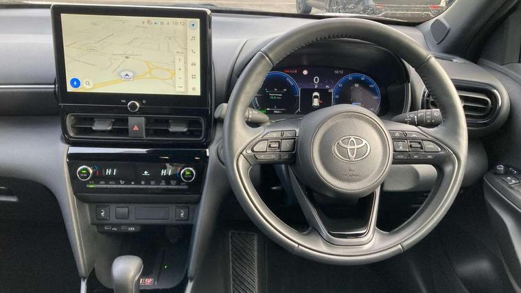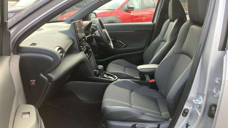 10.5" Multimedia display screen, 10.5" Toyota smart connect+ with navi multimedia system with wireless Smartphone integration incl Apple CarPlay, 360 degree panoramic view monitor, 7" Multi information display screen, Adaptive cruise control, multi info switches on steering wheel, Adjustable speed limiter, Advanced parking assist, Blind spot monitoring, Bluetooth connectivity, Color multi-information display, Digital speedometer, Digital tachometer, Drive mode selector, Driver attention alert system, Dynamic guide lines on reversing camera, eCall emergency system, Electric power steering, Emergency driving stop system, Full range intelligent adaptive cruise control, Hybrid system indicator, Intelligent front and rear parking sensors with clearance sonar and automatic braking, Intersection turn assist, Key reminder warning, Lane change assist, Lane trace assist, My T Connected services, Power tailgate, Pre-collision system enhanced with emergency steering assist, Rear cross traffic alert, Remote boot door release in cabin, Road sign assist - RSA, Safe exit assist, Tailgate, Telephone switch on steering wheel, Wireless Mobile Phone Charger, Steering assisted vehicle stability control, 6 speakers, DAB Digital radio, Front USB Type-C connector, Front USB-C device charger, Acoustic windscreen glass, Anti-jam protection on power windows, Auto dimming rear view mirror, Auto high beam [AHB] with on/off switch, Auto intermittent windscreen wipers, Automatic headlights, Automatic headlights cut-off, Automatically retractable door mirrors, Black door moulding, Black lower front grille, Black protection moulding on side doors, Black roof rails, Black wheel arch mouldings, Body colour door handles, Body colour front bumper, Body colour rear bumper, Electric adjustable heated door mirrors, Follow me home headlights, Front and rear electric windows with auto up/down function, Gloss black upper front grille, Headlight cut off reminder, Indicators integrated on door mirrors, Intermittent rear wiper, Kick activated power back door, LED 3rd brake light, LED daytime running lights guide, LED front fog lights, LED front light guide, LED Indicators, LED projector headlights, LED rear lights with sequential indicators, Manual headlight levelling, Meshed shape upper front grille, Noise reduction layer on windscreen, Pre wiring for towing hook, Privacy glass, Rain sensor, Rear roof spoiler, Rear side wing doors, Rear window defogger, Shark fin antenna, 12v power outlet - front, 12V power point in boot, 2x Rear coat hooks, 3 seat bench in 2nd row, 3 spoke leather steering wheel, 40/60 split deckboard, 40:20:40 split folding rear bench seat, Adjustable rear headrests, Adjustable speed limiter switch on steering wheel, Boot light, Central armrest, Driver and front passenger personal lights, Driver and front passenger Whiplash injury Lesseing seats, Driver and passenger seatback pockets, Dual zone automatic air conditioning, Fabric door trim, Front console box, Front cup holders, Front door pockets, Front head restraints, Front sport seats, Front/rear assist grips, Gear shift indicator, Grey roof lining, Heated driver and passenger seats, Heated steering wheel, Height adjustable driver's seat, Height adjustable front passenger seat, Hooks for luggage holding belts, ISOFIX child restraint system, Lane departure alert switch on steering control, Leather gearshift, LED centre room light, Light on driver and passenger sun visor, Manual telescopic and tilting steering wheel, Mirror on driver and passenger sun visor, Nanoe-X air purifier, Partial synthetic leather upholstery, Pollen air filter, Power adjustable lumbar support on driver seat, Rear cup holders, Rear door pockets, Rear head restraints, Remote air-conditioning system, Single compartment glovebox, Single front passenger seat, Soft tonneau cover, Storage box under boot floor, Voice recognition switch on steering wheel, White ambient lighting in centre console, White ambient lighting in footwell, White ambient lighting on front doors, Yaris cross floor mats, Tech pack - Yaris Cross, 3x3 point rear seat belts, ABS+EBD+Brake assist, Downhill Assist Control (DAC), Driver and passenger central airbags, Driver and passenger front airbags, Driver and passenger side airbags, Electronic parking brake, Emergency brake light system (EBS), Front seat belt reminder, Hill start assist control (HAC), Passenger airbag on/off switch, Pre-collision system with pedestrian and cyclist detection, Rear door child safety locks, Rear passenger side airbags, Rear seat belt reminder, Traction control, Tyre pressure warning system, Immobiliser, Intrusion alarm, Keyless smart entry with push button start, Power door locks, Power passenger window lock, Remote door lock, Gloss black side air vent surrounds, Tyre repair kit,