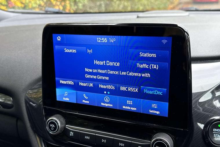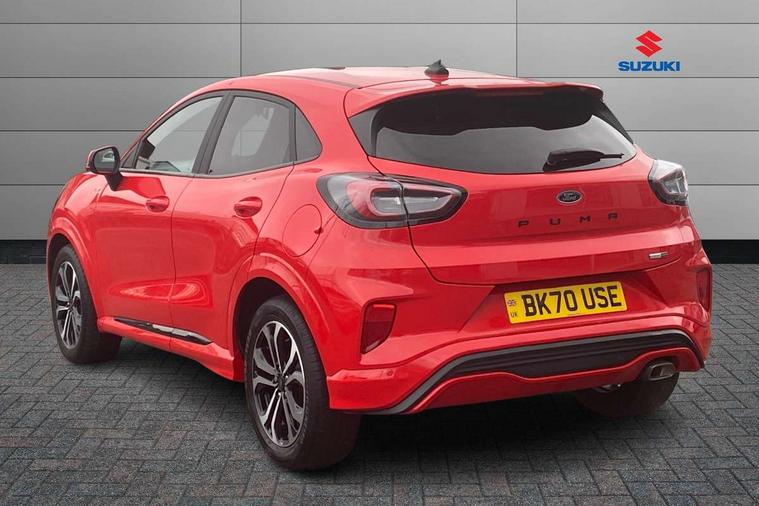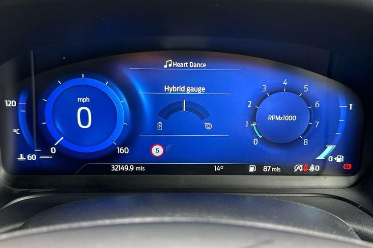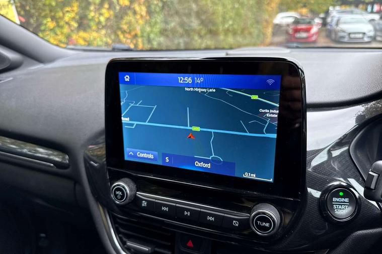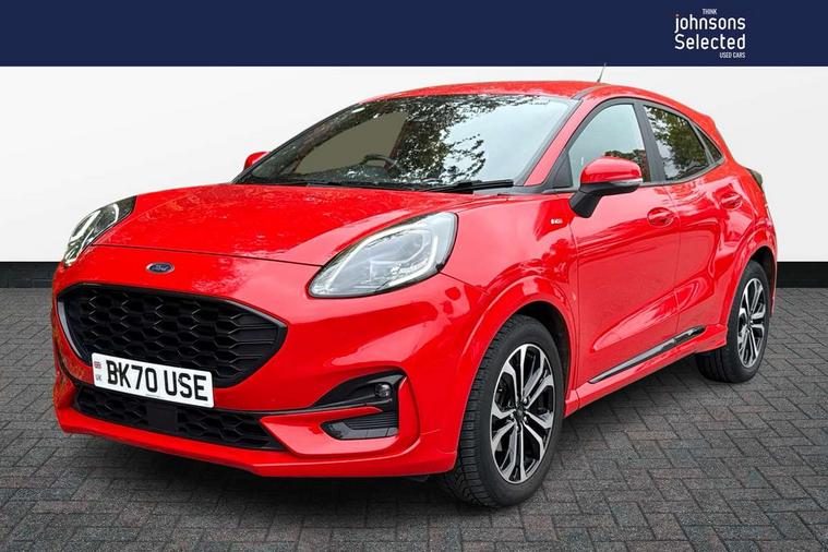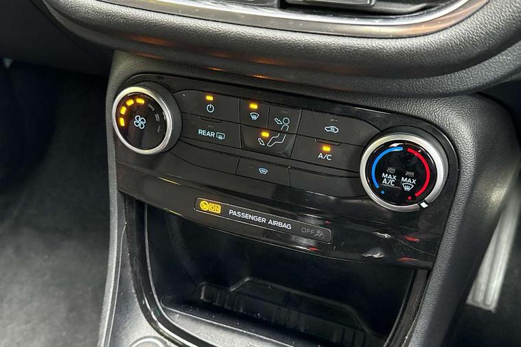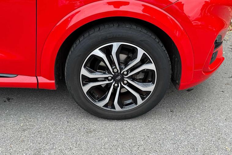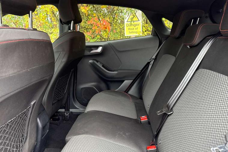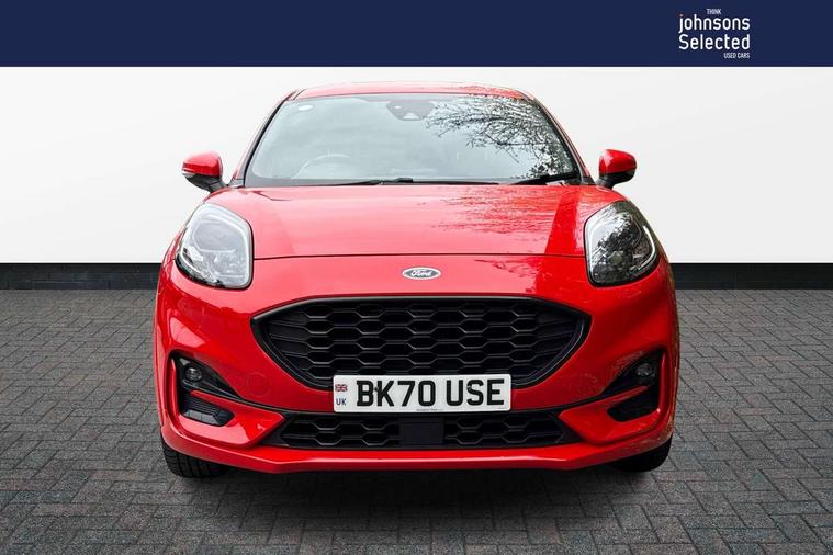 Ford easy fuel, Full digital 12.3" instrument cluster, Lane keeping aid with lane departure warning, Power assist steering, Rear parking sensor, Selectable drive modes(Normal, sport, Eco, trail, slippery), Wireless charging pad, Automatic headlights with rain sensing wipers and auto high beam, Body coloured door mirrors, Front fog lights with cornering lights and LED rear lamps, Power foldable heated door mirrors with puddle lamps, Quickclear heated windscreen, Rear wiper, ST-Line body kit with large rear spoiler wth sports suspension, Alloy sports pedals, Centre console with armrest and stowage, Court cloth upholstery with belgrano bolsters, Driver seat height/lumbar adjust, Ford megabox extended bootspace, Front and rear floor mats, Front and rear head restraints, Manual air conditioning, ST-Line flat bottomed sensico leather steering wheel with leather handbrake and aluminium gear knob, 3 rear seatbelts, Electronic stability control (ESC) and hill start assist, Pre-collision assist with autonomous emergency braking, pedestrian/cyclist detection & post-collision braking, Tyre pressure monitoring system (TPMS), Thatcham alarm, Tyre inflation kit,
