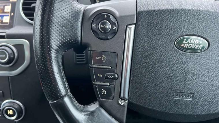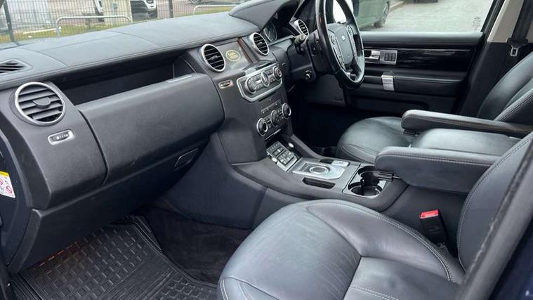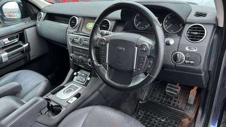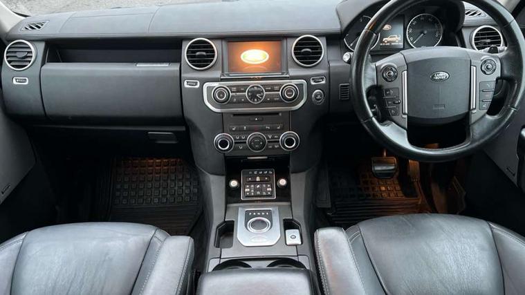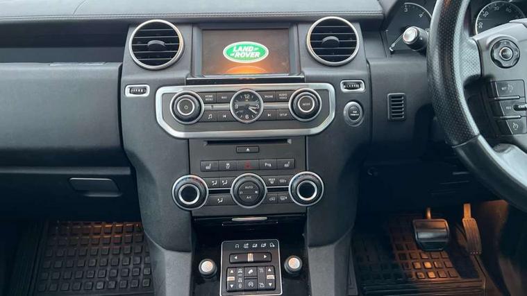 Bluetooth telephone connectivity, Cruise control, Front park distance control, PAS, Premium navigation including voice and TMC with touch screen, Rear park distance control, Rear view camera, Trip computer, Active roll mitigation, Diesel particulate filter, Electronic air suspension/variable ride height, Terrain Response, DAB Digital radio, Digital TV, Meridian audio system with radio/single cd player/MP3/825W amp + 17 speakers, Rear seat DVD entertainment system, Steering wheel mounted audio controls, USB/iPod connection, 'Global' closing of front/rear windows, Bi-xenon adaptive headlights, Body colour bumpers, Body colour rear applique panel, Body colour tailgate handle, Body coloured wheel arches, Daytime running lights, Electric front sunroof and fixed rear glass, Electric heated + adjustable door mirrors, Extended roof rails, Front and rear electric windows, Heated windscreen + washer jets, Power foldback door mirrors, Tailgate wash/wipe, Accessory socket in rear, Auto climate control, Complex 35/30/35 2nd row seat, Cup holders, Driver and front passenger leather armrests, Electric height/reach adjustable steering column, Front and rear premium carpet mats, Front headrests, Heated leather steering wheel, Heated seats front and rear, Illuminated vanity mirrors, Interior mood lighting, Isofix, Loadspace cover, Luggage net, Parking heater, Rear headrests, Split fold rear seat (65/35), Third row map lights, Bright pack - Discovery, Extended leather pack - Discovery, Windsor leather pack - Discovery, ABS + EBD + EBA, Cornering brake control (CBC), Curtain airbags, Driver/Front Passenger airbags, DSC - Dynamic Stability Control, Electronic parking brake, Electronic traction control, Electronic tyre pressure monitoring, Front and rear head airbags, Gradient acceleration control, Hill descent control, Hill start assist, Roll stability control, Seatbelt warning, Electric steering column lock, Engine immobiliser, Keyless smart entry with push button start, Locking wheel nuts, Remote locking, Volumetric anti theft alarm, Full size alloy spare wheel,