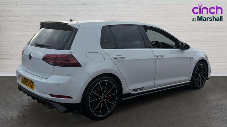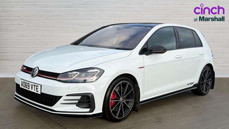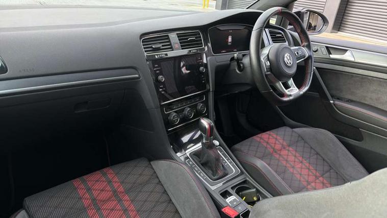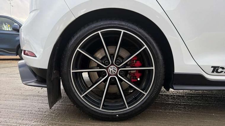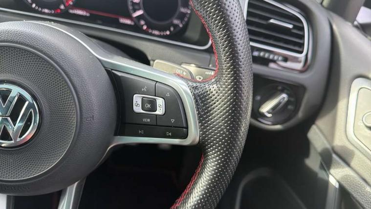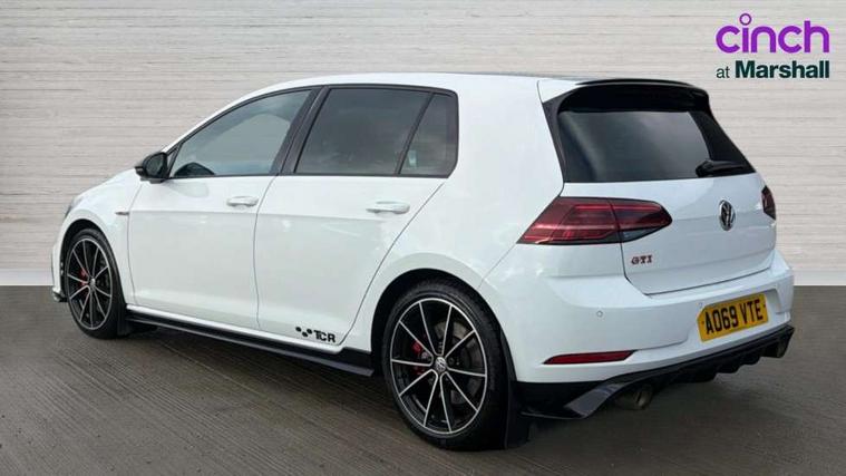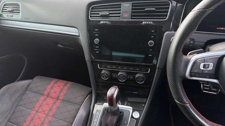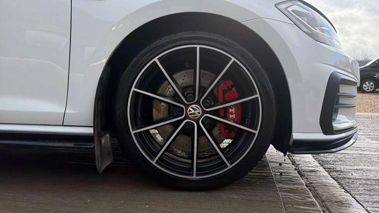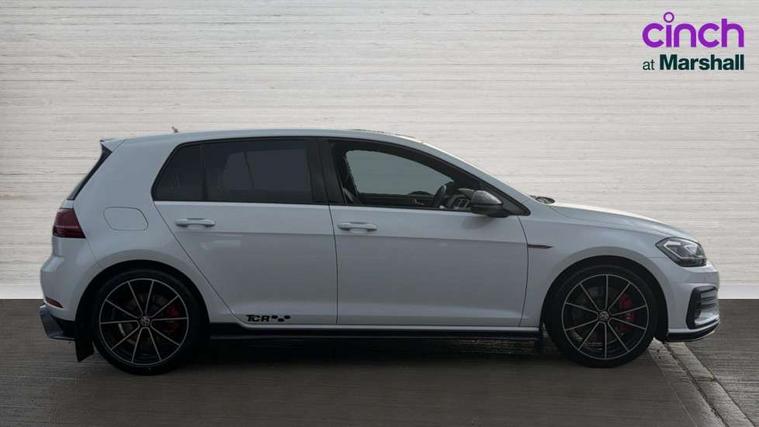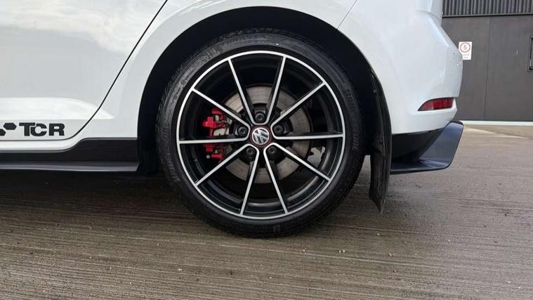'Lights On' Reminder warning buzzer, ACC - Adaptive cruise control with front assist, forward collision warning, distance monitoring, city emergency brake and speed limiter, Bluetooth telephone and audio connection for compatible devices, Brake pad wear indicator warning light, Driver alert system, Driving Mode Selection with four preset modes - Eco, normal, sport or individual modes, Multifunction computer with visual gear change recommendation for fuel consumption, Progressive steering, Push tank flap, Rear view camera, Speedo, rev counter, electronic odometer, trip, service interval display, exterior temperature and fuel gauge, Think blue trainer driver tips and journey analysis, Unique GTI instrument cluster, Warning buzzer and light for front seatbelts unfastened, Anti-tramp function, Battery regeneration during braking, Lowered sports suspension, Mechanical limited slip differential, Composition media system, DAB Digital radio receiver, Driver Personalisation profile selection, MP3/WMA compatability, Multi device interface (MDI) with USB connection, Premium USB cable in choice of either Apple or Android smartphone compatibility, SMS Functionality, USB and SD card connectivity, Volkswagen media control, 3D-LED tinted rear light clusters with indicator sweep function, Akrapovic titanium sport exhaust system, Body colour door handles, Body colour rear roof spoiler, Dusk sensor + automatic driving lights, Electric front windows, Electric rear windows, Electrically adjustable and heated door mirrors, Extended sill strips flared, Fully galvanised body, GTI logo in red on front and back, GTI logo lettering on front wings on right and left, Heated rear windscreen, High level 3rd brake light incorporating LED Technology, Honeycomb front air intake - Black, Honeycomb radiator grille with red stripe, LED daytime running lights incorporating smoked lenses and red stripe, LED headlights with dynamic light assist, Rear fog lamp, Rear number plate lights incorporating LED technology, Rear window aerial, Rear window wash/wipe with intermittent wipe, Reflectors in all doors, Remote electrically foldable door mirrors, door mirror puddle lights and reverse activated kerb-view adjustment on passengers door mirror, Shiny black aerofoil downside, TCR specific styled front and rear bumpers, Unique GTI TCR badging, Unique GTI TCR logo projection, Uniquely shaped front/rear bumpers, Windscreen wipers/ intermittent wipe + 4 position delay, 12V socket in luggage compartment, 3 rear headrests, 4 load lashing points in luggage compartment, 60/40 split folding rear seat backrest, Alcantara door inserts, Alcantara gear knob gaiter, Bag hook in luggage compartment x 2, Black decorative sleeve on gear handles, Black headlining, Black rear diffuser with chrome exhaust tailpipes in left and right, Black roof lining, Climate control - 2 zone electronic air conditioning with automatic air recirculation and allergy filter, Cooled glovebox, Dust/pollen filter, Front + rear carpet mats, Front centre armrest with storage compartment and two rear air vents, Front seat back storage pockets, Grab handles front x 2, rear x 2 with integrated coat hooks, Height and reach adjustable steering wheel, Illuminated door sills, Illuminated vanity mirrors, Instrument lighting white adjustable panel illumination, Interior light delay, Isofix preparation for 2 rear child seats, Leather gear knob and handbrake grip, Load through provision with rear centre armrest and cupholders x2, Luggage compartment lighting, Overhead storage box, Stainless steel pedals, Storage box in luggage compartment, Storage compartment in roof console with cover, Storage compartments in front doors, Storage compartments in rear doors, Stowable luggage compartment cover, Sun visors, Three spoke multifunction leather steering wheel with GTI logo and red stitching including 12 o' clock marker, Variable boot floor, height adjustable and removable, Ambient lighting pack - Golf, Convenience Pack - Golf, Light and Sight pack - Golf, Mirror pack - Golf, 3 rear three point seatbelts, Airbags - Driver's and front passenger's, curtain airbag, Driver's knee, front side impact and passenger's airbag deactivation switch, Anti-lock Braking System (ABS) with Hydraulic Brake Assist (HBA), Automatic post collision braking system, Child locks on rear doors, Driver/Passenger optimised head restraints, Electronic parking brake with auto hold, Electronic stability control (ESC) including Electronic differential lock (EDL) and ASR (Traction control) with deactivation via infotainment system, Front ventilated disc brakes and rear disc brakes, Larger diameter brake discs and GTI logo on red brake calipers, Pre crash preventive occupant protection, Three point height adjustable front seatbelts with tensioners, Tyre pressure loss indicator, Alarm with interior protection and deactivation via infotainment system, Electronic engine immobiliser, Keyless entry with start/stop button on centre console and front centre armrest, Chrome plated air vent surround, Chrome plated electric mirror adjustment switch surround, Chrome-plated light switch surround, Honeycomb black decorative inserts, Piano black decorative inserts in centre console, Steel space saver spare wheel,