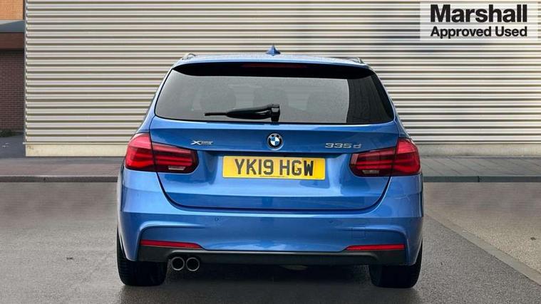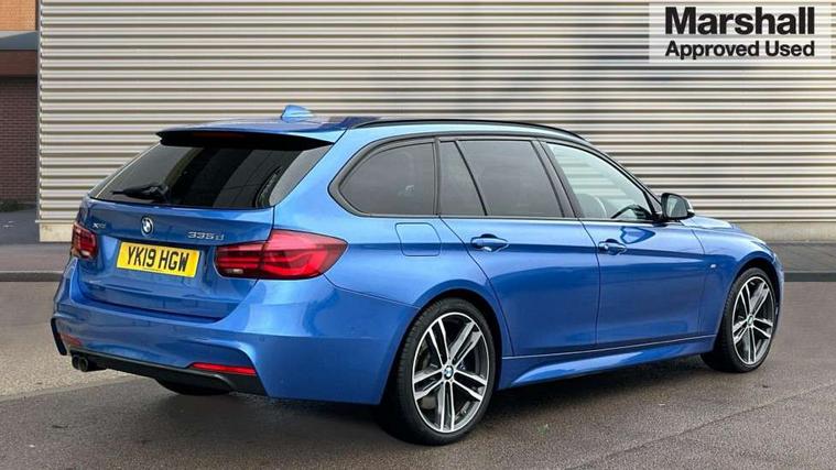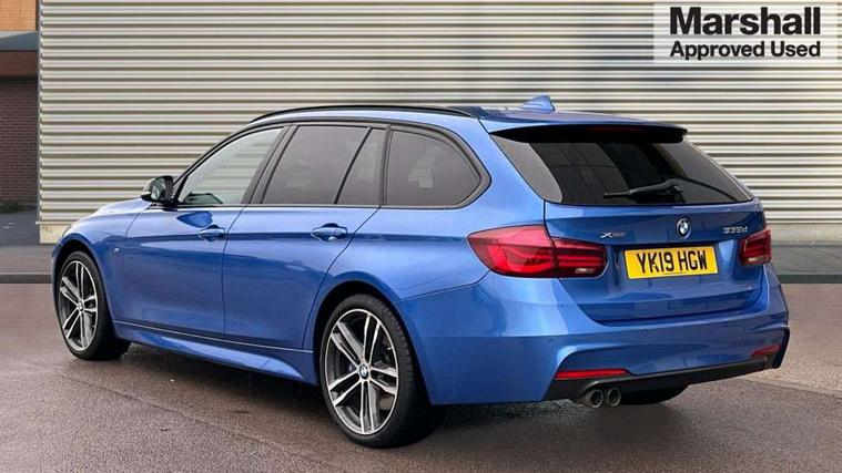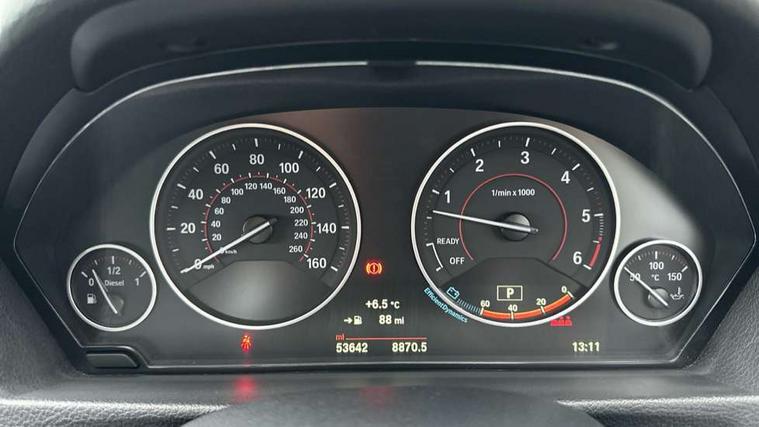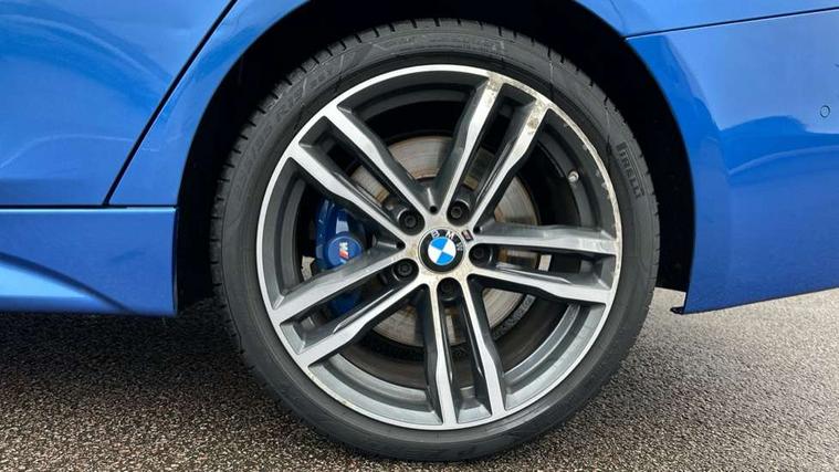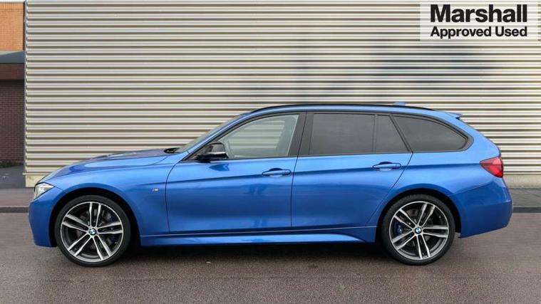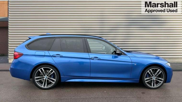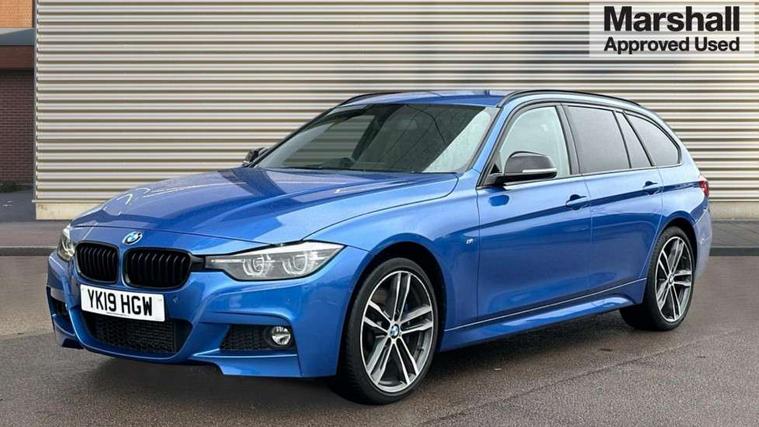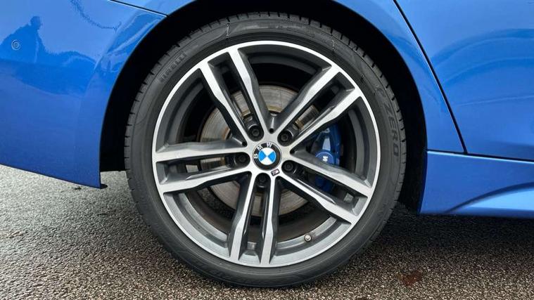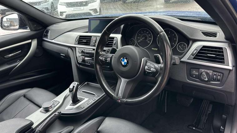 Automatic start/stop system, Automatic tailgate operation, Average speed gauge, BMW iDrive controller on centre console, BMW Online services, BMW remote services, BMW Teleservices, Brake force display, Brake pad wear indicator in front and rear, Check Control warning system for monitoring of lights and door/luggage compartment open warning, Controller and Control Display+6.5" monitor, Digital clock, Door/boot open warning light, Front/rear park distance control, Instrument cluster with speedometer with mph readout, tachometer, fuel gauge and oil temperature gauge, Lights on warning, M Sport instrument cluster, Odometer, Oil sensor for level and grade, On board computer, On board diagnostics, Operation warning of all exterior lights, Optimum shift indicator, Outside temperature display, Pesonal profile, Predictive gearshift using navigation data and automatic transmission, Real time traffic information, Service interval indicator, Trip computer, Battery cut-out switch, Diesel particulate filter, Drive Performance Control, Electronic differential lock, Incorrect fuelling protection, Multi-link rear suspension, Sport automatic transmission with steering-wheel mounted gearshift paddles and launch control, BMW professional radio/CD/MP3, CD player, DAB Digital radio, Harman/Kardon loud speaker system, 2 speed adjustable intermittent wipers with wash/wipe function, Active air flap radiator grille, Auto dimming rear view mirror, Automatic headlight beam throw control, Body colour bumpers, Body colour door handles, Body colour roof mouldings, Clear indicator lenses, Dark chrome exhaust tailpipe, Dark headlamp surround, Darkened rear light clusters, Direction indicator, side repeaters, integrated in exterior mirrors, Door sill finisher with M designation, Dynamic brake lights, Electric front and rear windows with one touch/convenient open/close function, Front and rear bumper system with replaceable deformation elements, Green tinted heat insulating glass, Heated rear window with automatic switch off, Heated windscreen washer jets, High beam assistant, High gloss black air inlets, High gloss black finish B pillar, High gloss black rear bumper insert, High gloss shadow line, High level third brake light, Independent opening for tailgate window, LED fog lights, LED rear lights, LED welcome home lights, M aerodynamic body styling, Matt black exterior trim, Rain sensor + automatic driving lights control, Rear wash/wipe, Shark fin roof aerial, Sun protection glass, Visible VIN plate, 12V sockets in front centre console and passenger footwell, 3 rear seat head restraints, 4 foldable grab handles - rear with clothes hook, 4 lashing points on luggage floor, 40:20:40 split folding rear bench seat, Anthracite headlining, Automatic interior light soft on/soft off system, Dual zone automatic air conditioning, Folding front centre armrest + storage, Front and rear door armrests, Front and rear velour floor mats, Front door storage bins with bottle holder, Front sports seats with electric side bolster adjustment, Glovebox light, Glovebox opener with chrome spider, Height adjustable front headrests, Indirect front interior illumination - soft-light function, Leather gear knob, Leather gear selector lever handle, Leather handbrake lever, Luggage compartment lighting, Reach + rake adjustable steering column, Rear centre armrest with 2 cupholders, Rear child seat isofix attachment with passenger airbag deactivation, Retractable luggage cover, Separation net, Storage compartment in rear centre console, front and rear door trims and under luggage compartment, Sunvisors with illuminated vanity mirrors and ticket pocket, Through load system, Toolkit located in luggage compartment, Two front cup holders with a sliding lid, Extended lighting package - 3 Series, Extended storage pack - 3 Series Touring/Saloon, High gloss shadow line pack - 3 Series, Interior lights pack - 3 Series Touring, Luggage compartment storage pack - 3 Series Touring, 3 point seatbelts on all seats (2 front, 3 rear), front pyrotechnic belt tensioners and belt force limiters, rear coded belt buckles, ABS, Automatic Stability Control (ASC), BMW emergency call, Brake drying, Brake energy regeneration, Braking pre-tensioning, Cornering brake control (CBC), Crash sensor, Driver and front passenger front and side airbags with passenger deactivation and ITS front and rear head airbags, DSC+, Dynamic brake control, Dynamic Traction Control - DTC, Hill start assist, M Sport braking system, Rear child proof door locks, Seatbelt security check for driver seat, Side impact protection, Twin horns, Tyre pressure monitor, Ventilated front and rear disc brakes, Warning triangle and first aid kit, Alarm system (Thatcham 1) with remote control and electronic engine immobiliser, Automatic drive away locking facility, Central locking switch for all doors, fuel filler cap and luggage compartment, Remote control including integrated key with blue insert, Start/stop button with Comfort Go keyless engine start and auto Start/stop deactivation button, Air-conditioning and radio control panel with Chrome highlight, 19" M double spoke alloy wheels style in bicolour orbit grey - style 704M, Low rolling resistance tyres, Run-flat tyres,