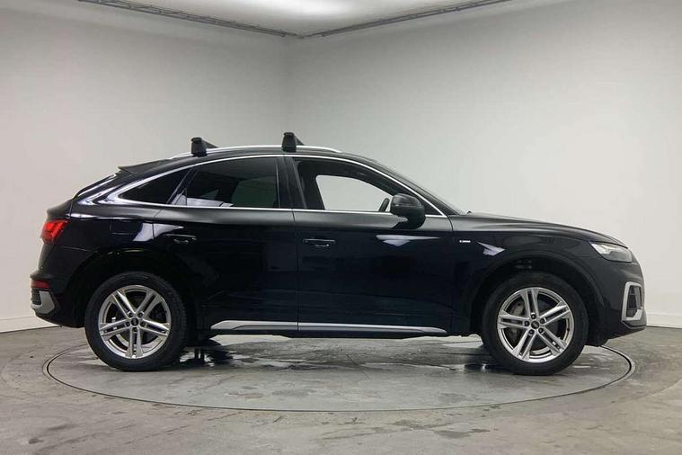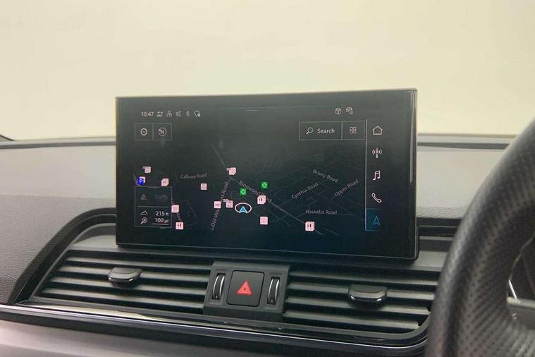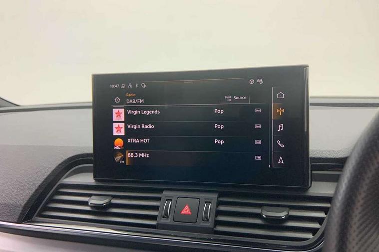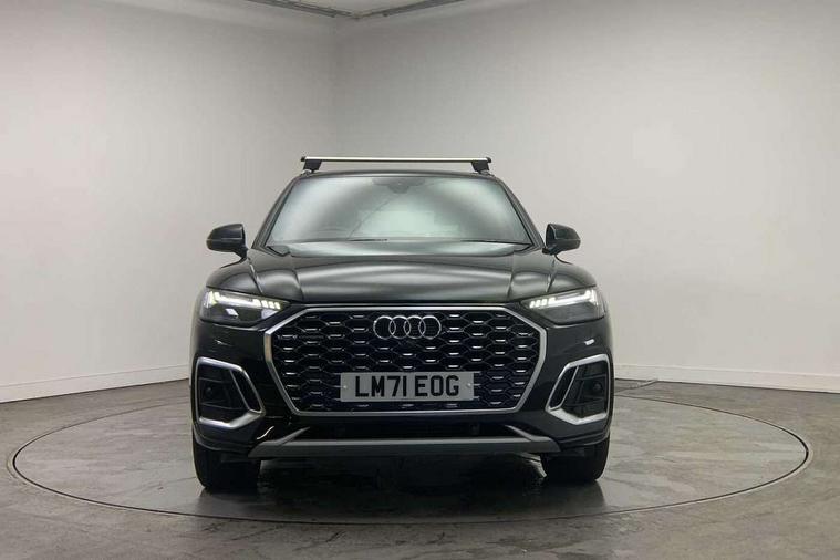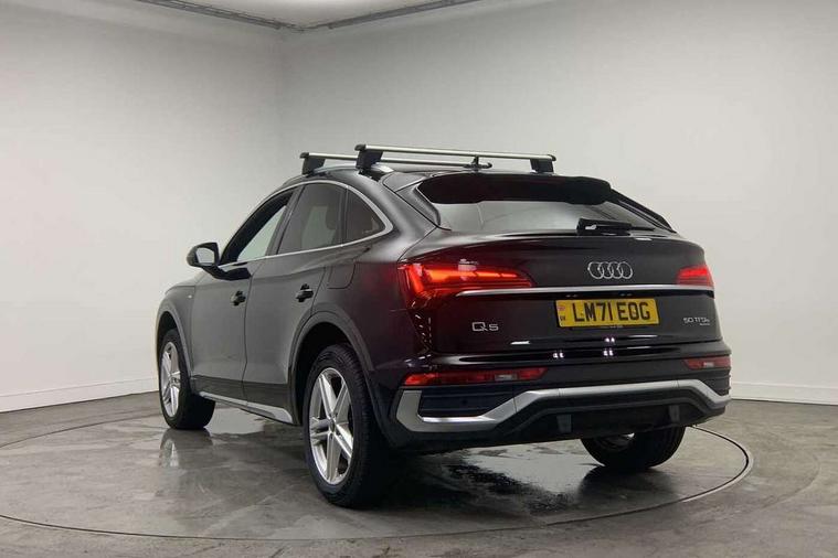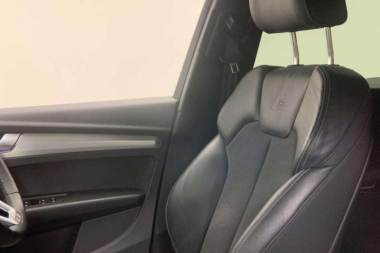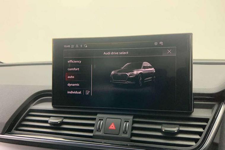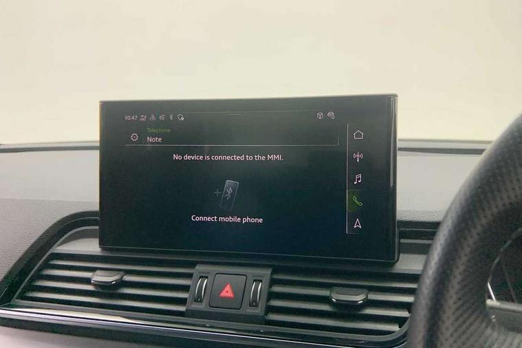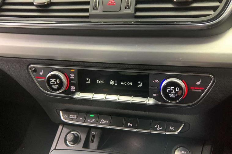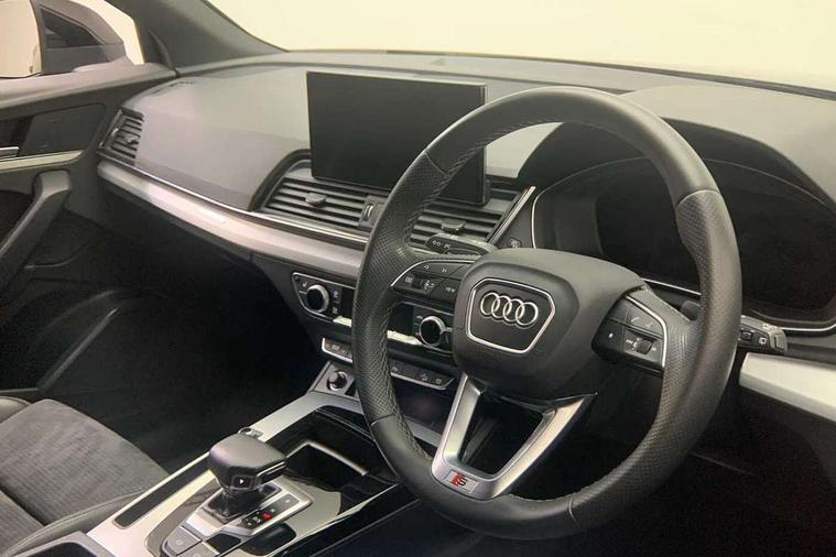 Audi connect safety and service (e-call), Audi connect with Amazon Alexa Integration, Audi drive select, Audi virtual cockpit plus with 12.3" screen and three different layout designs, Audi wireless smartphone interface, Automatic start-stop system with coasting functionality and efficiency programme, Bluetooth interface, Electro - mechanical power assisted steering, MMI navigation plus with 10.1" touch screen, Power tailgate, Reversing camera, Service interval indicator, Voice control system with Audi hotword activation "Hey Audi", 3 pin 10 amp domestic charging cable, Dynamic suspension, Quattro on demand, Type 2 mode 3 22kW 32 amp charging cable, Type 2 socket for AC charging, DAB Digital radio, Acoustic windscreen, Aluminium roof rails, Audi matrix LED headlights with dynamic front and rear indicators, Auto dimming rear view mirror, Automatic headlights and windscreen wipers, Body colour bumpers, Body colour door mirrors, Body colour rear diffuser with matt aluminium silver surrounds, Body colour underbody protection, Chrome plated exhaust trims, Door sills in Selenite silver, Electric adjustable/heated/folding door mirrors, Front air inlet surrounds in aluminium, Front and rear electric windows, Front radiator grille in honeycomb design, Headlight washers, Lower bumpers painted in contrast Manhattan grey, Rear chrome trim strip below lights, Rear privacy glass and rear side windows, Rear spoiler, Rear wiper, Roof bars, S Line badges on the front wings, S Line front and rear bumpers, S Line side skirts, 2 x USB charging port with aux input socket, 3 rear headrests, 40:20:40 split folding rear seat with rear centre armrest, Black cloth headlining, Comfort front centre armrest, Contrast stitching on seats, steering wheel and gear lever gaiter, Deluxe 3 zone electronic climate control, Front/rear floor mats, Gear lever in black leather, Heated front seats, Height adjustable front head restraints, Height/reach adjustable steering column, Illuminated door sill trims with S logo, ISOFIX child seat mounting and top tether, Manual seat adjustment with 4-way electric lumbar support, Rear seat bench plus, Sunvisors with vanity mirrors, Tool kit, Trunk roller cover, High gloss pack - Q5, LED interior light pack - Q5, 3 point seatbelts on all seats, 6 airbags - Driver, front passenger, curtain and side airbags, Electrically operated child locks on rear doors, Electromechanical parking brake, Electronic stabilisation control including ABS, ASR and EDL, Front passenger airbag deactivation, Hill descent control, Hill hold assist, Multi collision brake assist, Pop-up bonnet for pedestrian protection, Pre sense city, Seat belt force limiter, Seatbelt monitoring, Tyre pressure warning, Warning triangle and first aid kit, Anti theft alarm, Anti-theft wheel bolts, Keyless Go access/ignition system, Matt brushed aluminium inlays, Tyre repair kit,