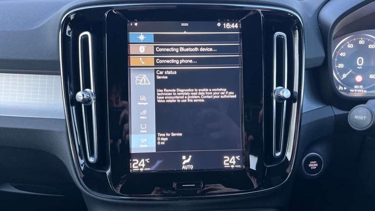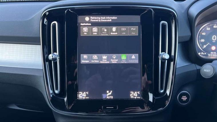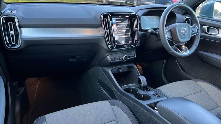 12.3" Active TFT crystal driver's instrument display, 9" centre console portrait touch screen, Adjustable steering wheel force, Bluetooth hands free telephone kit, Drive mode selector, E-call, eCall emergency call system, Lane keep assist with driver alert control, Oncoming Lane Mitigation, Power operated tailgate, Rear park assist, Sensus navigation with European mapping and traffic information, Speed limiter, Speed sensitive steering, Voice activated control for key functions, Wireless Smartphone Integration includes Apple CarPlay and Android auto, Wireless/Inductive Mobile Phone Charging, 3.7 kW monophase on board charger, 7m 10amp charge cable with 3 pin plug and 7m 1 phase 16amp type 2/mode 3 charge cable, Dynamic chassis, Electric front axle drive, Recharging port located in nearside front wing, DAB Digital radio, Low speed exterior sound speaker, Sensus connect with high performance sound, 8 speakers/250W, front USB and 2 rear type C USB, Steering wheel mounted remote controls, Adaptive brake lights with high level LED brake lights, Auto dimming interior mirror, Automatic headlamp levelling, Automatic LED Headlights + Active high beam incorporating daytime running lights, Chrome window trim, Colour coordinated auto folding and heated power door mirrors, Front and rear electric windows, Front recharge aluminium tread plates, High gloss black front grille with chrome inserts, High Gloss silver front and rear skid plate, Home safe and approach lighting, Integrated roof rails in silver, Rain sensor with automatic windscreen wiper activation, Rear side wing doors, Rear wiper, Roof antenna, Roof spoiler, Visible VIN plate, 12V socket in front tunnel console and luggage compartment, 2-Zone electronic climate control with CleanZone air quality system and pollen filter, 3 seat bench in 2nd row, 3 Spoke tailored steering wheel with chrome trim, 60/40 versatile split folding rear seat, A-pillar parking ticket holder, C-pillar Recharge logo, Centre console cupholders and storage, Charcoal headlining, City block textile upholstery, Floor mats, Front footwell illumination, Front headrests, Front reading light and theatre lighting, Front tunnel pocket, Glovebox bag hook, Height adjustable passenger seat, Height/reach adjustable steering column, High gloss black centre screen surround deco, Illuminated glovebox, Illuminated luggage compartment, Illuminated vanity mirrors, Isofix attachments on outer rear seats, Leather gearknob, Load protection net, Multi directional lumbar support, Rear armrest / integral cup holders / storage tray, Rear headrests, Single front passenger seat, Sports steering wheel, Underfloor cargo storage, 3x3 point rear seatbelts, City safety includes pedestrian, cyclist and large animal detection and front collision warning with full auto brake, Drivers knee airbag, Dual stage driver/passenger airbags, Electronic parking brake with auto hold, First aid kit, Front and outer rear seatbelt reminder and pretensioners, Front seats SIPS airbags, Hill descent control, Hill start assist, Inflatable curtain, Passenger airbag cut-off device, Power child locks on rear doors, Road sign information display, Run off Road Mitigation, Run off Road Protection, SIPS (Side Impact Protection System), Slippery road and hazard light alert, Stability and Traction Control with Spin control, Engine Drag Control and Corner Traction Control, Tyre pressure monitoring system, Vehicle deceleration control with Anti-lock Brake System, Electronic Brake Distribution and Emergency Brake Assist, Warning triangle, WHIPS whiplash protection system - front, Anti-theft alarm including immobiliser/volume sensor + level sensor, Care key with user defined top speed, Key integrated remote control central locking + fuel flap with deadlocking system and auto open/close power windows, Keyless start, Locking wheel nuts, Private locking for tailgate,