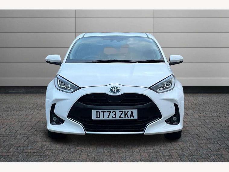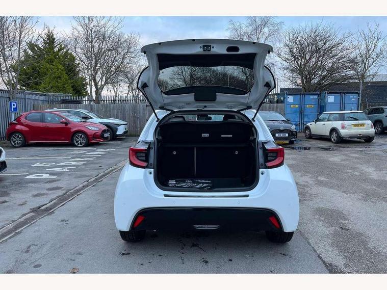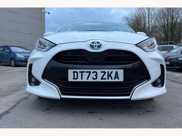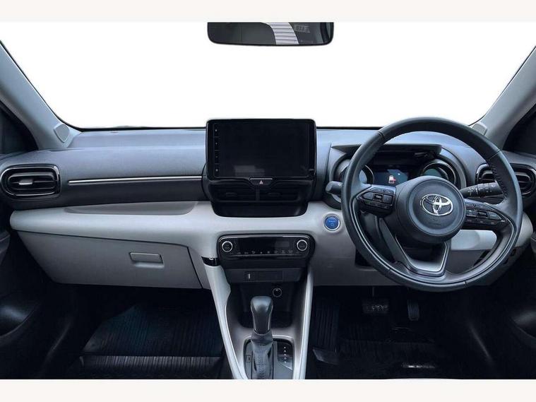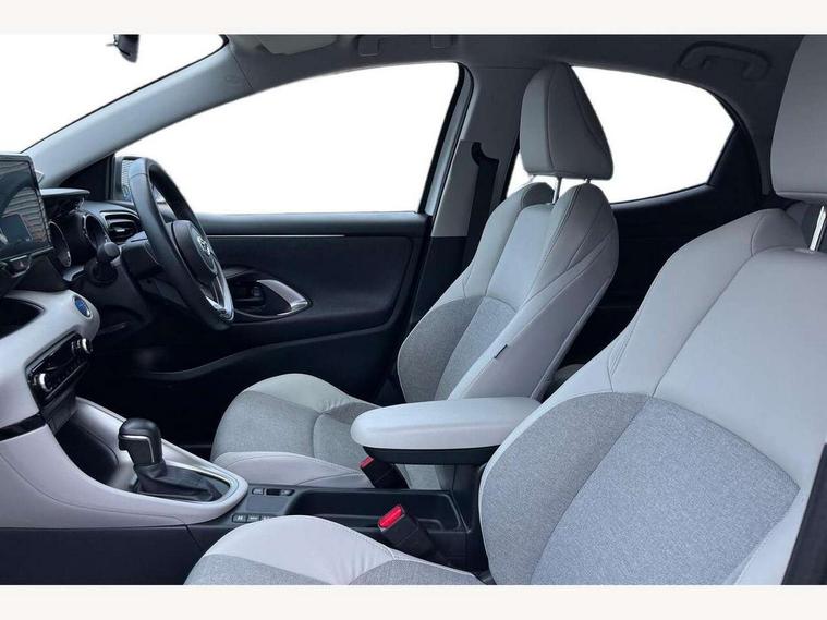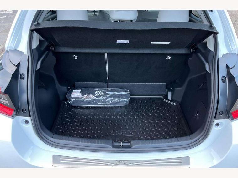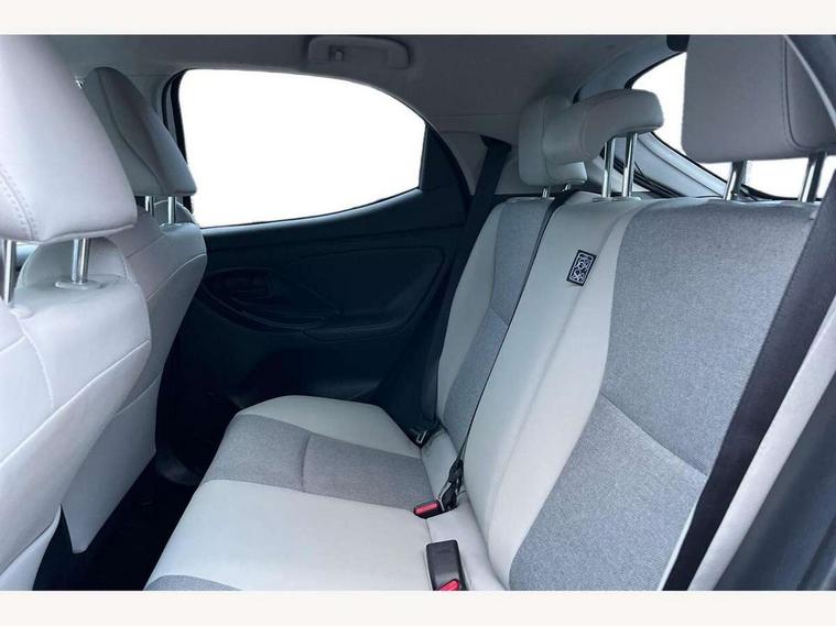 Adaptive cruise control, Adjustable speed limit with speed warning, Blind spot monitoring, Bluetooth connectivity, Colour binocular inspired displays with digital speedometer, E-call, Electric power steering, Hybrid energy display, Multi information display switches on steering wheel, Reversing camera, Smartphone integration with Apple CarPlay and Android auto, Tailgate, Touch 2 navigation system, Voice recognition, Vehicle Stability Control (VSC), 6 speakers, 9" HD multimedia display touch screen with Toyota smart connect, USB connection, Acoustic windscreen glass, Auto windscreen wipers, Automatic headlights, Automatically retractable door mirrors, Body coloured door mirrors, Electric adjustable heated door mirrors, Follow me home headlights, Front auto power windows with anti jam protection, Full LED rear lights, LED daytime running lights, LED front fog lights, LED front light guide, LED Headlights, LED High mounted stop lamp, LED Indicators, LED rear light guide, Manual headlight levelling, Painted chequered front grille, Rain sensor, Rear auto power windows with anti jam protection, Rear privacy glass, Rear side wing doors, Rear spoiler, Rear wiper, Satin lower front grille, Shark fin antenna, Turning signal integrated indicators in door mirrors, Variable front intermittent wipers, 3 adjustable rear headrests, 3 seat bench in 2nd row, 3 spoke leather steering wheel, 60/40 split folding rear seat, Active headrests, Adjustable boot height, Coat hooks in rear grab handles, Cup holders (2 front & door), Data Communication Module (DCM) connected services, Dual zone automatic air conditioning, Fabric seat with partial synthetic leather upholstery, Front armrest, Front sport seats, Glovebox, Grey roof lining, Height adjustable driver's seat, Height adjustable passenger seat, Isofix seat fixing, Leather gearshift, Map pockets on the backs of the front seats, Pollen filter, Shopping bag hooks, Single front passenger seat, Tilt/telescopic steering column, Parking pack - Yaris, 3 point seatbelts on all rear seats, ABS+EBD+Brake assist, Electronic parking brake, Emergency brake light system (EBS), Front passenger airbag on/off switch, Front seatbelt reminder, Hill start assist control (HAC), Rear child proof door locks, Rear seat belt reminder, Supplemental Restraint System (SRS) 8 airbags: Driver & passenger's airbags, dual side curtain airbags, side impact airbags, front centre airbag, Toyota Safety Sense 2, Precollison + Night time Pedestrian & Cyclist Detection, Lane Trace Assist, Auto High Beam, Intelligent ACC & Road Sign Assist, Tyre pressure warning system, 2x Master key, Alarm/immobiliser, Keyless smart entry with push button start, Remote AC via MyT, Remote locking via MyT, Remote powered central double locking doors, Satin chrome interior styling, Soft touch instrument panel, Space saver spare wheel,
