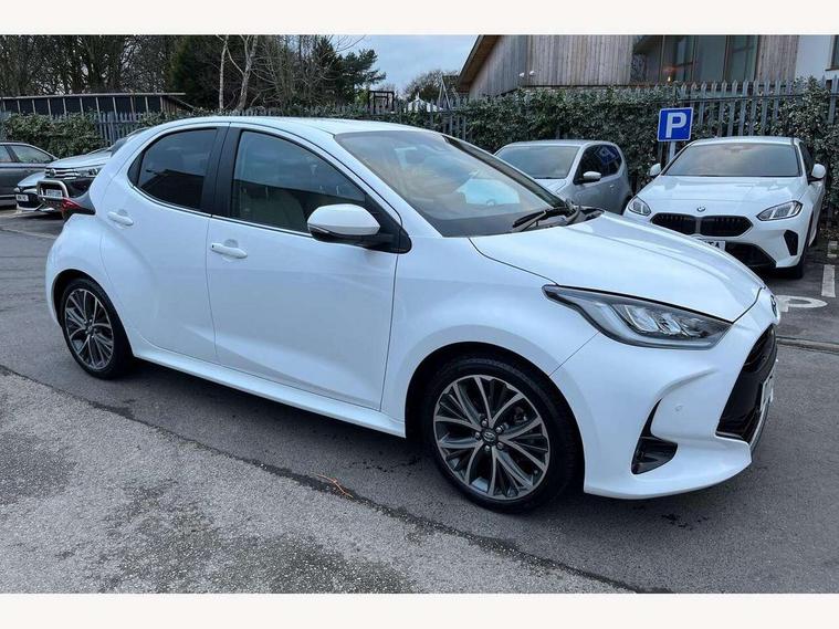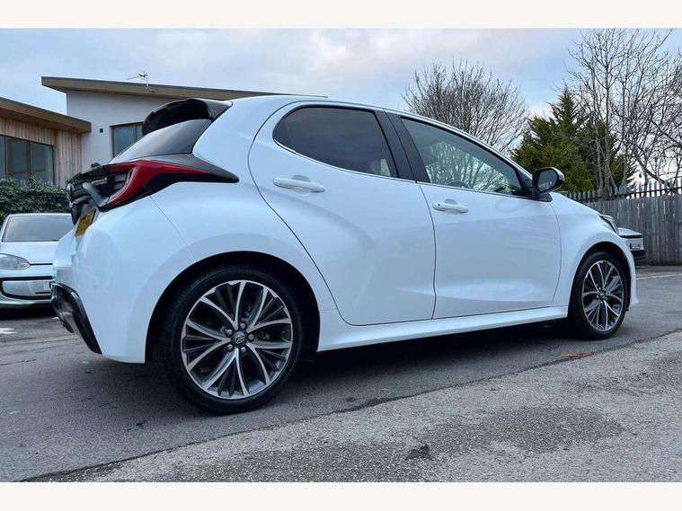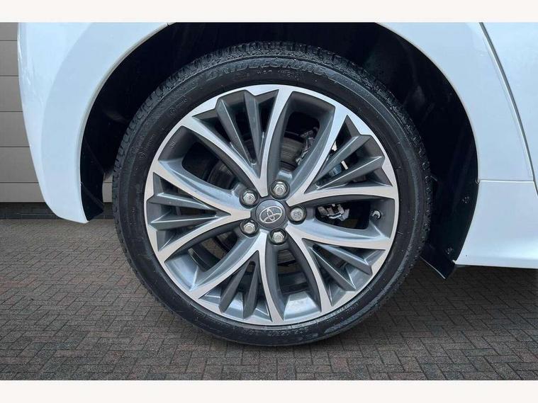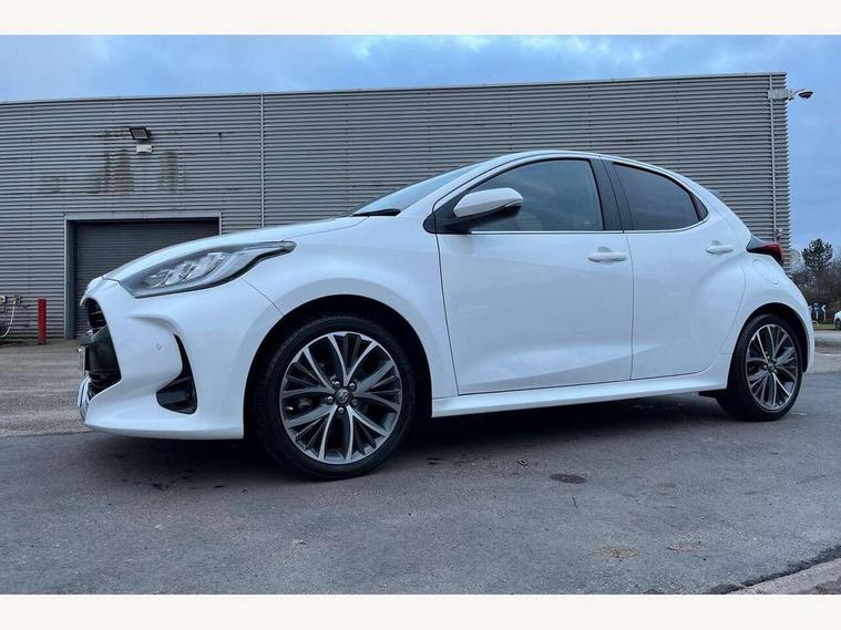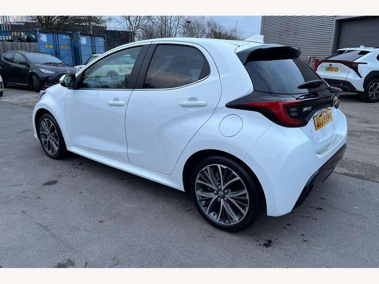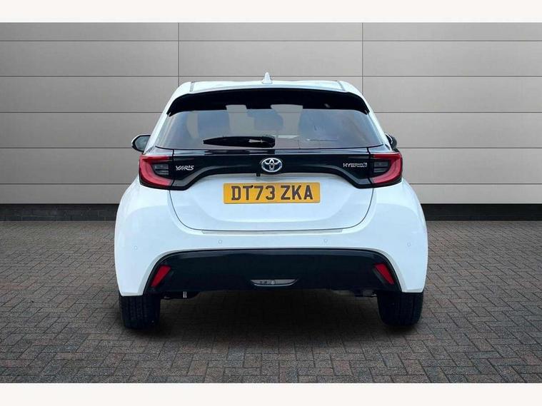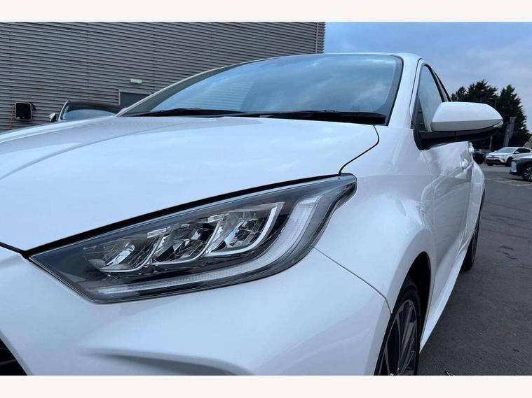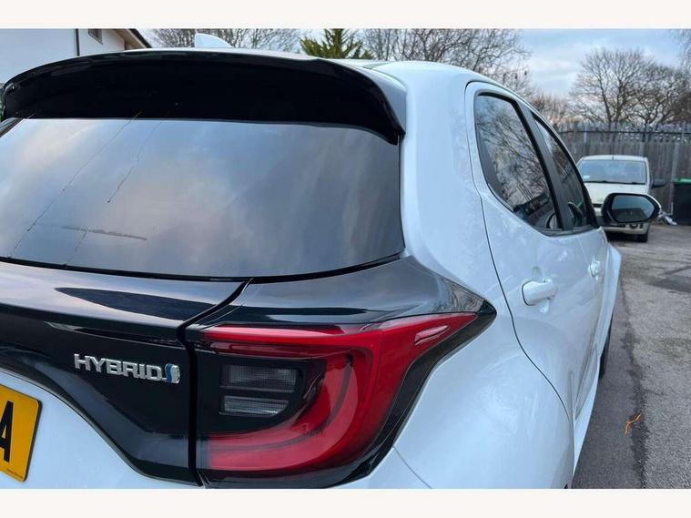 Adaptive cruise control, Adjustable speed limit with speed warning, Blind spot monitoring, Bluetooth connectivity, Colour binocular inspired displays with digital speedometer, E-call, Electric power steering, Hybrid energy display, Multi information display switches on steering wheel, Reversing camera, Smartphone integration with Apple CarPlay and Android auto, Tailgate, Touch 2 navigation system, Voice recognition, Vehicle Stability Control (VSC), 6 speakers, 9" HD multimedia display touch screen with Toyota smart connect, USB connection, Acoustic windscreen glass, Auto windscreen wipers, Automatic headlights, Automatically retractable door mirrors, Body coloured door mirrors, Electric adjustable heated door mirrors, Follow me home headlights, Front auto power windows with anti jam protection, Full LED rear lights, LED daytime running lights, LED front fog lights, LED front light guide, LED Headlights, LED High mounted stop lamp, LED Indicators, LED rear light guide, Manual headlight levelling, Painted chequered front grille, Rain sensor, Rear auto power windows with anti jam protection, Rear privacy glass, Rear side wing doors, Rear spoiler, Rear wiper, Satin lower front grille, Shark fin antenna, Turning signal integrated indicators in door mirrors, Variable front intermittent wipers, 3 adjustable rear headrests, 3 seat bench in 2nd row, 3 spoke leather steering wheel, 60/40 split folding rear seat, Active headrests, Adjustable boot height, Coat hooks in rear grab handles, Cup holders (2 front & door), Data Communication Module (DCM) connected services, Dual zone automatic air conditioning, Fabric seat with partial synthetic leather upholstery, Front armrest, Front sport seats, Glovebox, Grey roof lining, Height adjustable driver's seat, Height adjustable passenger seat, Isofix seat fixing, Leather gearshift, Map pockets on the backs of the front seats, Pollen filter, Shopping bag hooks, Single front passenger seat, Tilt/telescopic steering column, Parking pack - Yaris, 3 point seatbelts on all rear seats, ABS+EBD+Brake assist, Electronic parking brake, Emergency brake light system (EBS), Front passenger airbag on/off switch, Front seatbelt reminder, Hill start assist control (HAC), Rear child proof door locks, Rear seat belt reminder, Supplemental Restraint System (SRS) 8 airbags: Driver & passenger's airbags, dual side curtain airbags, side impact airbags, front centre airbag, Toyota Safety Sense 2, Precollison + Night time Pedestrian & Cyclist Detection, Lane Trace Assist, Auto High Beam, Intelligent ACC & Road Sign Assist, Tyre pressure warning system, 2x Master key, Alarm/immobiliser, Keyless smart entry with push button start, Remote AC via MyT, Remote locking via MyT, Remote powered central double locking doors, Satin chrome interior styling, Soft touch instrument panel, Space saver spare wheel,