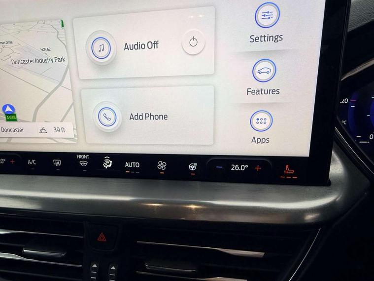 12.3" Digital instrument cluster, Bluetooth system, Digital clock, Easy fuel capless refuelling system, Eco mode, Ford SYNC4 Nav with 13.2'' touchscreen, DAB, Emergency Assistance, Apple Carplay & Android Auto, B&O Premium Audio with 10 speakers, FordPass Connect, Lane keeping system - lane keeping alert and lane keeping aid, PAS, Rev counter, Selectable drive mode, Service interval indicator, Trip computer, Wireless charging pad, 2 USB ports, Auto headlamps (on/off), Body coloured door handles, Electrically operated front and rear windows with one touch opening and closing, Electrically operated heated power fold door mirrors with puddle lamp with side indicators, Front variable intermittent wipers with electric wash, Grille with chrome bars and self colour surround, Heated rear window, LED daytime running lamp, LED rear lamps, LED third brake light, Privacy glass, Quickclear heated windscreen, Rain sensor, Rear side wing doors, Tailgate wash/wipe, 3 rear headrests, 3 seat bench in 2nd row, Dual zone electronic air temperature control, Full sensico premium upholstery, Height adjustable front headrests, Isofix child seat preparation, Load through ski hatch, Manual 2-way passenger seat adjust, Power 4-way driver seat adjust, with power lumbar adjust, Reach + rake adjustable steering column, Single front passenger seat, Winter pack - Focus, 3x3 point rear seatbelts, ABS+Electronic Brake force Distribution, Auto hold function, Driver airbag, EDL traction control, Electronic parking brake, Electronic stability control, Front and rear seatbelt reminder, Front inertia reel height adjustable seatbelts with pre-tensioners, Front passenger airbag, Front side airbags, Passenger airbag deactivate switch, Post collision braking, Pre collision assist with autonomous emergency braking and pedestrian/cyclist detection, Remote/power child rear door locks, Side curtain airbags, Three rear inertia reel lap/diagonal seatbelts, Tyre pressure monitoring system, Keyless entry and keyless start, MyKey system, Remote central locking & engine immobiliser, Thatcham alarm with power door dead locks, 17" 5x3 spoke alloy wheels with Pearl grey machined finish with mini spare wheel,