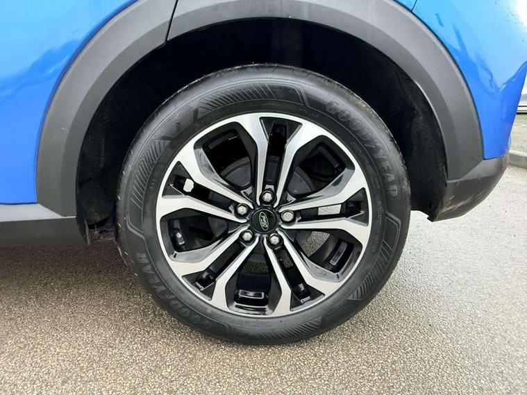 Driver impairment monitor, Emergency call service, Ford easy fuel, Full digital 12.8" instrument cluster, Lane keeping aid with lane departure warning, Power assist steering, Selectable drive modes(Normal, Eco, Sport, Slippery and Trail), Speed sign recognition, Standard suspension, 12" landscape touchscreen display with wireless apple car play and android auto 6 speaker audio system, Ford pass connect and emergency assistance, Ford SYNC4 with connected navigation, Automatic headlights with rain sensing wipers and auto high beam, Front fog lamps, LED daytime running lights, LED rear lamps, LED third brake light, Quickclear heated windscreen, Rear privacy glass, Rear side wing doors, Rear wiper, 3 seat bench in 2nd row, Centre console with armrest and stowage, Electronic automatic temperature control (EATC), Ford megabox extended bootspace, Front and rear head restraints, Front floor mats, Manual 4 way driver seat adjust with lumbar adjustment, Single front passenger seat, Titanium cloth upholstery, 3 rear seatbelts, Child safety lock, Electronic stability control (ESC) and hill start assist, Pre-collision assist with autonomous emergency braking, pedestrian/cyclist detection & post-collision braking, Tyre pressure monitoring system (TPMS), Thatcham alarm, 17" Absolute black machined finish alloy wheel,