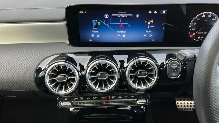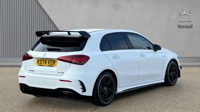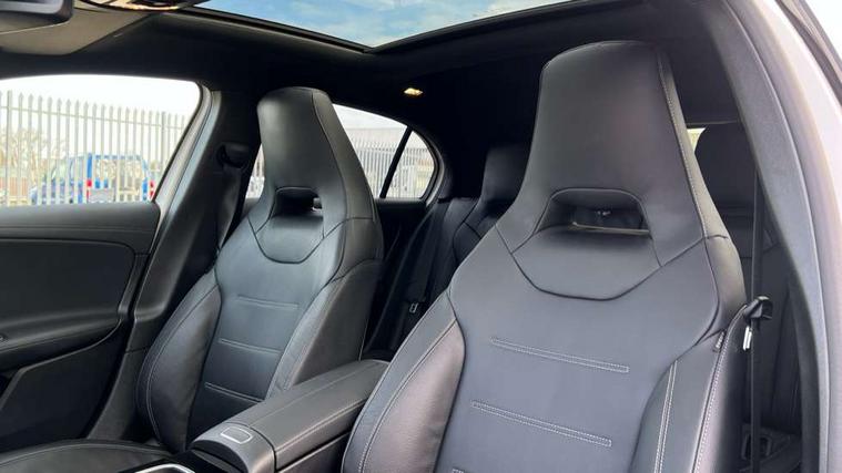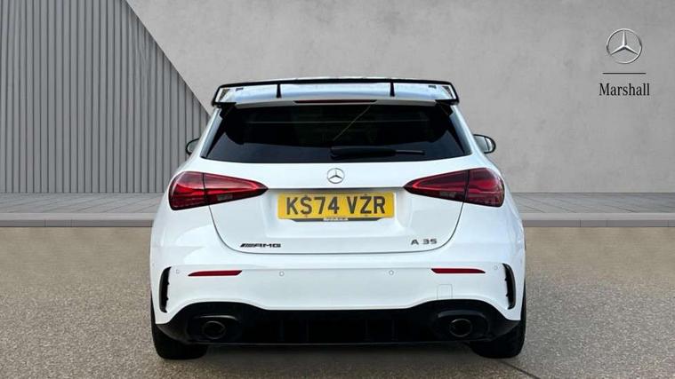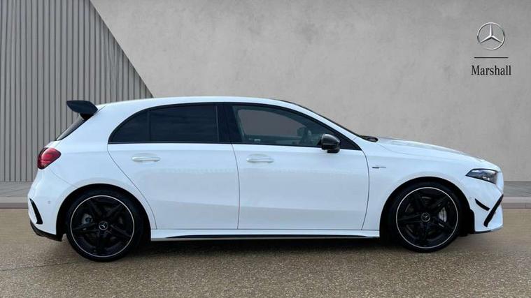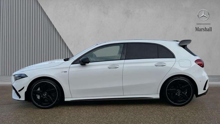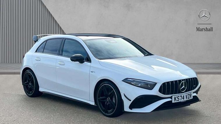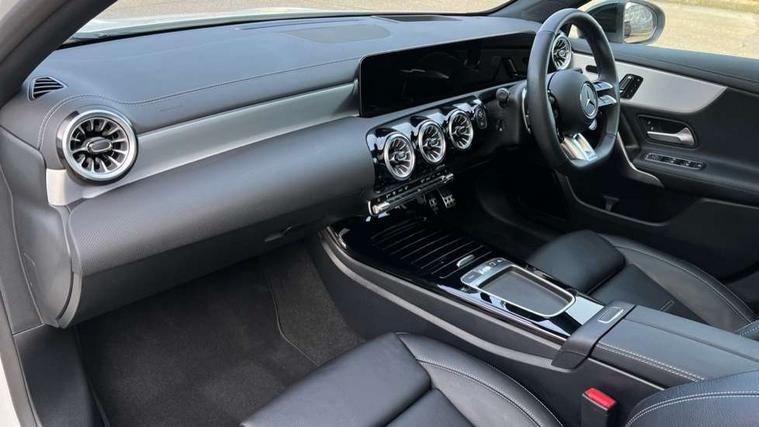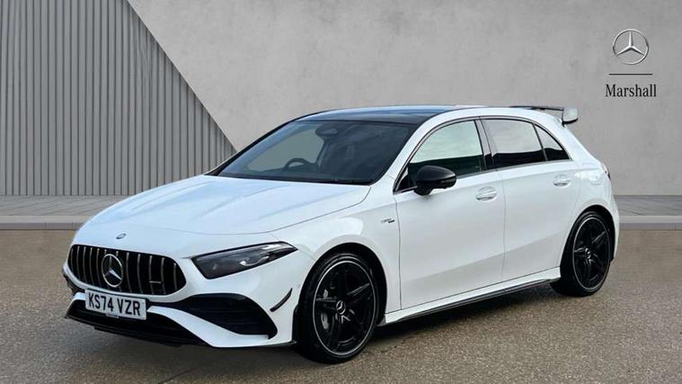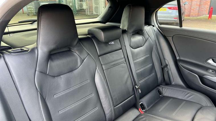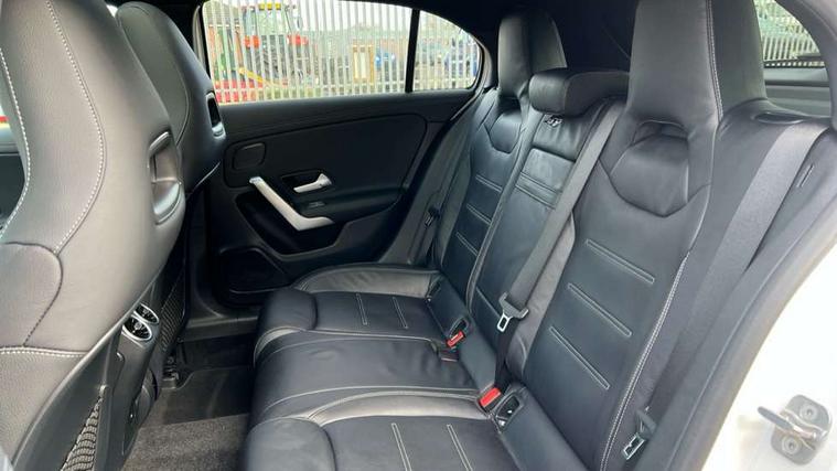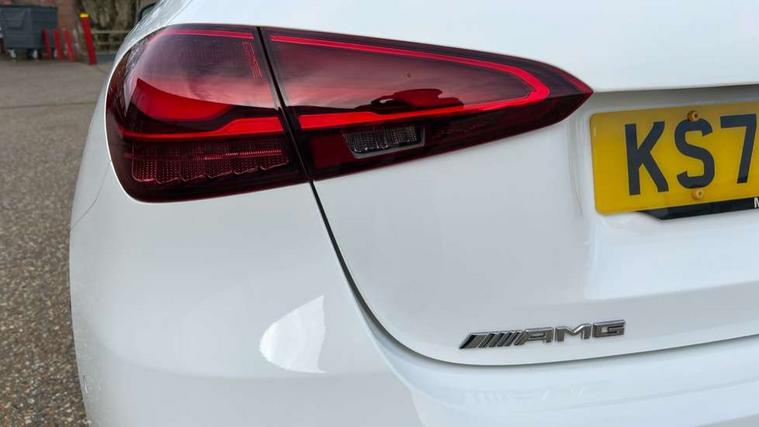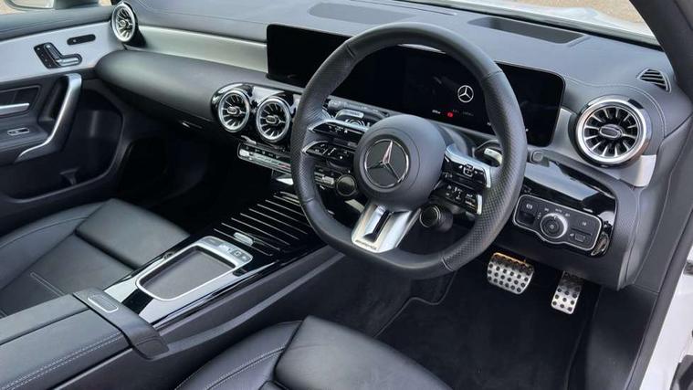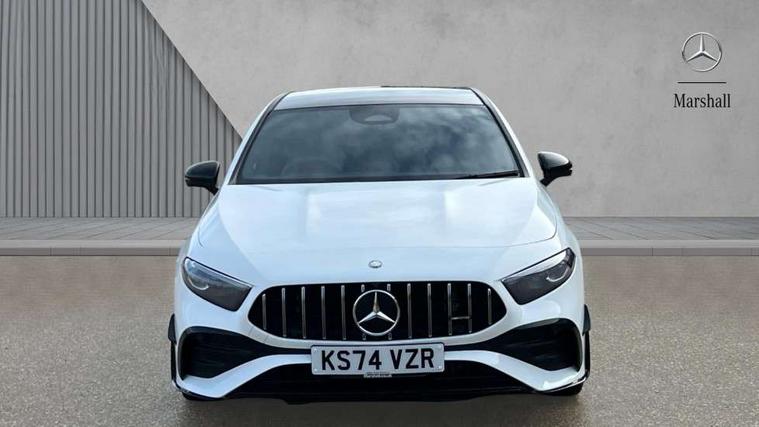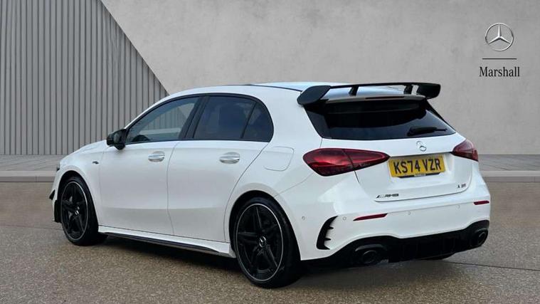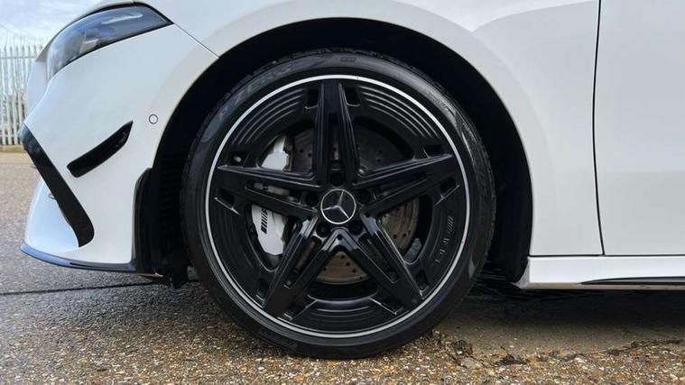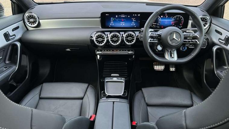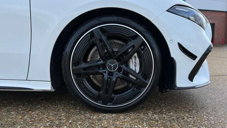 10.25 inch touchscreen central media display, 10.25" Digital instrument cluster display screen, Attention assist, Brake pad wear indicator warning light, Car wash mode, Direct steering, Direction indicators with lane change function, Dual bluetooth interfaces, DYNAMIC SELECT with driving programs (Slippery, Comfort, Sport, Sport+ and Individual), Easy pack tailgate hands-free access, ECO start/stop function, Engine start/stop button, Fingerprint scanner, Fluid level warning indicator for fuel, oil, coolant and washer fluid, Fluorescent jacket for driver, Hard-disk navigation, Head up Display, Hey Mercedes Voice activation, Lamp failure indicator, MBUX augmented reality for navigation, MBUX Interior assistant, Mercedes me connect including emergency call system, accident recovery, breakdown and maintenance management, Mercedes me remote services, Outside temperature gauge, Owners manual in English, Pre-installation of private car share, Preinstallation for Mercedes Benz link, Remote boot closing, Service indicator (ASSYST), Smartphone integration with Apple CarPlay and Android auto, Speed sensitive power steering, Tailgate, Traffic sign assist, Trip computer in multifunction display with current consumption indicator, Wireless charging, AMG suspension, Suspension with adaptive damping system, DAB Digital radio, MBUX multimedia system, Mercedes Benz advanced sound system (225 W) with 10 speakers, 1 central speaker, speakers on doors, a tweeter on door, one sub woofer + boost amplifier, 4 Electric Front and Rear windows, Adaptive brake lights, AMG body styling - AMG front apron with front splitter and AMG rear apron and visible exhaust tailpipe trim elements, AMG Front apron with flics as air deflector elements on the outer air intakes, AMG radiator grille with twin blade lamella and AMG Lettering, AMG Rear apron with specific diffuser look with four vertical fins and two round chrome plated tailpipe trim elements with a diameter of 90 mm, AMG spoiler lip on roof, Beltline strips in High gloss Black, Body colour bumpers, Body colour door handles with chrome inserts, Body colour side skirt, Electric adjustable and heated door mirrors with integrated LED side indicators, Front splitter and trim elements on the louvres in the outer air inlets, Front wings wheel arches with TURBO 4MATIC lettering, Headlamp assist automatic headlamp activation, Heat insulating dark tinted rear and rear side windows, Heated glass rear windscreen + timer control, LED daytime running lights, LED High level third brake light, LED tail lamp, Multibeam LED headlamps with adaptive highbeam assist and cornering function, Panoramic sliding sunroof, Privacy glass, Radio aerial, Rain sensing windscreen wipers with two sensitivity settings, Rear fog lights, Rear side wing doors, Rear windscreen wiper, Surround lighting with logo projection, Wider wheel arches for AMG wheels, Window line trim strip in black, 3 seat bench in 2nd row, 40:20:40 split folding rear seats, Air conditioning - Two zone thermotronic luxury automatic climate control with display, AMG floor mats, AMG Performance steering wheel in nappa leather, Automatic child seat recognition sensor, Black air vents with surround in silver chrome, Black roof lining, Brushed stainless steel sports pedals with rubber studs, Electrically adjustable front memory seats including lumbar support and backrest inclination, Front centre armrest with stowage, Front seat backs luggage nets, Height/reach adjustable steering column, Illuminated AMG front door sills with changeable cover, Interior lighting - 64 colour Ambient lighting, Interior mirror with reading lamps in black and frameless, Rear armrest with 2 cupholders, Seat occupancy sensor for front passenger seat, Silver coloured aluminium gear shift paddles on steering wheel, Single front passenger seat, Sports seats with integrated headrests, Stowage compartment in centre console with retractable cover, Sunvisors with illuminated vanity mirrors, Twin front cupholders, Aerodynamic pack - A Class, AMG night pack - A Class, Light and sight package - A Class, Mirror package - A Class, Parking pack with 360 degree camera - A Class, Seat comfort pack - A Class, USB pack plus - A Class, Winter pack - A Class, 3 rear 3 point seatbelts, ABS with Brake Assist, Active bonnet, Adaptive brake assist with hold function and hill start assist, Black seatbelts, Bonnet with power domes, Childproof locks manually operated for rear doors and electrically operated for rear power windows, Crash responsive emergency lighting, Driver and passenger head and side airbags, Drivers knee airbag, Dual stage driver/passenger airbags, Electronic parking brake, ESP curve dynamic assist, ESP with ASR, Exit warning, Front and rear seatbelt reminder, Front brake calipers with AMG lettering, ISOFIX and top tether child seat fixing points in two outer rear seats, Tyre pressure monitoring system, Warning triangle and first aid kit, Window airbags, Alarm system/interior protection/immobiliser, Guard 360 degree vehicle protection, Keyless entry lock/unlock, Keyless Go, Remote central locking and crash sensor with emergency opening function, Light longitudinal grain aluminium trim, 19" AMG 5 twin spoke light alloy wheels aerodynamically optimised painted in matt black with high sheen rim flange, Summer tyres, Tirefit sealant kit,