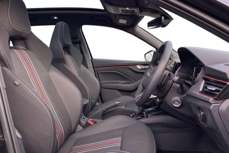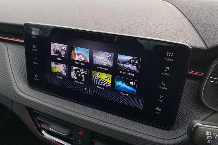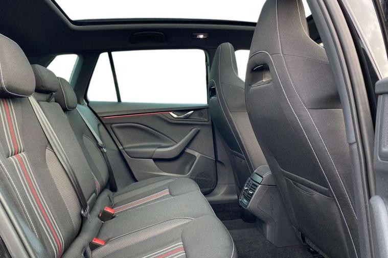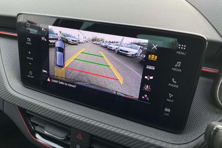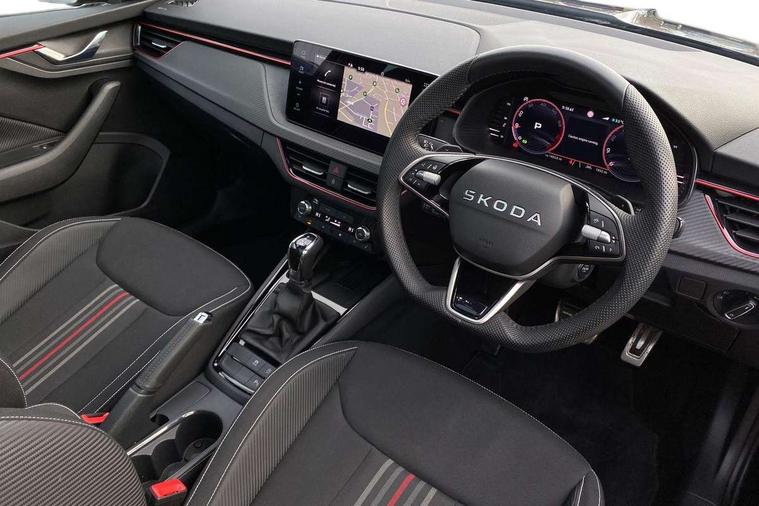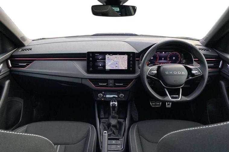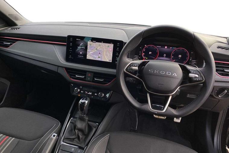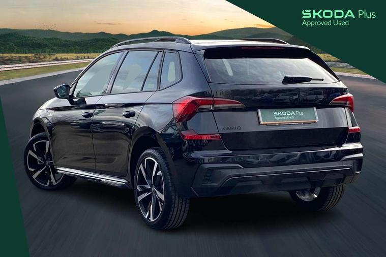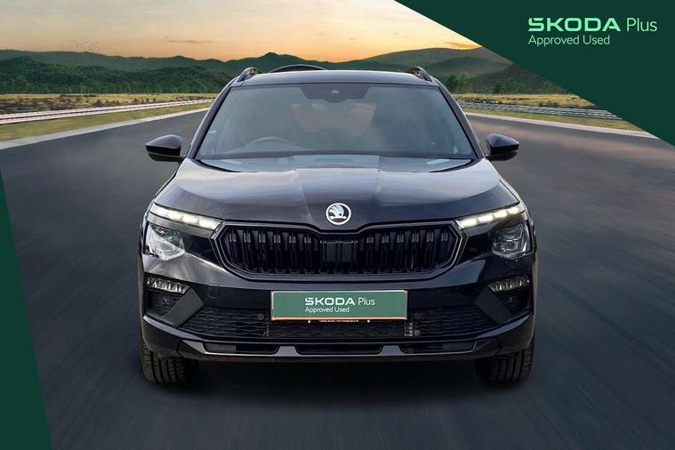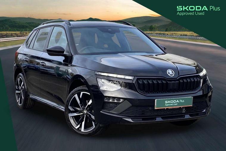 Advanced driver attention and drowsiness monitor, Bluetooth system, E-call, Front assist system, PAS, Rear parking sensors, Rear view camera, Service indicator, Speed limiter, Traffic sign recognition, Virtual cockpit with 10.25" display, Voice control system, Wireless smartlink, 4 USB C ports, 8 Speakers, 9.2" Skoda navigation display, DAB Digital radio, Auto dimming rear view mirror, Automatic headlight control with coming home and leaving home feature, Black door mirrors, Black radiator grille, Black rear diffuser, Black roof spoiler, Body colour bumpers, Body colour door handles, Boot lettering in black, Extended tailgate glass, Fixed panoramic sunroof with black roof rails, Front and rear electric windows, Heated rear window, LED daytime running lights, LED high beam, LED low beam, LED third brake light, Light sensors, Monte carlo plaque, Privacy glass, Rear side wing doors, Rear wiper, Ticket holder inside windscreen, 12V socket in luggage compartment, 3 seat bench in 2nd row, Aluminium pedals, Ambient lighting in white/red, Art leather carbon decor inserts, Art leather carbon door inserts, Black roof lining, Cargo elements, Chrome inner door handles, Driver and passenger sun visors with vanity mirror, Dual zone climate control, Front and rear roof lights, Front centre armrest, Front head restraints, Glove compartment with illumination, Height adjustable driver seat, Height adjustable front passenger seat, Ice scraper, Inner circulation control with pollen filter, ISOFIX on front passenger seat, Isofix preparation for back seats, Leather gearknob and handbrake lever, Manual lumbar support for front seats, Monte Carlo cloth upholstery, Net package and top tether hooks in boot space, Net under rear shelf, Pocket on the back of both front seats include mobile phone pockets, Rake/reach adjustable steering wheel, Reading lights, Rear centre armrests, Red hotstamping, Single front passenger seat, Sports seats, Textile floor mats, Third rear headrest, Top tether for front passenger seat, Umbrella in driver's door, Light and view plus package - Kamiq, 3x3 point rear seatbelts, Airbags - driver and front passenger, Disc brakes, ESP, Extended and predictive pedestrian/cyclist protection, Front passenger airbag deactivation switch, Front side airbags with curtain airbags, Hill hold control, Manual leather parking brake, Manual rear child locks, One tone horn, Seatbelt reminder for driver an co-driver, Traction control, Tyre pressure monitor, Anti-theft alarm system with interior monitoring, backup horn, towing protection and remote central locking with SAFE system, Anti-theft wheel bolts, Electronic engine immobilizer, 18" Ursa black diamond cut alloy wheels,