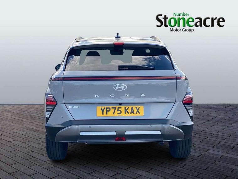 12.25" digital instrument cluster, 12.3" touchscreen centre console display satellite navigation with bluelink, live services and mapcare, Blind spot collision avoidance assist, Blind spot view monitor, Bluetooth connectivity with voice recognition, Cruise control, Driver status monitor (DSM), Driver supervision instrument cluster with 12.3" LCD display, eCall emergency call system, Feature on demand - Enabled, Forward collision avoidance assist (FCA 1.5) - Car, pededstrian, cycle and junction turning, Front parking sensor, Height adjustable power tailgate, Intelligent speed limit assist, Lane follow assist, Lane keep assist, Leading vehicle departure alert (LVDA), Parking Collision Avoidance Assist-Reverse (PCA-R), Parking distance warning - side, Parking system with rear camera and guidance system, PAS, Rear cross traffic collision avoidance (RCCA), Rear parking sensor, Rear view camera with dynamic guidelines, Roadside assistance, Safe exit warning (SEW), Surround view monitor, Wireless phone charging pad, Wireless Smartphone Integration includes Apple CarPlay and Android auto, 2 front USB C and 2 rear USB C charging points, Bose Premium Audio system with 7 premium speakers + subwoofer, DAB Digital radio, Steering wheel audio, phone and cruise controls, Auto dimming rear view mirror, Automatic headlights with dusk sensor, Automatic windscreen wipers with rain sensor, Black painted wheel arch inserts, Body colour exterior door handles, Body coloured door mirrors, Door mirror LED indicator lights, Electric front windows with anti-trap mechanism and one touch control, Electric rear windows, Electric sunroof, Electrically adjustable and heated door mirrors, Horizon centre LED DRL, LED projector headlights, LED taillights, LED upper and lower rear lights, Power folding door mirrors, Privacy glass - Rear windows and tailgate, Rain sensor, Rear roof spoiler with integrated LED brake light, Rear side wing doors, Rear skid plate - silver, Rear wiper, Roof rails, Solar glass with front door glass and windscreen, Tinted glass in front and rear doors, Windscreen auto defog function, 12V power outlet in front console, 2 zone climate control, 3 seat bench in 2nd row, 40/20/40 split folding rear seat, Adjustable head restraints, Ambient lighting, Driver and passenger front seat pockets, Driver's seat electric adjustments, Driver's seat lumbar support, Driver/passenger sunvisors and illuminated vanity mirrors, Floor mats, Front passenger's seat electric adjustments, Heated front seats, Heated rear seats, Heated steering wheel, Height/reach adjustable steering column, Leather steering wheel, Leather upholstery, Leather wrapped steering wheel and gear knob, LED centre interior light, LED front interior light, Luggage compartment LED lighting, Luggage net, Luggage shelf, Metal paint effect interior door handles, Rear centre armrest with cupholders, Single front passenger seat, Ventilated front seats, Vertical adjustment rear head restraints, Trailer wiring package - Kona, Airbag - front, front side, curtain and centre front airbag, Anti-lock brake system (ABS), Childproof rear door locks, Downhill brake control, Electric parking brake, Electronic stability control, Fixed 3 point for second row centre passenger seatbelt, Hill start assist control (HAC), Rear seat alert, Tyre pressure monitoring system, Alarm/immobiliser, Rear occupant alert, Remote central locking, Smart key with keyless entry and start/stop button, Five year annual vehicle health checks, 18" Alloy wheels, Temporary mobility kit (TMK),