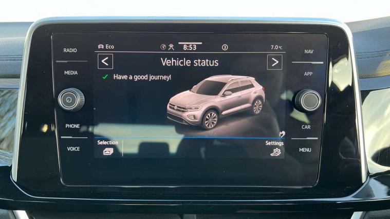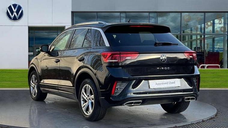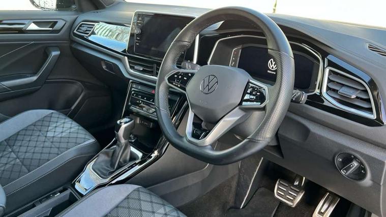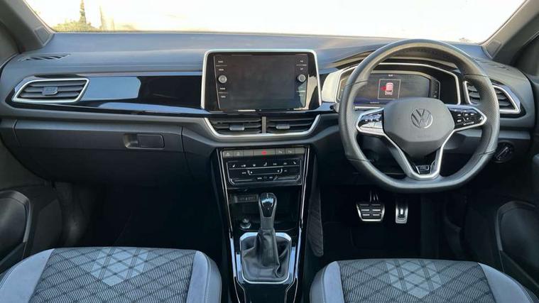 10.25" Digital cockpit pro, Bluetooth mobile phone interface, Driver alert system with fatigue detection, Driver tips and journey analysis, Emergency call service, Lane keeping system Lane Assist, Modified key software - reduce switch off time for key status change to Long no motion, Online services, Park assist including front and rear parking sensors, Service interval indicator, Tailgate/trunk lid release from outside, Think blue trainer driver tips and journey analysis, Warning sound and light for front seatbelts unfastened, Wireless app connect, Battery regeneration during braking, Start/stop function with battery regeneration, Diversity antenna for FM reception, Front and rear 6 speakers, Music playback - MP3, WMA and AAC files, Premium USB cable in choice of either Apple or Android smartphone compatibility, SD card slot, Simultaneous pairing of 2 compatible mobile devices, Title and cover art display, We Connect and We Connect Plus functionality, 3rd brake light, Auto dimming interior rear view mirror, Automatic hazard lights activation under emergency braking, Automatic headlight control with LED separate daytime running lights with coming/leaving home function, Extended roof spoiler, Exterior mirrors aspherical on driver side, convex on front passenger side, External USB type C socket and charging sockets, Front windscreen wiper with intermittent wipe and 4 position delay, Heated rear window, LED Plus headlamps, LED rear combination lamps, LED rear number plate lights, LED tail lamp rear comination lamps, Power windows with comfort operation and circuit breaker, R-Line design body coloured bumpers, Rain sensor, Rear exhaust tailpipe, Rear fog light on one side and reversing lights on both sides, Rear side wing doors, Rear wash/wipe with intermittent wipe setting, Remote electrically foldable door mirrors, puddle lights and reverse activated passenger's door mirror, 12V power socket in centre console, 3 rear head restraints, 3 seat bench in 2nd row, 4 load lashing points in luggage compartment, Air care climatronic air conditoning system with active combination filter and 2-zone temperature control, Black roof lining, Chrome plated radiator grille inserts, air vent surrounds and light switch surrounds, Door and side trim panel with leatherette insert, Drawer under drivers seat, Front + rear carpet mats, Front centre armrest, Front cupholders x 2, Front footwell illumination, Front reading light, Front scuff plates with R logo, Instrument lighting, white adjustable panel illumination, Interior ambient lighting and surround lighting, Interior light delay, Isofix child seat preparation, Leather gearshift handle, Load-through provision with cup holder when folded down ('Unsplit rear seat bench, split folding backrest, with centre armrest), Luggage compartment lighting, Single front passenger seat, Stainless steel pedals, Storage compartment in left and right luggage area, Storage compartment in rear doors, Storage compartments in driver and front passenger doors, Sunvisors with illuminated vanity mirrors, Variable boot floor, height adjustable and removable, Driver assistance pack without proactive passenger protection - T-Roc, 3 point height adj front seatbelts + pretensioners, 3 point seatbelts in outer rear with ECE label, ABS, Child locks on rear doors, Driver and front passenger airbag with front passenger airbag deactivation, Driver and front passenger safety-optimised head restraints, Drivers seatbelt reminder, Electronic parking brake, Electronic Stability Control (ESC) inc EDL (Electronic Differential Lock) and ASR (Traction Control), Front and rear passengers curtain airbag system including front side airbags, Front assist with city emergency braking and pedestrian monitoring, Front seat side impact airbags, Hill start assist, Predictive pedestrian protection, Rear disc brakes, Single tone horn, Tyre pressure loss indicator, Volkswagen roadside assistance, Alarm with interior protection, Anti-theft alarm system with interior monitoring, backup horn, and towing protection, Remote central locking with SAFELOCK, radio remote control with 2 remote control folding keys, Trims for alloy wheels,