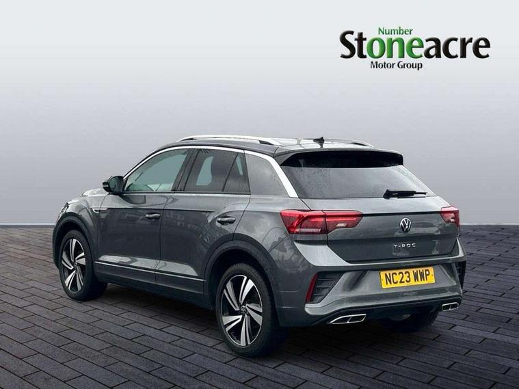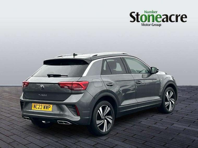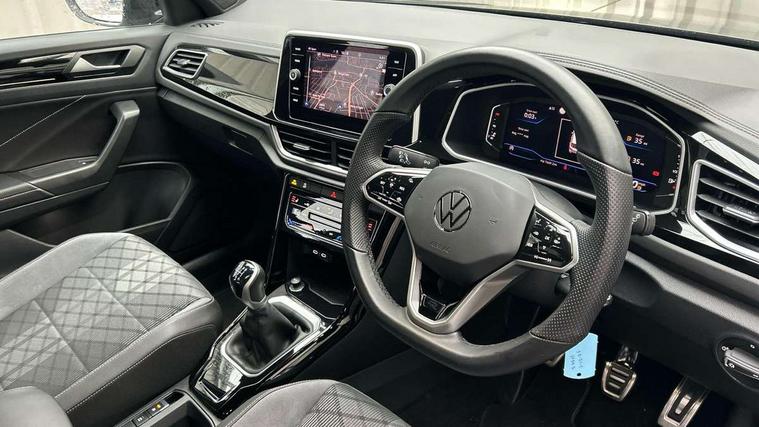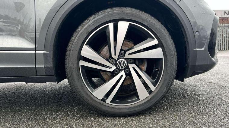 10.25" Digital cockpit pro, Bluetooth mobile phone interface, Driver alert system with fatigue detection, Driver tips and journey analysis, Emergency call service, Lane keeping system Lane Assist, Modified key software - reduce switch off time for key status change to Long no motion, Online services, Park assist including front and rear parking sensors, Service interval indicator, Tailgate/trunk lid release from outside, Think blue trainer driver tips and journey analysis, Warning sound and light for front seatbelts unfastened, Wireless app connect, Battery regeneration during braking, Start/stop function with battery regeneration, Diversity antenna for FM reception, Front and rear 6 speakers, Music playback - MP3, WMA and AAC files, Premium USB cable in choice of either Apple or Android smartphone compatibility, SD card slot, Simultaneous pairing of 2 compatible mobile devices, Title and cover art display, We Connect and We Connect Plus functionality, 3rd brake light, Auto dimming interior rear view mirror, Automatic hazard lights activation under emergency braking, Automatic headlight control with LED separate daytime running lights with coming/leaving home function, Extended roof spoiler, Exterior mirrors aspherical on driver side, convex on front passenger side, External USB type C socket and charging sockets, Front windscreen wiper with intermittent wipe and 4 position delay, Heated rear window, LED Plus headlamps, LED rear combination lamps, LED rear number plate lights, LED tail lamp rear comination lamps, Power windows with comfort operation and circuit breaker, R-Line design body coloured bumpers, Rain sensor, Rear exhaust tailpipe, Rear fog light on one side and reversing lights on both sides, Rear side wing doors, Rear wash/wipe with intermittent wipe setting, Remote electrically foldable door mirrors, puddle lights and reverse activated passenger's door mirror, 12V power socket in centre console, 3 rear head restraints, 3 seat bench in 2nd row, 4 load lashing points in luggage compartment, Air care climatronic air conditoning system with active combination filter and 2-zone temperature control, Black roof lining, Chrome plated radiator grille inserts, air vent surrounds and light switch surrounds, Door and side trim panel with leatherette insert, Drawer under drivers seat, Front + rear carpet mats, Front centre armrest, Front cupholders x 2, Front footwell illumination, Front reading light, Front scuff plates with R logo, Instrument lighting, white adjustable panel illumination, Interior ambient lighting and surround lighting, Interior light delay, Isofix child seat preparation, Leather gearshift handle, Load-through provision with cup holder when folded down ('Unsplit rear seat bench, split folding backrest, with centre armrest), Luggage compartment lighting, Single front passenger seat, Stainless steel pedals, Storage compartment in left and right luggage area, Storage compartment in rear doors, Storage compartments in driver and front passenger doors, Sunvisors with illuminated vanity mirrors, Variable boot floor, height adjustable and removable, Driver assistance pack without proactive passenger protection - T-Roc, 3 point height adj front seatbelts + pretensioners, 3 point seatbelts in outer rear with ECE label, ABS, Child locks on rear doors, Driver and front passenger airbag with front passenger airbag deactivation, Driver and front passenger safety-optimised head restraints, Drivers seatbelt reminder, Electronic parking brake, Electronic Stability Control (ESC) inc EDL (Electronic Differential Lock) and ASR (Traction Control), Front and rear passengers curtain airbag system including front side airbags, Front assist with city emergency braking and pedestrian monitoring, Front seat side impact airbags, Hill start assist, Predictive pedestrian protection, Rear disc brakes, Single tone horn, Tyre pressure loss indicator, Volkswagen roadside assistance, Alarm with interior protection, Anti-theft alarm system with interior monitoring, backup horn, and towing protection, Remote central locking with SAFELOCK, radio remote control with 2 remote control folding keys, Trims for alloy wheels,