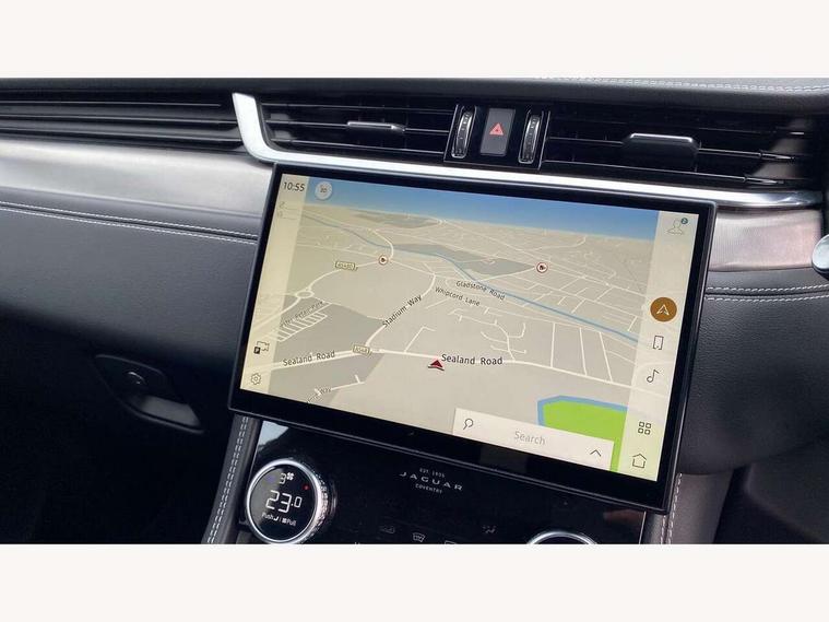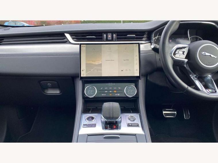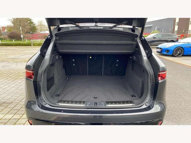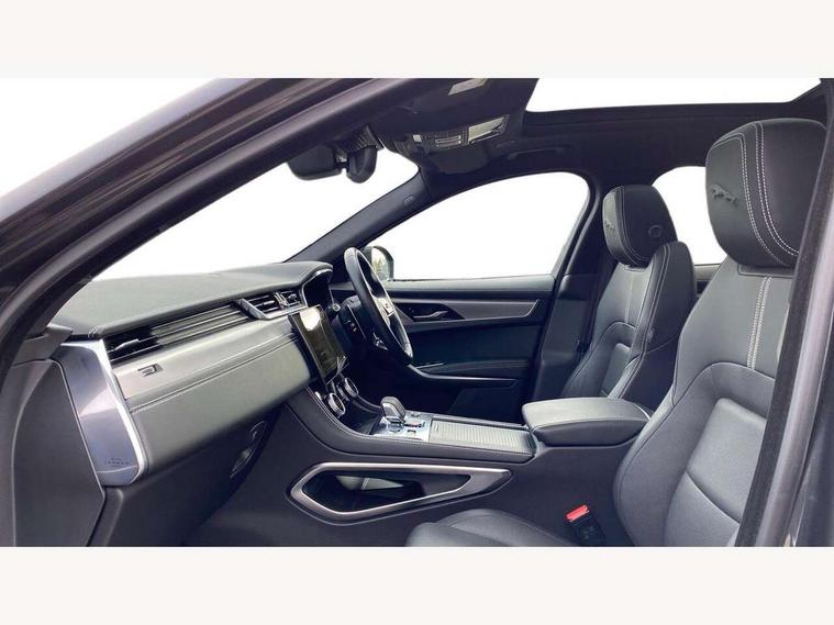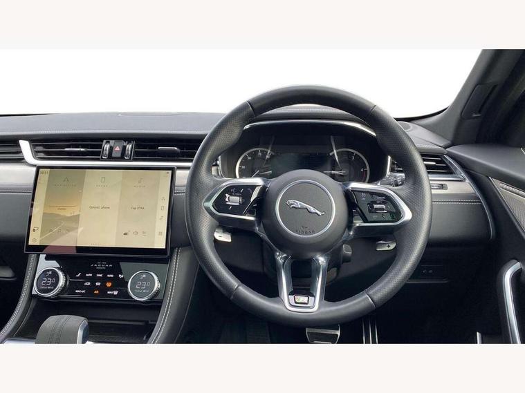 11.4" touchscreen, Android Auto, Apple car play, Blind spot assist, Bluetooth connectivity, Clear exit monitor, Driver alert system, Driver condition monitor, eCall emergency call system, Eco driving style assistant, Electric power assisted steering, InControl remote, Jaguar Toggle shift selector, Lane departure warning system, Lane keep assist, Outside temperature gauge, Personalisation profile management, Pivi pro connected navigation system with app interface and media storage, Pro services and wifi hotspot, Push button starter, Rear traffic monitor, Service interval indicator, Speed proportional steering, Start up sequence with movement in dials and lighting, Traffic sign recognition with adaptive speed limiter, Trip computer, Voice control system, 8 speed automatic transmission, All terrain progress control, All Wheel Drive (AWD), Open differential with torque vectoring by braking, AM/FM radio, Bluetooth streaming, DAB Radio (Digital Audio Broadcasting), Dynamic volume control, InControl apps, InControl protect, iPod integration, 3 flash lane change indicators, Animated directional indicators, Approach Illumination, Auto dimming rear view mirror, Automatic headlights, Body colour door mirrors, Electric heated/power fold memory door mirrors with approach lights and auto dimming driver side, Electric windows with one touch open/close and anti trap, F-Pace and R Dynamic badge, Green tinted glass, Heated front windscreen + heated washer jets, Heated rear window with timer, Jaguar script and leaper, LED High level third brake light, LED tail lights, Non acoustic front windscreen, R Dynamic badge on side door, Rain sensor windscreen wipers, Rear fog lights, Rear metal tread plates, Rear side wing doors, Rear wiper, Trailer stability assist, Variable front intermittent wipers, 12V power point front, 3 rear headrests, 3 seat bench in 2nd row, Air distribution speed, Bright metal foot pedals, Centre armrest console, Centre console with side storage, Deletion loadspace storage rails, Door sill tread plates, Fold flat front seats, Front centre armrest with storage compartment, Front door storage space, Glovebox finisher with jaguar script, Heated steering wheel, Hooks in loadspace, Illuminated glovebox, Interior front door handles with separate locking switches, ISOFIX on outer rear seats, Jaguar sense, Luggage tie downs in loadspace, Mist sensing, Multifunction steering wheel, Overhead lighting console, Overhead stowage for sunglasses, Passive front head restraints, Premium cabin lighting, Premium carpet mats, R-Dynamic branded leather steering wheel, Rear air vents, Rear armrest with twin cupholders, Rear centre headrest, Rear door storage space, Reversible boot floor, Satin chrome gearshift paddles, Shopping bag hook, Single front passenger seat, Sunvisors with illuminated vanity mirrors, Twin front cupholders with cover, Online Pack with data plan - F-Pace, 355mm front brakes and 325mm rear brakes, 3x3 point rear seatbelts, ABS, All surface progress control (ASPC), Brake pad warning light, DSC - Dynamic Stability Control, Electric parking brake (EPB), Emergency brake assist, Front airbags with passenger seat occupant detector, Front and rear seatbelt reminder, Front side airbags, Full length side window curtain airbag, Hill launch assist, Power operated child locks, Torque vectoring brake, Traction control, Tyre pressure monitoring system, Immobiliser, Keyless entry, Keyless start, Locking wheel nuts, Perimeter alarm, Remote central locking, Valet mode,