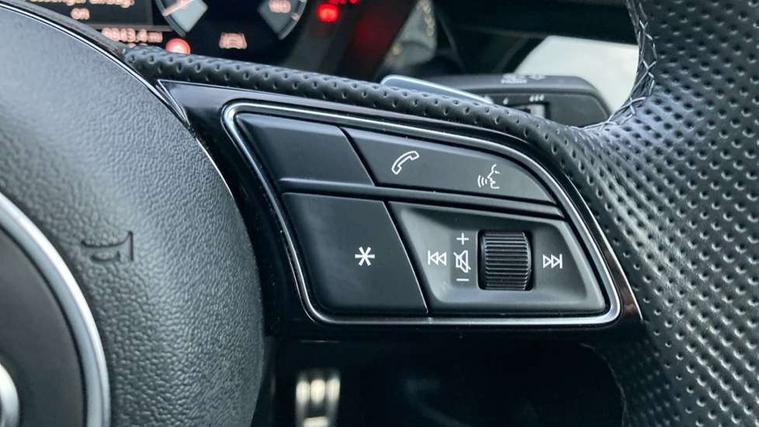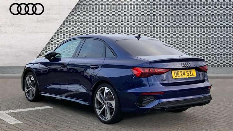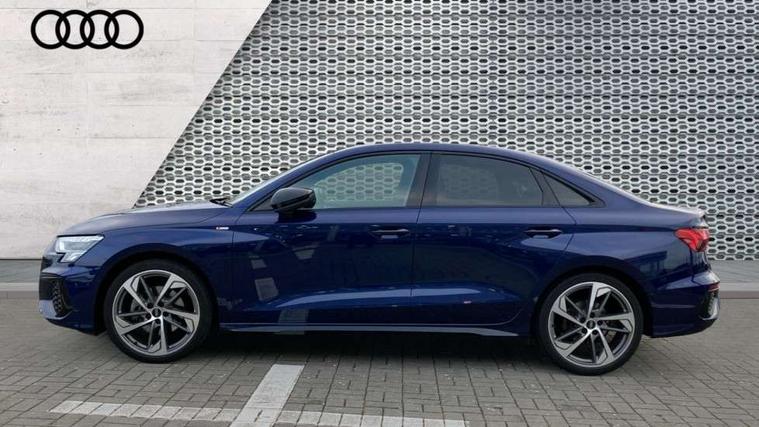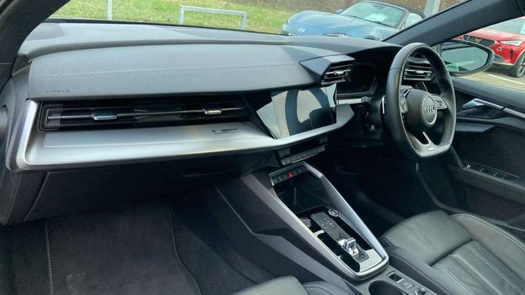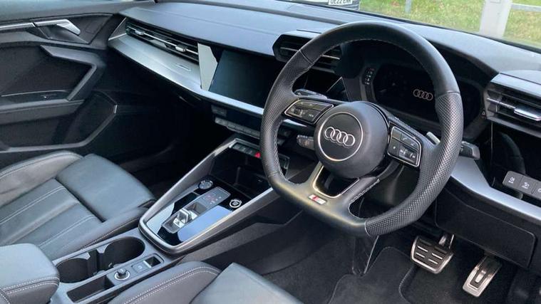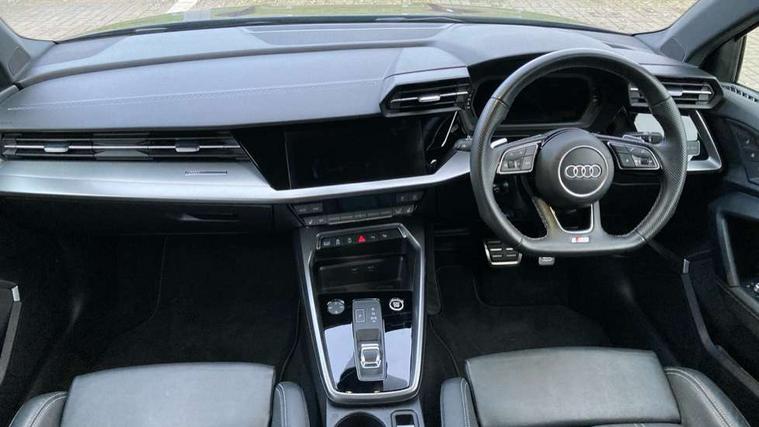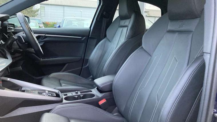 Audi drive select (Auto, Comfort, Dynamic, Efficiency and Individual), Audi smartphone interface, Audi Virtual Cockpit - 10.25" digital and colour instrument cluster, Automatic start/stop system with recuperation, Bluetooth interface, Camera based traffic sign recognition, Collision avoidance assistant, e-Call (emergency call), Electromechanical power speed sensitive steering, Lane departure warning system, MMI Navigation Plus with high resolution 10.1" colour touch screen display, Service indicator, Trip computer, Voice control system with natural language interaction, Sports suspension, 2xUSB-C connection with data and charging functions, 6 passive loudspeakers, CD player, DAB Digital radio, 3rd brake light, Acoustic glass windscreen, Audi beam uses LEDs to project the Audi logo onto the ground as you exit your A3, Auto dimming frameless rear view mirror, Electrically adjustable/heated/folding/auto dimming door mirrors with integrated LED indications + kerb view function for passenger side, Front electric windows, Illuminated door sills with aluminium inserts at the front with S logo, LED daytime running lights, LED headlights with LED rear lights and dynamic rear indicators, Light and rain sensors, Model and engine designation badges at rear, Privacy glass - dark tinted rear window, rear door and side windows, Rear boot, Rear electric windows, Rear side wing doors, S roof spoiler, 12V socket and storage compartment in front centre console, 3 seat bench in 2nd row, 3 spoke flat bottomed leather multifunction sport steering wheel with gear shift paddles, 4 way electrically adjustable lumbar support for driver and front passenger, 60/40 split folding rear seat bench, Black cloth headlining, Dual zone electronic climate control, Front and rear centre armrest in artificial leather, Front and rear headrests, Front/rear floor mats, Height and reach adjustable steering wheel, Interior lighting - glove compartment light and right hand side, Luggage compartment floor covering, Manual boot compartment lid, Single front passenger seat, Stainless steel pedals and front footrest in black, Twin leather upholstery with front sports seats S embossed logo, Aluminium interior elements pack - A3, Black styling pack - A3 Saloon/Black edition, LED interior lighting pack - A3 Saloon, 3x3 point rear seat belts, Driver and front passenger airbag with passenger airbag deactivation, Electronic Stabilisation Control (ESC) including ABS, ASR and EDL, First aid kit with warning triangle and 2 safety vests, Front side airbags with head airbags and interaction airbag, Pre-sense front with pedestrian and cyclist detection, Seatbelt monitoring, Tyre pressure loss indicator, Anti theft alarm, Anti-theft wheel bolts, Electronically operated child locks, Immobiliser, Remote control central locking, Aluminium air vent surrounds, Dark spectrum aluminium inlays, accent surfaces in the dashboard and centre console in platinum grey silk effect paint finish, 19" 5 arm trapezoid design alloy wheels in matt grey with diamond cut finish,