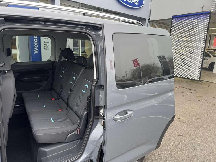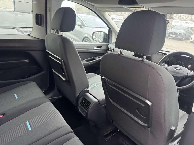 Analogue cluster, Brake wear indicator, Driver impairment monitor, E-call, Embedded modem, Mobile phone interface, PAS, Stop/start system with regenerative braking, Trip computer, 50 litre fuel tank, Standard duty alternator, Standard duty battery, Media hub 2x USB and rear USB Unit, Steering wheel mounted radio controls, Adaptive cornering lamps includes fog lamp, Auto headlamps On/off, Automatic windshield wiper, Black coloured exterior mirror finish, Black honeycomb grille with chrome surround, Black wheel arch mouldings, Body coloured exterior door handles, Body coloured exterior tailgate handles, Body coloured plastic front bumper and skid plates, Body coloured plastic rear bumper, Dark tinted rear privacy glass, Daytime running lights, Dual power fold heated mirrors, Dual sliding side load doors, Electric rear window defroster, Electric windshield defroster, Electrochromic inside mirror, Fixed 3rd row LHS and RHS window, Fixed rear window, Follow me home headlamps, High mounted stop lamp, Intermittent variable windshield wiper, Liftgate rear cargo door, Rain sensor, Rear registration plate light, Rear window wash/wipe, Roof rack silver painted rails, Standard green glass windscreen, Tail lamp - Level 1, Weather protection seals, 2 front row cupholders, 2nd and 3rd row rear overhead courtesy light with map light, 3 seat bench in 2nd row, 3x hooks on trim panel storage, 4 tie down hooks, A/C Refrigerant - HF01234YF, Air register Chrome, B Pillar assist handle, Base luggage compartment trim, Carpet load floor cover, Carpet partial floor cover, Center console level 4, Driver seat rotary recliner, Front door trim panel - Level 2, Front interior grab handles, Front seat tray table, Front throw in carpet floor mats, Glacier fabric upholstery, Glovebox lid with light, Header courtesy light with maplight, Height adjustable headrests, IP open storage above driver area, Large storage tool box, LED Load compartment light, Misfuel protection cap, Overhead storage shelfs, Painted instrument panel, Passenger seat rotary recliner, Passenger sunvisor with mirror, Pollen filter without carbon filter, Power point plug 2 off, Reach + rake adjustable steering column, Rear luggage compartment bag hook, Recirculation heater, Regular size washer tank, Second row 60/40 folding seats, Sensico gearshift knob, Sensico steering wheel, Side/rear door trim panel - Level 1, Single driver sunvisor illuminated with mirror, Single front passenger seat, Standard design foot pedal, Storage in front cab doors with bottle holder, Storage in rear doors with bottle holder, Third row dual individual seat, Waste container, Driver assistance package - Tourneo Connect/ Grand Tourneo Connect, High acoustics package - Tourneo Connect/ Grand Tourneo Connect, Ice feature pack 4 - Tourneo Connect/ Grand Tourneo Connect, Restrain device pack 3 - Tourneo Connect/ Grand Tourneo Connect, Seat pack 18 - Tourneo Connect/ Grand Tourneo Connect, 2nd row rear seat belts, 3rd row rear seat belts, 4 wheel disc brakes, Black seat belts, Brakes - (HLA)Hill launch assist/TC, Driver, passenger, 2nd and 3rd row rear seat belt reminder, Electric parking brake with auto hold function, Electronic emergency brake assist, Emergency brake light flashing, ESC with ABS, Front 2 way head restraints, Front active seat belts and manual adjuster seat belts, Front airbag restraint and passenger airbag restraint, Front side airbags, Isofix hard point attachment, Manual passenger airbag deactivation function, Post collision braking, Rear 2 way head restraints, Rear removeable package tray, Tire pressure sensors, 2 remote flip keys, Child proof rear door locks, Configurable Unlocking 2, Engine immobilizer - Securilock, Keyless entry and start with double locking, Locking wheel lug nuts, Power door dead locks and enabled door automatic relocking, Thatcham category 1 alarm B, 17" Premium painted alloy wheels with centre wheel hub cups and standard tread, Front tire and rear tire tread, Less wheel cover, Tyre repair kit,