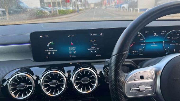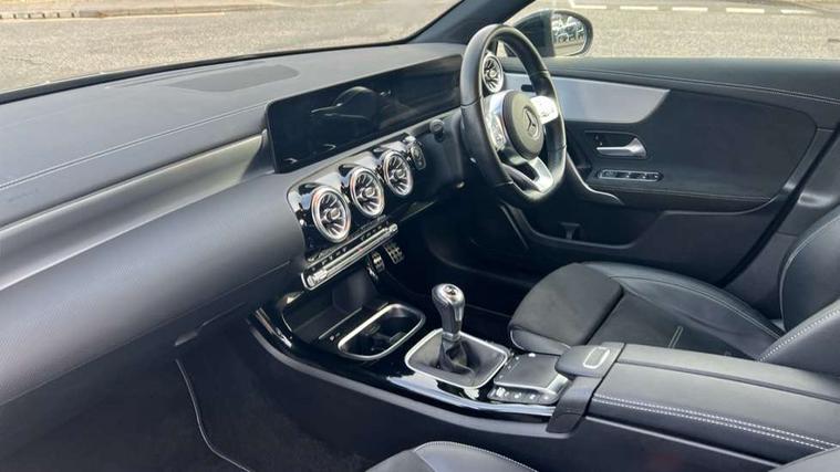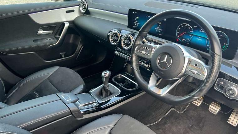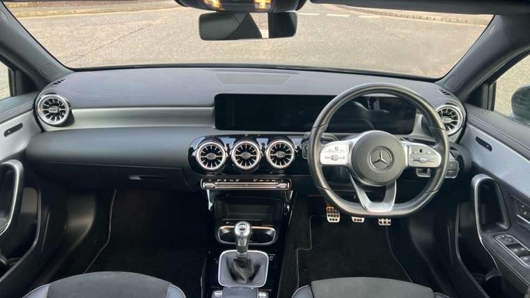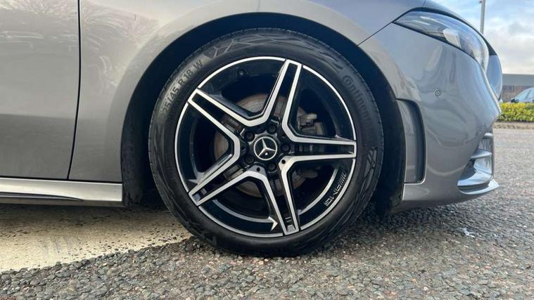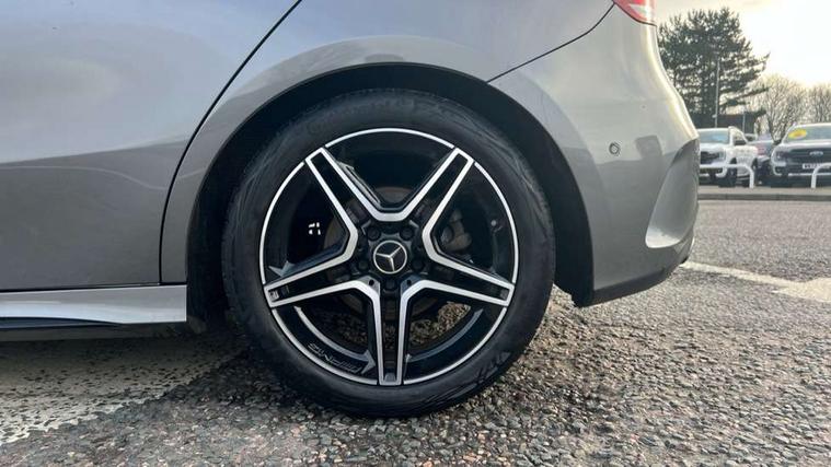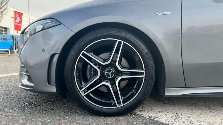 10.25" Digital instrument cluster display screen, 10.25" media display, 180 degree rear view camera with parking guidelines, Active parking assist with visual and audible warning of detected obstacles, Attention assist, Brake pad wear indicator warning light, Car wash mode, Cruise control + speed limiter, Direct steering, Dual bluetooth interfaces, DYNAMIC SELECT with a choice of driving modes (ECO, Comfort, Sport and Individual), ECO start/stop function, Fluid level warning indicator for fuel, oil, coolant and washer fluid, Hard-disk navigation, Hey Mercedes Voice activation, Lamp failure indicator, Lane keeping system, Mercedes me connect including emergency call system, accident recovery, breakdown and maintenance management, Mercedes me remote services, Outside temperature gauge, Owners manual in English, Pre-installation for private car sharing, Preinstallation for Mercedes Benz link, Service indicator (ASSYST), Smartphone integration with Apple CarPlay and Android auto, Speed sensitive power steering, Trip computer, Ultrasonic sensors positioned in the front and rear bumpers, Lowered comfort suspension, Rear axle torsion beam, 10 speakers, 2 USB ports (type C) in rear stowage compartment and one in front of center console, DAB Digital radio, MBUX multimedia system with DAB digital radio and touchpad including satellite navigation, Mercedes-Benz sound system - 100W, 4 Electric Front and Rear windows, Adaptive brake lights, AMG bodystyling - Front apron with splitter in chrome, rear apron with chrome trim and chrome visible trim elements in tailpipe, Automatic headlights, Black weather strip, Body colour bumpers, Body colour door handles, Body colour side skirt, Body coloured door mirrors, Electric adjustable and heated door mirrors with integrated LED side indicators, Exclusive diamond radiator grille, Exhaust system - Twin visible tailpipes in polished stainless steel, Headlamp assist automatic headlamp activation, Heated glass rear windscreen + timer control, High gloss black beltline, LED High level third brake light, LED high performance headlamps with integrated LED daytime running lights, LED tail lamp, Privacy glass, Radio aerial, Rain sensing windscreen wipers with two sensitivity settings, Rear fog lights, Rear side wing doors, Rear wiper, Window line trim strip in high gloss black, 3 seat bench in 2nd row, 3 Spoke flat bottom leather multi function steering wheel with perforated leather in grip area, 40:20:40 split folding rear seats, Artico man-made leather/Microfibre Dinamica upholstery with contrast stitching in light grey, Auto Mercedes-Benz child seat recognition sensor, Black air vents with surround in silver chrome, Black roof lining, Brushed stainless steel sports pedals with rubber studs, Controller on centre console with chrome surround, Floor mats with black top stitching and embroidered edition logo and piping in light grey, Front centre armrest with storage compartment, Front seat backs luggage nets, Front seat cushion length adjustment, Heated front seats, Height/reach adjustable steering column, Illuminated front door sills with changeable cover, Interior lighting - 64 colour Ambient lighting, Interior mirror with reading lamps in black and frameless, Manual height adjustable front seats, Rear armrest with 2 cupholders, Rear head restraints, Seat occupancy sensor for front passenger seat, Single front passenger seat, Sports seats with integrated headrests, Sunvisors with illuminated vanity mirrors, Touchpad on center console, Twin front cupholders, Two zone thermotronic luxury automatic climate control, Light and sight pack - A Class, Mirror package - A Class, Night pack - A Class Saloon/Hatchback, Seat comfort pack - A Class, 3 rear 3 point seatbelts, ABS with Brake Assist, Active bonnet, Active brake assist includes forward collision warning system with autonomous braking, Adaptive brake assist with hold function and hill start assist, Black seatbelts, Childproof locks manually operated for rear doors and electrically operated for rear power windows, Crash responsive emergency lighting, Driver and passenger head and side airbags, Drivers knee airbag, Dual stage driver/passenger airbags, Electronic parking brake, ESP curve dynamic assist, ESP with ASR, Front and rear seatbelt reminder, Front brake callipers with Mercedes Benz lettering, ISOFIX and top tether child seat fixing points in two outer rear seats, Tyre pressure monitoring system, Warning triangle and first aid kit, Window airbags, Alarm system/interior protection/immobiliser, Keyless entry lock/unlock, Keyless Go, Remote central locking and crash sensor with emergency opening function, Urban guard vehicle protection system with immobiliser and interior protection, Matrix look light longitudinal grain aluminium trim element, 18" AMG 5 twin spoke light alloy wheels aerodynamically optimised painted in black with highsheen finish, Summer tyres, Tirefit sealant kit,