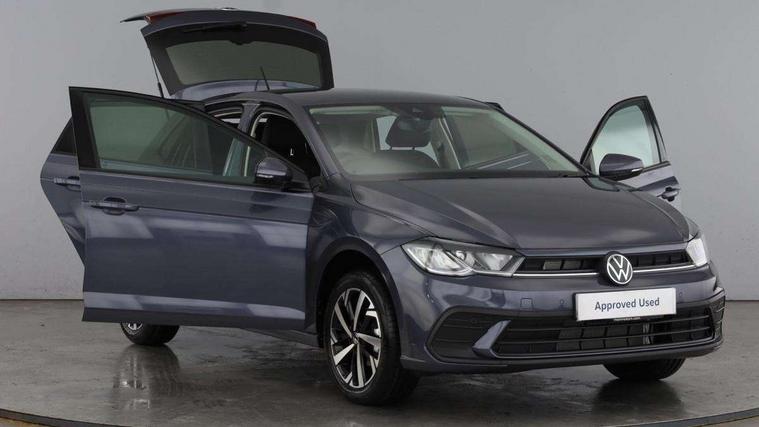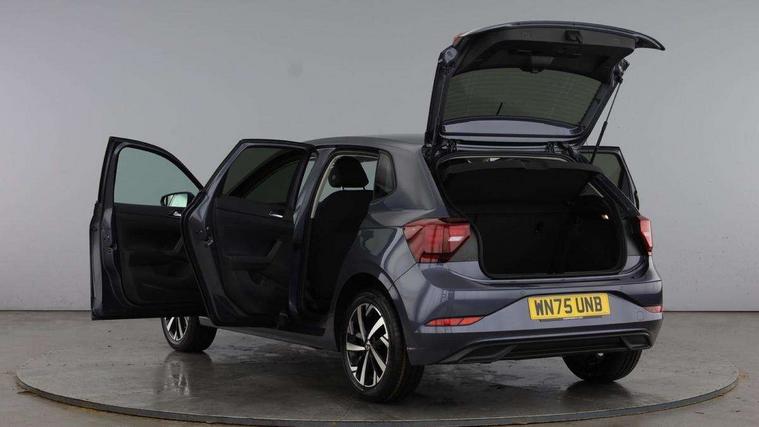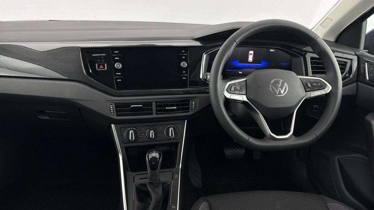Advanced driver attention and drowsiness monitor, Bluetooth mobile phone interface, Dynamic road sign display, Emergency call service, Mobile phone preparation with inductive charging function, Multifunction front facing camera for distance control, Power assisted speed sensitive steering, Predictive adaptive cruise control without follow-to-stop and speed limiter, Preparation for navigation system with media and internet package, Preparation for We connect and We connect plus, Rear view camera, Speedo and rev counter, electronic odometer, trip, service interval display and exterior temperature gauge, Standard rear axle, Travel Assist - Lane keeping system and traffic jam assist, Travel assist including emergency assist, Trip computer, Warning signal and warning light for front and rear seatbelts not fastened, Washer fluid level indicator, Wireless app connect, Front wheel drive, Rear shock absorpion, Start-stop system with battery regeneration (recuperation - energy recovery during braking), DAB Digital radio, Diversity antenna for FM reception, Automatic dimming interior rear view mirror, Automatic headlight control with LED separate daytime running lights with coming/leaving home function, Body colour bumpers with chrome inserts, Body colour door handles, Body colour door mirrors, Electric front windows, Engine badge deletion, Headlight range adjustment, Heat insulating and laminated safety glass windshield, LED Headlights, LED rear combination lamps, Power folding adjustable/heated exterior mirrors and front passenger exterior mirror lowering function, Rain sensor, Rear electric windows, Rear fog light, Rear side wing doors, Rear tinted glass from B-pillar backwards approx 65% tinted, Rear windscreen washer and wiper with interval delay, Third brake light, 12V power socket in centre console, 2 front and 2 rear reading lights with switch off delay and dimmer, 2 USB-C ports in the front, 2 USB-C charging sockets on the center console in the rear, 3 rear head restraints, 60/40 split folding rear seat and rear seat bench not split, Carpet mats, front and rear, Ceramique roof lining, Chrome plated radiator grille inserts, air vent surrounds and light switch surrounds, Door and side trim panel, Driver and front passenger seat height adjustment, Driver/passenger sunvisors with illuminated vanity mirrors, Front centre armrest, Front seat backrest storage pockets, Front standard seats, Handbrake lever handle in leather, Hartley/Thomas cloth upholstery, Headliner in recycled material, Isofix child seat preparation easy-fit (for two outer rear seats, and front passenger seat) compatible with I-size, Leather trimmed gear knob, Luggage compartment cover, Luggage compartment lighting, Removable luggage compartment floor, Single front passenger seat, Standard climatic zones, Standard pedal cluster, Three spoke leather wrapped multifunction steering wheel with shifting paddles, Light and vision pack - Polo, 3 point height adj front seatbelts + pretensioners, 3 point seat belt for centre rear seat, 3 point seatbelts, outer rear with ECE lable, ABS, Driver and front passenger airbag with front passenger airbag deactivation, Drivers and front passengers safety optimised head restraints, ESC (Electronic stability control) + EDL (Electronic Differntial lock) and ASR (Traction control), Extended and predictive pedestrian/ cyclist protection, Front assist with autonomous emergency braking (for Adaptive Cruise Control ACC up to 130 mph), Front curtain and side airbags with center airbag, Front disc brakes, Hill hold control, Manual child lock in rear doors, Rear drum brakes, Single tone horn, Tyre pressure loss indicator, Alarm with interior protection, Anti-theft alarm system with interior monitoring, backup horn, and towing protection, Anti-theft wheel bolts, Electronic engine immobiliser, Lava stone black gloss/matt decorative inserts in dash and front door panels, 16" Torsby alloy wheels, Low rolling resistance tyres,