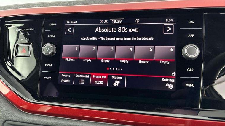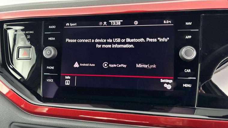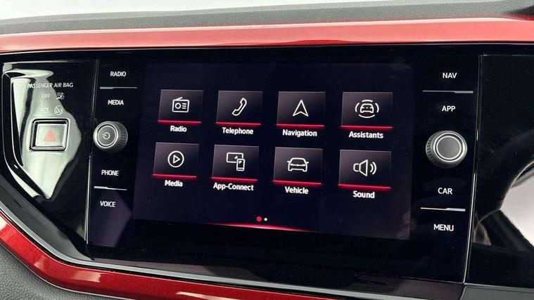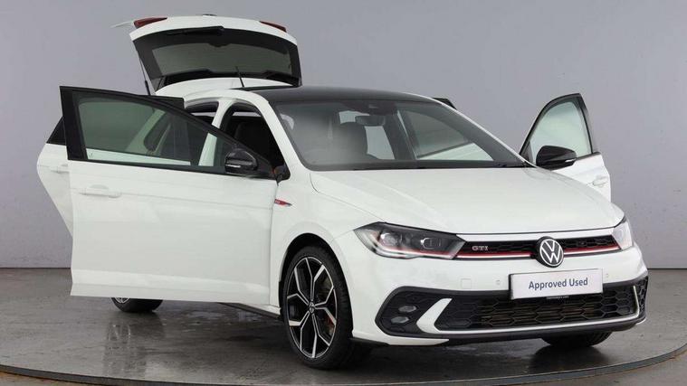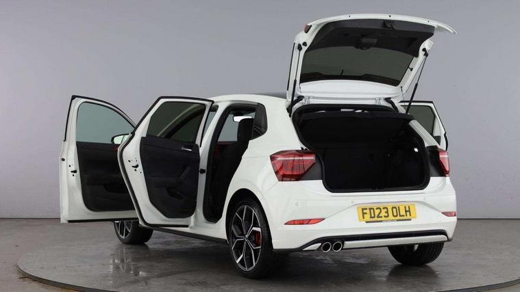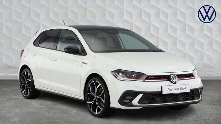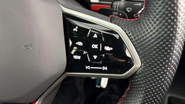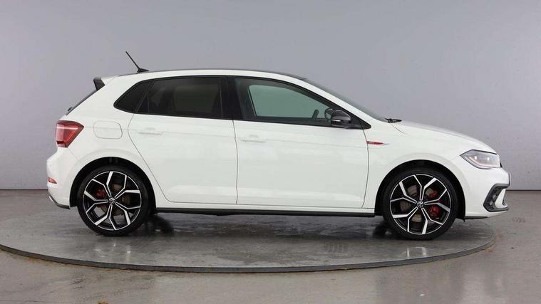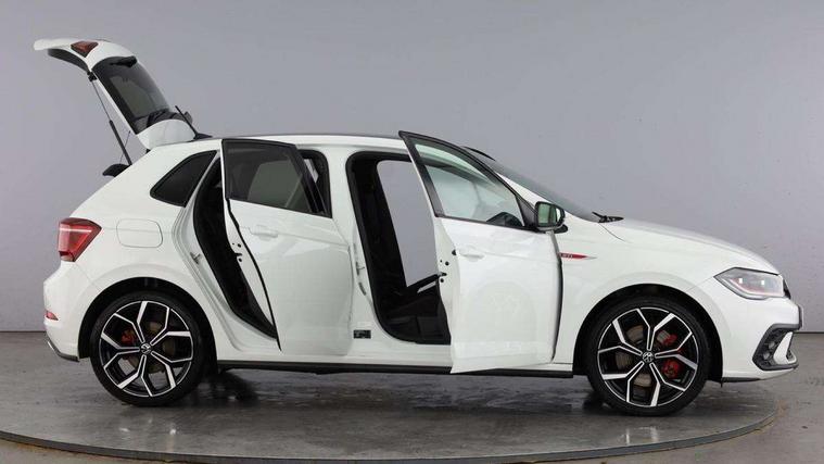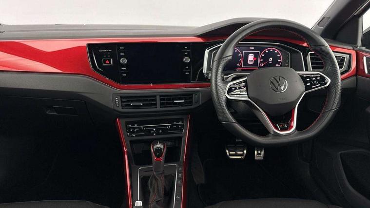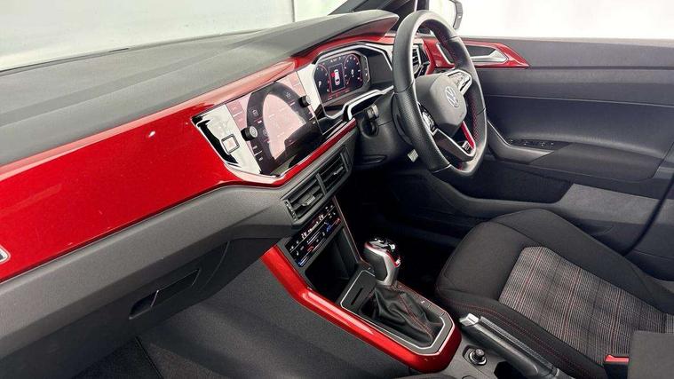 Adaptive cruise control with follow-to-stop and speed limiter, Bluetooth mobile phone interface, Digital Cockpit Pro with 10.25" Display, Driver alert system, Dynamic road sign display, Eco mode, Emergency call service, Power assisted speed sensitive steering, Preparation for We connect and We connect plus, Speedo and rev counter, electronic odometer, trip, service interval display and fuel gauge, Travel Assist - Lane keeping system and traffic jam assist, Travel assist including emergency assist, Trip computer, Warning signal and warning light for front and rear seatbelts not fastened, Washer fluid level indicator, Wireless app connect, Adaptive chassis control, Front wheel drive, Heavy duty rear axle, Rear shock absorpion sports version, Sports select suspension lowered by 15mm, Start-stop system with battery regeneration (recuperation - energy recovery during braking), DAB Digital radio, Diversity antenna for FM reception, Front and rear 6 speakers, Body colour bumpers, Body colour door handles, Electric front windows, Front scuff plates in aluminium with GTI logo, Heat insulating darkened glass in side and rear windows, Heat insulating glass windscreen, Power folding adjustable/heated exterior mirrors and front passenger exterior mirror lowering function, Rain sensor, Rear electric windows, Rear fog light, Rear side wing doors, Rear windscreen washer and wiper with interval delay, Sport bumpers with air intakes with honeycomb structure, Third brake light, Twin chrome exhaust tailpipes, 12V power socket in centre console, 2 USB-C ports in the front, 2 USB-C charging sockets on the center console in the rear, 3 rear head restraints, 60/40 split folding rear seat and rear seat bench not split, Air care climatronic air conditoning system with active combination filter and 2-zone temperature control, Black roof lining, Chrome plated radiator grille inserts, air vent surrounds and light switch surrounds, Door and side trim panel, Driver and front passenger seat height adjustment, Driver/passenger sunvisors with illuminated vanity mirrors, Front + rear carpet mats in recycled material, Front centre armrest, Front footwell illumination, Front seat backrest storage pockets, GTI sports gearshift knob in aluminium leather, Handbrake lever handle in leather, Headliner in recycled material, Isofix child seat preparation easy-fit (for two outer rear seats, and front passenger seat) compatible with I-size, LED interior light with switch off delay and dimmer, 2 reading lights front and rear, Luggage compartment cover, Luggage compartment floor, Luggage compartment lighting, Single front passenger seat, Stainless steel pedals, Standard pedal cluster, Three spoke leather wrapped multifunction sports steering wheel with shifting paddles, IQ LED matrix headlights pack - Polo, Light and sight pack - Polo GTI, 3 point height adj front seatbelts + pretensioners, 3x3 point rear seatbelts, ABS, Driver and front passenger airbag with front passenger airbag deactivation, Drivers and front passengers safety optimised head restraints, ESC (Electronic stability control) + EDL (Electronic Differntial lock) and ASR (Traction control), Extended and predictive pedestrian/ cyclist protection, Front and rear disc brakes with red brake calipers, Front curtain and side airbags with center airbag, Hill hold control, Manual child lock in rear doors, Two tone horn, Tyre pressure loss indicator, Alarm with interior protection, Anti-theft alarm system with interior monitoring, backup horn, and towing protection, Anti-theft wheel bolts, Electronic engine immobiliser, Chrome applications on rotary light, mirror adjustment, window regulator switches, outlet with frame in black, Low rolling resistance tyres,