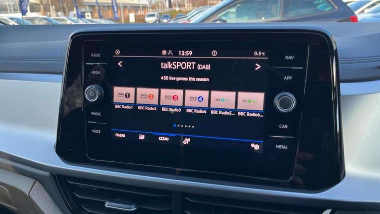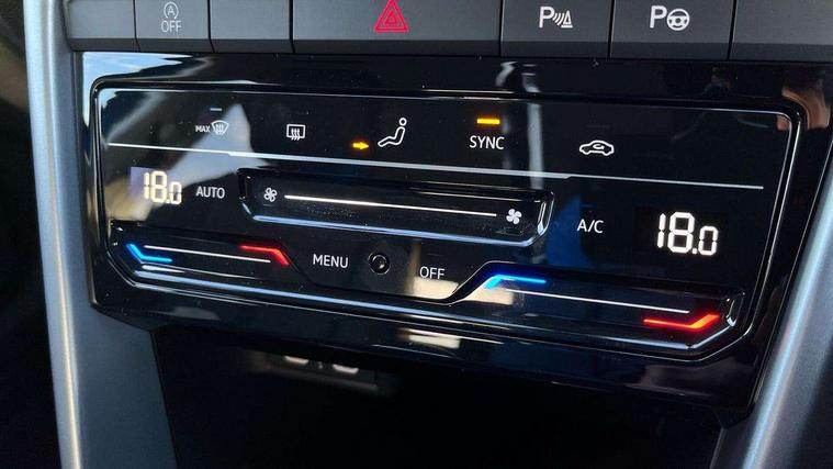 Advanced driver attention and drowsiness monitor, Dynamic road sign display, Emergency call service, Lane keeping system Lane Assist, Mobile phone interface, Modified key software - reduce switch off time for key status change to Long no motion, Online services, Park assist including front and rear parking sensors, Power assisted speed sensitive steering, Rear view camera, Service interval indicator, Tailgate/trunk lid release from outside, Think blue trainer driver tips and journey analysis, Warning sound and light for front seatbelts unfastened, Wireless app connect, Battery regeneration during braking, Front shock absorption, Rear shock absorption chassis with increased ride height, Start/stop function with battery regeneration, DAB Digital radio, Diversity antenna for FM reception, Music playback - MP3, WMA and AAC files, SD card slot, Simultaneous pairing of 2 compatible mobile devices, Title and cover art display, We Connect and We Connect Plus functionality, Auto dimming interior rear view mirror, Automatic hazard lights activation under emergency braking, Automatic headlight control with LED separate daytime running lights with coming/leaving home function, Black roof rails, Body coloured bumpers and radiator grille with chrome trim and front fog lamps with chrome bezel, Body coloured exterior mirror housings and door handles, Electrically adjustable and heated door mirrors, Extended roof spoiler, Exterior mirrors aspherical on driver side, convex on front passenger side, External USB type C socket and charging sockets, Front windscreen wiper with intermittent wipe and 4 position delay, Heated rear window, LED 3rd brake light, LED rear combination lamps, LED rear number plate lights, Power windows with comfort operation and circuit breaker, Privacy glass for rear side windows and rear window, Rain sensor, Rear exhaust tailpipe, Rear fog light on one side and reversing lights on both sides, Rear side wing doors, Rear wash/wipe with intermittent wipe setting, Remote electrically foldable door mirrors, puddle lights and reverse activated passenger's door mirror, 12V power socket in centre console, 3 rear head restraints, 3 seat bench in 2nd row, 4 load lashing points in luggage compartment, Air care climatronic air conditoning system with active combination filter and 2-zone temperature control, Black stitching for floor mats, Ceramique roof liner, Cloth upholstery, Door and side trim panel in cloth, Drawer under drivers seat, Driver/front passenger seat height adjustment, Front centre armrest, Front comfort sports seats, Front cupholders x 2, Front reading light, Front seat back storage pockets, Glove compartment door with light, Instrument lighting, white adjustable panel illumination, Interior ambient lighting and surround lighting, Interior light delay, Isofix child seat preparation, Leather gearshift handle, Load-through provision with cup holder when folded down ('Unsplit rear seat bench, split folding backrest, with centre armrest), Luggage compartment lighting, Lumbar support for driver's and front passengers seat, Non-folding front passenger seat backrest, Single front passenger seat, Storage compartment in left and right luggage area, Storage compartment in rear doors, Storage compartments in driver and front passenger doors, Sunvisors with illuminated vanity mirrors, Variable boot floor, height adjustable and removable, Driver assistance pack without proactive passenger protection - T-Roc Life/Match, 3 point height adj front seatbelts + pretensioners, 3 point seatbelts in outer rear with ECE label, ABS, Child locks on rear doors, City emergency braking and pedestrian monitoring, Driver and front passenger airbag with front passenger airbag deactivation, Driver and front passenger safety-optimised head restraints, Drivers seatbelt reminder, Electronic parking brake, Electronic Stability Control (ESC) inc EDL (Electronic Differential Lock) and ASR (Traction Control), Front and rear passengers curtain airbag system including front side airbags, Front disc brakes, Hill start assist, Predictive pedestrian protection, Rear disc brakes, Two tone horn, Tyre pressure loss indicator, Volkswagen roadside assistance, Alarm with interior protection, Keyless locking and starting system keyless access with safelock, Pewter matt decorative inserts for intrument panel, centre console and door panels at the front, Trims for alloy wheels,