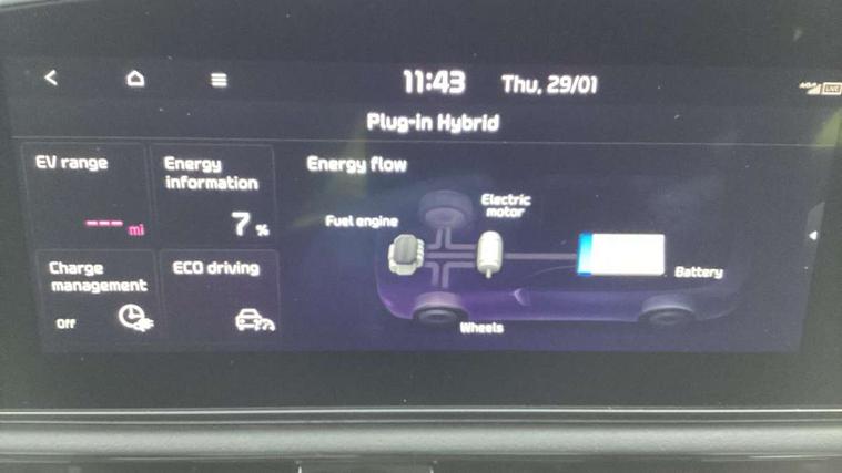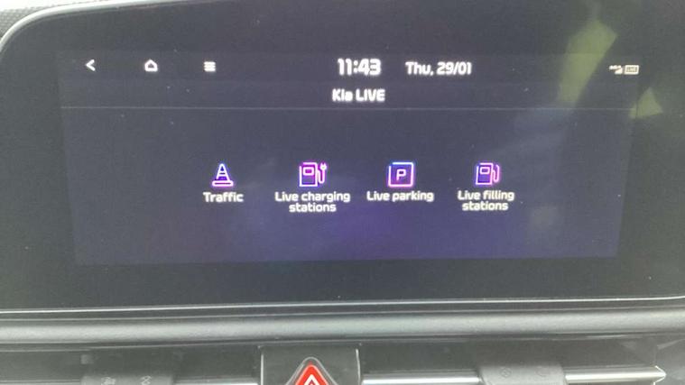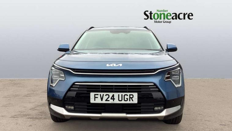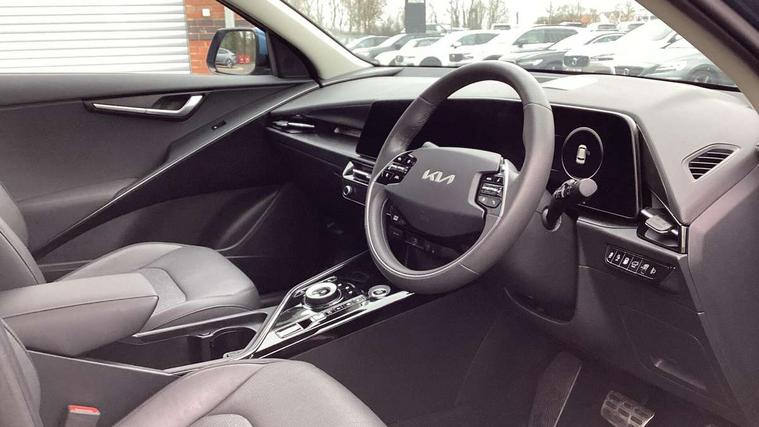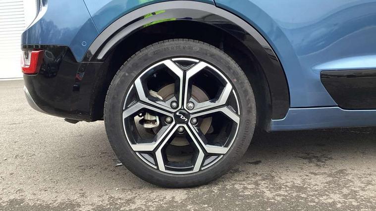 10.25" Supervision colour cluster display, 10.25" touchscreen satellite navigation, Apple car play/Android Auto with voice control, Blind spot collision avoidance assist, Customisable Head Up Display, Drive mode select (Eco, normal, sport, snow), E-call, Emergency stop signalling system, Forward Collision-Avoidance Assist (FCA) 1.5 - City/Pedestrian/Cyclist/Junction turning, Front parking sensors, Highway Driving Assist (HDA), Intelligent speed limit assist, Kia Connect (UVO), Lane Following Assist (LFA), Lane keep assist, Motor driven power steering, Parking collision avoidance assist (PCA), Rear cross traffic collision avoidance assist (RCCA), Rear parking sensors, Remote smart parking assist, Reversing camera system, Safe exit warning (SEW), Smart cruise control with stop and go functionality, Smart power tailgate, Trip computer with distance/fuel consumption/average speed, Wireless Smartphone charger, 220v AC Inverter, 'Shark fin' mobile antenna, 6 speakers, Bluetooth with music streaming, DAB Digital radio, Steering wheel mounted controls, USB port for connection of a media device, Acoustic windshield, All round electric windows with drivers and front passenger auto up/down and safety function, Auto dimming rear view mirror, Automatic defog system, Automatic headlight control system, Black grille with chrome surround, Black window surrounds, Body colour bumpers, Body colour door mirrors, Body colour exterior door handles, Deluxe door scuff plates, Dual LED headlights (low and high projection), Electrically adjustable and heated door mirrors with LED turn indicator, Electrically folding door mirrors, Front and rear chrome skid plates, Front fog lights, Gloss black wheel arches, Heated rear window, LED daytime running lights, LED High mounted brake light, LED rear combination lights, Privacy glass - Rear windows and tailgate, Rain sensing front wipers, Rear fog lights, Rear side wing doors, Rear spoiler, Rear wiper, Roof rails, Solar glass windscreen, Sunroof with tilting and sliding function, Welcome and follow-me home light functionality, Windscreen Washer Level Warning, 12v socket in front, 12V socket in luggage compartment, 3 seat bench in 2nd row, 60:40 split remote folding rear seats, All-round height adjustable headrests, Aluminium pedals, Artificial leather centre console storage box, Artificial leather steering wheel, Artificial leather upholstery, Centre console cupholder, Chrome coating interior door handles, Driver power adjusted memory seat, Driver/passenger sunvisors with illuminated vanity mirrors, Drivers seat power lumbar support, Dual zone automatic air conditioning, Front and rear door storage, Front passenger 1 x USB-C charging port, Front passenger power adjusted seat, Front passenger relaxation seat, Glove box, Heated front seats, Heated outer rear seats, Heated steering wheel, ISOFIX Child seat top tethers and anchor fixings, LED Front cabin, rear & luggage compartment lights, Luggage area load cover, Luggage board, Paddle shifts, Power adjustable lumbar support on front passenger seat, Rear centre armrest with cupholder, Rear passenger 2 x USB-C charging ports, Seatback pocket - driver, Seatback pocket - front passenger, Shift by wire SBW, Single front passenger seat, Tilt/telescopic adjustable steering wheel, Ventilated front seats, Ventiliation ducts to rear compartment, Towing pack - Niro, 3 point seatbelts on all seats, ABS, Automatic unlocking of doors in case of impact, Curtain and side airbags, Dual shell horn, Electric parking brake with auto hold function, Electronic stability control, Front airbags, Front passenger airbag cut-off switch, Height adjustable front seatbelts, Hill start assist control (HAC), Knee airbags, Seatbelt reminder warning, Traction control, Tyre pressure monitoring system, Customisable automatic door locking, Customisable automatic door unlocking, Deadlocks, Engine Start/Stop Button with Smart Entry System, Locking wheel nuts, Manual child locks, Rear occupant alert, Smart key with motion sensor, Thatcham category 2 security alarm and immobiliser, Visible vehicle identification number, Warranty - 7 Years/ 100, 000 miles, Centre fascia chopped carbon, 18" Alloy wheels, Tyre mobility kit,