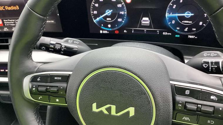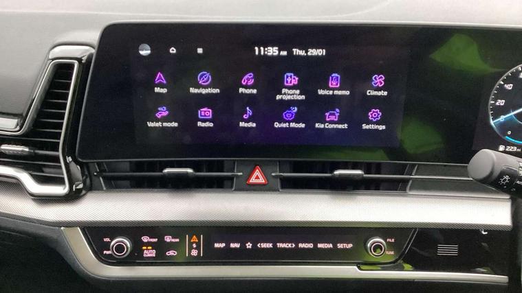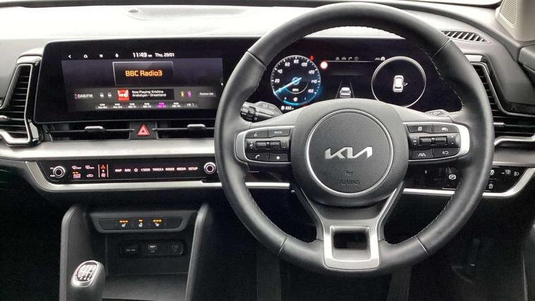 12.3" Driver display screen, 12.3" Touchscreen navigation system, 2 rear USB-C ports, Apple car play/Android Auto, Cruise control + speed limiter, Drive mode selector, Driver attention warning, E-call, Emergency stop signalling system, Forward collision avoidance assist (FCA) - city/pedestrian/cyclist/junction covering, Front and rear parking sensors, Intelligent speed limit assist, Kia Connect (UVO), Lane Following Assist (LFA), Lane keep assist, Low washer fluid warning, Motor driven power steering, Rear view monitor, Reversing camera system integrated into centre fascia screen, Tailgate, Trip computer, Windscreen washer level indicator, 1x USB-C port in front, 6 speaker audio system, Bluetooth audio streaming, DAB Radio with MP3, Steering wheel mounted audio controls, USB C type charging ports on centre console, USB port for connection of a media device, All round electric windows with drivers and front passenger auto up/down function, Auto dimming rear view mirror, Automatic headlight control system, Automatic window defogger, Black bumpers with silver accents, Black radiator grille with silver surround, Black side sill and wheel arch body mouldings, Body colour door mirrors, Body colour exterior door handles, Electrically adjustable/heated/folding door mirrors with LED indicators, Heated rear window, High beam assist, Interior electrochromic mirror, LED daytime running lights, LED front fog lamps, LED headlamps (low and high beam - MFR type), LED High mounted stop light, LED rear combination lamp, Rain sensing wipers with aero blades, Rear fog lamp, Rear privacy glass, Rear side wing doors, Rear spoiler, Rear wiper, Satin finished beltline, Silver front and rear skid plate, Silver roof rack, Silver window surround, Tinted rear glass, Trailer stability assist, 12V power socket in front centre fascia and luggage compartment, 2nd row personal lamps, 3 seat bench in 2nd row, 3 x passenger assist grips, 40/20/40 split folding rear seat, All-round height adjustable headrests, Automatic air conditioning, Centre console storage box, Cloth/artificial leather upholstery, Cupholders in rear armrest, Door courtesy lamps, Drink holder at centre armrest, Driver and front passenger side sunvisors with illuminated vanity mirrors, Drivers seat power lumbar support, Electric height adjustable front seats, Front and rear door storage, Front Cabin, Rear & Luggage Compartment Lights, Front seat and rear pockets, Gear shift indicator, Glovebox illumination, Heated front and outer rear seats, Heated steering wheel, ISOFIX Child seat top tethers and anchor fixings outer rear seats, Leather steering wheel, Luggage area load cover, Luggage area parcel shelf, Luggage board, Luggage compartment under floor storage, Luggage net with hooks, Manual adjust steering wheel, Metal paint interior door handles, Overhead console lamp, Rear air conditioning, Rear cabin light, Rear coat hooks, Single front passenger seat, Ventilation ducts to rear compartment, Active front headrests, All round 3-point seatbelts, Anti-lock braking system (ABS), Dual front side airbags, Dual horn, Dynamic brake control, Electronic parking brake with auto hold function, Electronic stability control with downhill brake control, Front passenger airbag cut-off switch, Front seatbelt pretensioners + load limiters, Height adjustable front seatbelts, Hill start assist control (HAC), Impact sensing auto door unlocking, Multi collision brake assist, Rear airbags, Rear door child safety locks, Rear seat alert system, Seatbelt reminder warning, Traction control, Twin curtain airbags, Twin front airbags, Tyre pressure monitoring system, Vehicle stability management, Customisable automatic door locking, Customisable automatic door unlocking, Door deadlocks, Engine Start/Stop Button with Smart Entry System, Locking wheel nuts, Smart key with motion sensor, Speed sensitive auto door locking, Thatcham category 2 security alarm and immobiliser, Visible vehicle identification number, Aluminium pattern finish centre fascia and door garnish, 18" Alloy wheels, Tyre mobility kit,