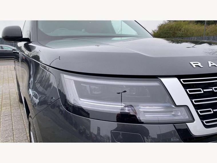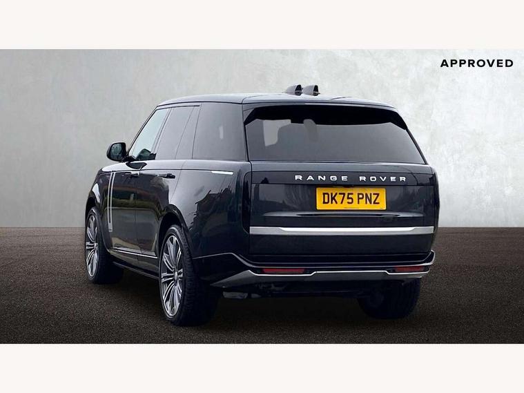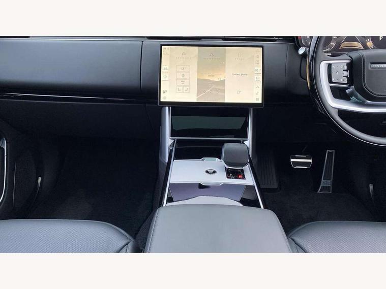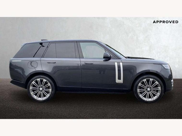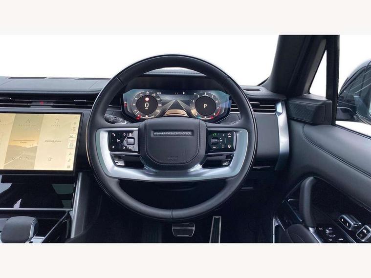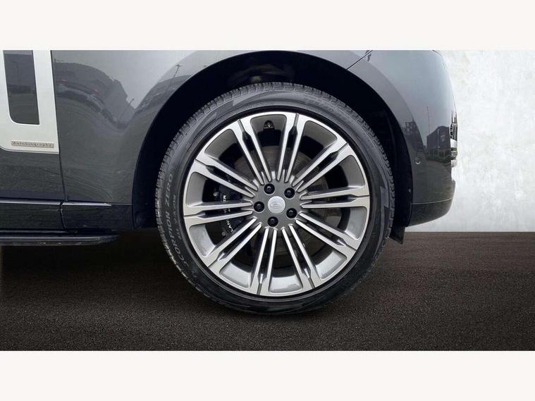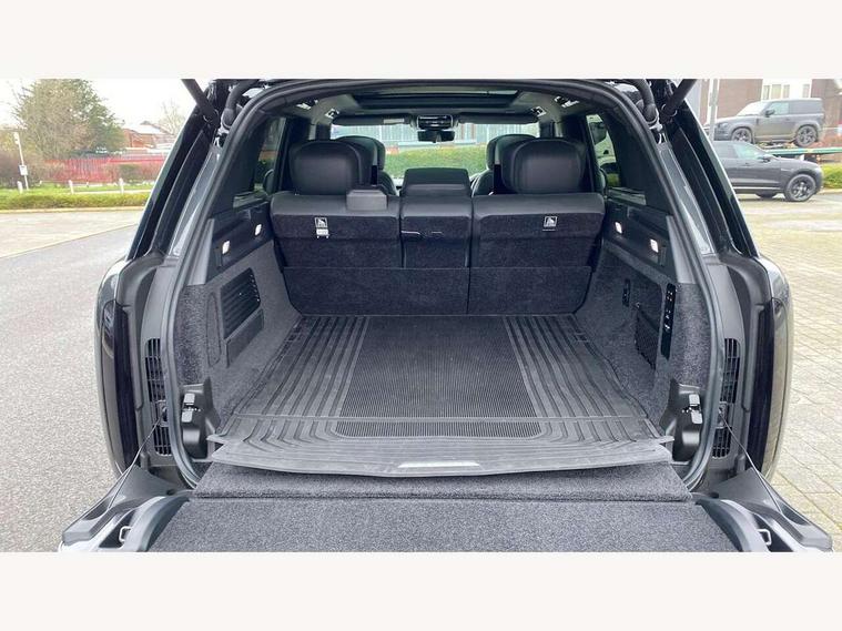 13.1" Touchscreen, 3D surround camera inc frwd traffic detection, vehicle clearance guidance, 3D view, clearsight ground view, manoevure light, 360 parking aid, wade sensing, Adaptive cruise control with steering assist, All Terrain Info Centre, All wheel steering, Blind spot assist, Bluetooth connectivity streaming, Configurable programs, Driver monitoring and response with driver facing camera & driver distraction monitor, Eco mode, Electric power assisted steering (EPAS), Emergency call service, Front and rear parking aid, Head up Display, Interactive driver display, Lane keep assist, Park assist, Powered gesture tailgate/boot lid, Rear collision monitor, Rear traffic monitor, Remote, Traffic sign recognition with adaptive speed limiter, Wi-Fi Enabled with data plan, Wireless Apple CarPlay/Android Auto, Wireless device charging, 8 speed automatic transmission, Active damper technology system, Adaptive dynamics, Adaptive off-road cruise control, All Wheel Drive (AWD), Automatic access height, Electronic active differential with torque vectoring by braking, Electronic air suspension with dynamic response pro, Terrain Response 2 Auto, Twin speed transfer box, Digital Audio Broadcast radio-DAB, Meridian 1600W signature sound system, Pivi pro including smart settings, Connected navigation pro, nuance speech, USB socket, Acoustic laminated windscreen, Animated directional indicators, Automatic headlights, Automatic levelling headlights, Centre high mounted stop light, ClearSight interior rear view mirror, Electric windows with one touch open/close and anti trap, Engine cover, Flush deployable exterior door handles, Front and rear recovery eyes, Front fog lights including cornering lamp, Headlamp power wash, Heated rear window, Heated washer jets, Illuminated metal treadplates with Autobiography script, Laminated front and rear side glass, LED tail lights, Power fold, auto-dimming, heated door mirrors with approach lights, Rain sensing windscreen wipers, Rear boot, Rear fog lights, Rear side wing doors, Side repeater indicators in mirror, Solar attenuating windscreen, Standard bonnet, Winter wiper park position, 3 seat bench in 2nd row, 30 Colours configurable cabin lighting with 4 lighting zones, Air quality sensor, Auto folding loadspace cover, Bright metal pedals, Cabin air purification pro, Customer configurable single point entry, Driver and passenger front seat armrests, Easy boot loading, Ebony Carpet, Electric rear side window sunblinds, Four zone climate control, Front and rear cupholders, Front and rear grab handles, Front centre console refrigerator compartment, Front head restraints, Heated steering wheel, Hook in load space, Loadspace light, Luggage tie down in loadspace, Multifunction steering wheel, Rear centre armrest, Rear head restraints, Rear ISOFIX, Satin chrome gearshift paddles, Single front passenger seat, Soft close doors, SV bespoke carpet mats, Twin blade sunvisors with Illuminated vanity mirrors, Upper and lower glovebox, Online pack with data plan - Range Rover, 3x3 point rear seat belts, Anti-lock braking system (ABS), Black brake calipers, Brake hold function, Cornering brake control (CBC), Customer configurable autolock, DSC - Dynamic Stability Control, Electronic brake force distribution, Electronic parking brake, Electronic traction control, Emergency braking, Front airbags with passenger seat occupant detector, Front side airbags, Hill descent control, Hill launch assist, Illuminated seat belt buckles, Low traction launch, Occupant protection assist, Power operated child locks, Roll stability control, Tyre pressure monitoring system (TPMS), Immobiliser, Intrusion sensor and alarm, Keyless entry, Locking wheel nuts, Remote central locking, Noble chrome controls,