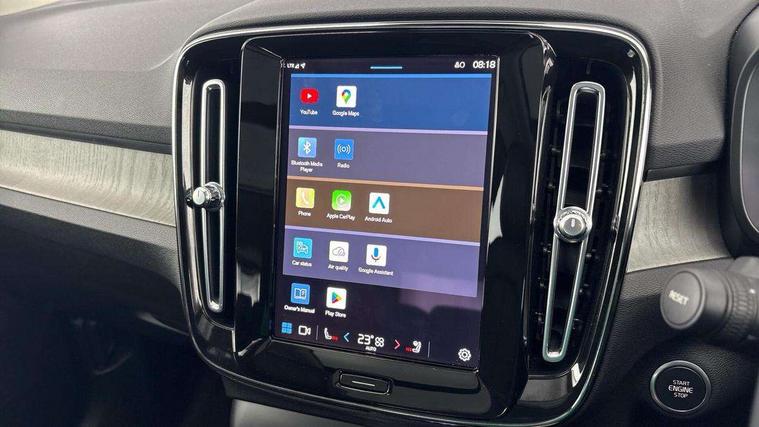 12.3" Progressive Driver Display, 360 degree surround view parking camera with side proximity sensors, 9" centre console portrait touch screen, Adjustable steering wheel force, Bluetooth hands free telephone kit, E-call, Front park assist, Google automatic services - Nav with google maps, apple carplay/android auto, voice recognition with google assistant, Hands free power tailgate, Lane keep assist with driver alert control, Oncoming Lane Mitigation, Rear park assist, Speed limiter, Speed sensitive steering, Wireless/Inductive Mobile Phone Charging, Dynamic chassis, DAB Digital radio, Premium Sound by Harman Kardon, Dolby Pro Logic II Surround Sound, Dirac Unison, 12 speakers/600W and subwoofer, Steering wheel mounted remote controls, Active bending pixel LED headlights with adaptive shadow technology, Active high beam incorporating daytime running lights, Adaptive brake lights with high level LED brake lights, Auto dimming interior mirror, Automatic headlamp levelling, Dark tinted windows for rear door side windows and cargo compartment, Front aluminium tread plates, Front and rear electric windows, Headlight cleaning system, High gloss black front and rear skid plate, High gloss black mesh front grille with high gloss black surround, High gloss black window trim, Home safe and approach lighting, Integrated roof rails in high gloss black, LED front fog lights, Power glass tilt and slide panoramic sunroof with sun curtain, Puddle lights, Rain sensor with automatic windscreen wiper activation, Rear side wing doors, Rear wiper, Roof antenna, Roof spoiler, Visible VIN plate, 12V socket in front tunnel console and luggage compartment, 2-Zone electronic climate control with CleanZone air quality system and pollen filter, 3 seat bench in 2nd row, 3 Spoke tailored steering wheel with chrome trim, 60/40 versatile split folding rear seat, A-pillar parking ticket holder, Ambient front door and instrumental panel lighting, Centre console cupholders and storage, Flexible load floor and grocery bag holder, Floor mats, Front door pocket and front cupholder illumination, Front footwell illumination, Front headrests, Front reading light and theatre lighting, Front seat cushion extensions, Front tunnel pocket, Glovebox bag hook, Heated front seats, Height adjustable passenger seat, Height/reach adjustable steering column, High gloss centre tunnel deco, Illuminated glovebox, Illuminated luggage compartment, Illuminated tailgate, Illuminated vanity mirrors, Integrated waste bin, Isofix attachments on outer rear seats, Load protection net, Multi directional lumbar support, Power driver seat with memory + exterior mirrors memory, Power folding rear headrests, Power passenger seat, Rear armrest / integral cup holders / storage tray, Rear reading and courtesy lights, Single front passenger seat, Underfloor cargo storage, Climate pack without heated front seats - XC40, Driver assist pack - XC40, 3x3 point rear seatbelts, City safety with steering support with Pedestrian + cyclist + front collision warning with full auto brake and rear auto brake, Drivers knee airbag, Dual stage driver/passenger airbags, Electronic parking brake with auto hold, First aid kit, Front and outer rear seatbelt reminder and pretensioners, Front seats SIPS airbags, Hill descent control, Hill start assist, Inflatable curtain, Passenger airbag cut-off device, Power child locks on rear doors, Road sign information display, Run off Road Mitigation, Run off Road Protection, SIPS (Side Impact Protection System), Slippery road and hazard light alert, Stability and Traction Control with Spin control, Engine Drag Control and Corner Traction Control, Tyre pressure monitoring system, Vehicle deceleration control with Anti-lock Brake System, Electronic Brake Distribution and Emergency Brake Assist, Warning triangle, WHIPS whiplash protection system - front, Anti-theft alarm including immobiliser/volume sensor + level sensor, Key integrated remote control central locking + fuel flap with deadlocking system and auto open/close power windows, Keyless drive includes keyless entry and keyless start, Locking wheel nuts,
