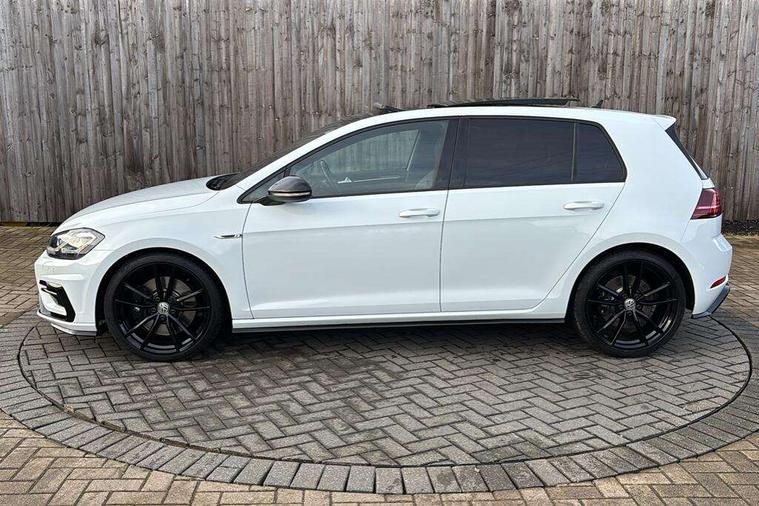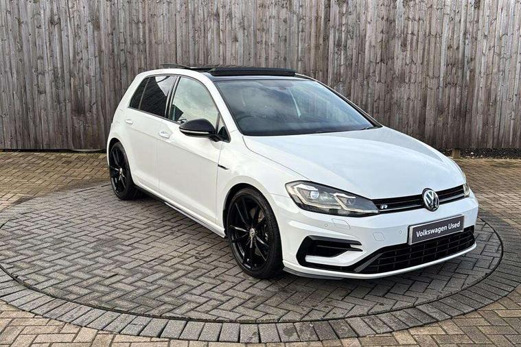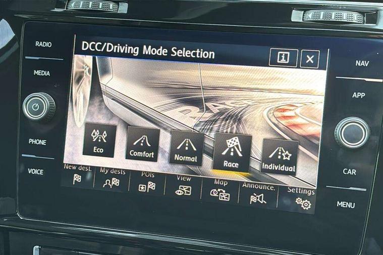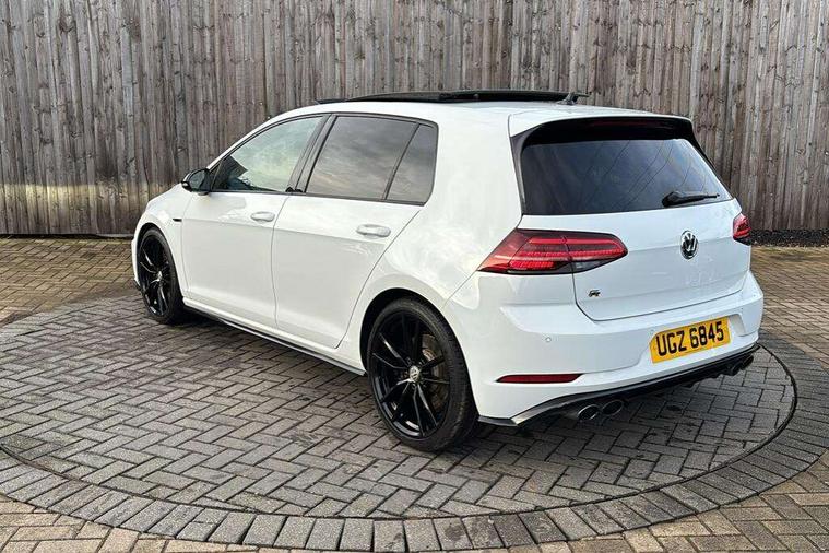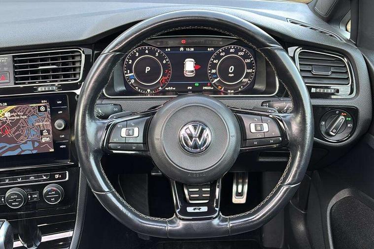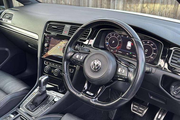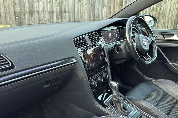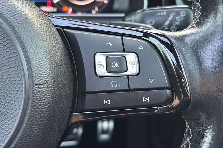 App-Connect, 'Lights On' Reminder warning buzzer, 8" touch screen, Adaptive Cruise Control with pedestrian detection and speed limiter, Bluetooth hands free telephone connection, Brake pad wear indicator warning light, Driver alert system, Driver profile selection, Exterior temperature gauge, Front assistant collision mitigation, Instrument cluster in white, Multifunction computer, Progressive power assisted steering, Rev counter, Trip and service interval display, Ultrasonic front and rear optical and audible parking sensors, Warning buzzer and light for front seatbelts unfastened, Anti-tramp function, Limited slip differential, Lowered sports suspension, CD/MP3/WMA, USB and SD card reader, aux-in, Composition media system, DAB Digital radio, 3D-LED-SBBR with sweeping indicator, Auto dimming rear view mirror, Automatic coming/leaving home lighting function, Automatic headlights, Black rear diffuser, Body colour door handles, Body colour rear roof spoiler, Body colour sports bumpers, Electric front windows, Electric rear windows, Electrically adjustable and heated door mirrors, Heated rear windscreen, Honeycomb radiator grille - black, LED daytime running lights, LED rear lights, Rain sensor, Rear windscreen washer and wiper with interval delay, 12V socket in luggage compartment, 3 rear headrests, 3 spoke steering wheel, 60/40 split folding rear seat, Air conditioning - 2 zone electronic climate control, Bag hook in luggage compartment, Black headlining, Boot lashing points, Chrome pedals, Cooled glovebox, Courtesy light delay, Cover for storage compartment in centre, Dust/pollen filter, Front + rear carpet mats, Front centre armrest with storage box and rear air vents, Front passenger seat height adjust, Front seat back storage pockets, Gearshift paddles, Grab handles, Height adjustable driver's seat, Height/reach adjust steering wheel, Illuminated door sills, Illuminated vanity mirrors, Isofix preparation for 2 rear child seats, Load through provision with rear centre armrest and cupholders x2, Luggage compartment cover, Luggage compartment lighting, Multifunction leather steering wheel with grey stitching leather trimmed gear knob including paddle shift, Overhead storage box, Storage box in luggage compartment, Storage compartments in doors, Sun visors, Variable boot floor, height adjustable and removable, Ambient lighting pack - Golf, Mirror pack - Golf, 3 point height adj front seatbelts + pretensioners, 3 rear 3 point seatbelts, ABS, Automatic post collision braking, Black brake calipers, Child locks on rear doors, Driver/Front Passenger airbags, Driver/Passenger whiplash optimised head restraints, Drivers knee airbag, Electronic parking brake with auto hold, ESP with EDL + ASR, Front and rear curtain airbags, Front passenger airbag deactivation, Front side airbags, Pre crash system, Tyre pressure monitor, Alarm with interior protection, Electronic engine immobiliser, Remote central locking with 2 remote folding keys, Carbon touch decorative inserts, Chrome-plated light switch surround, Piano black centre console, Space saver spare wheel,