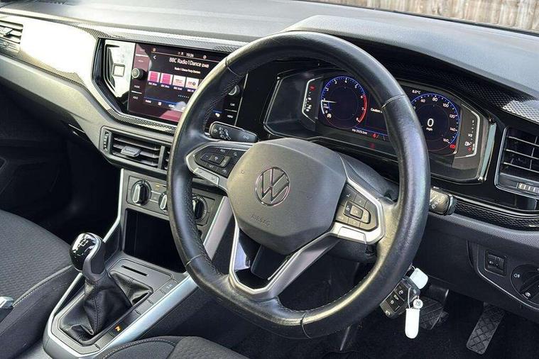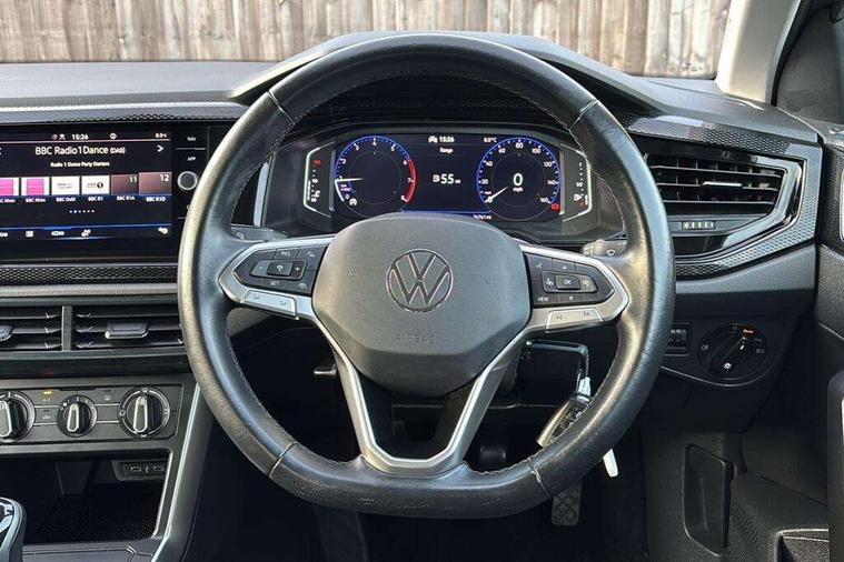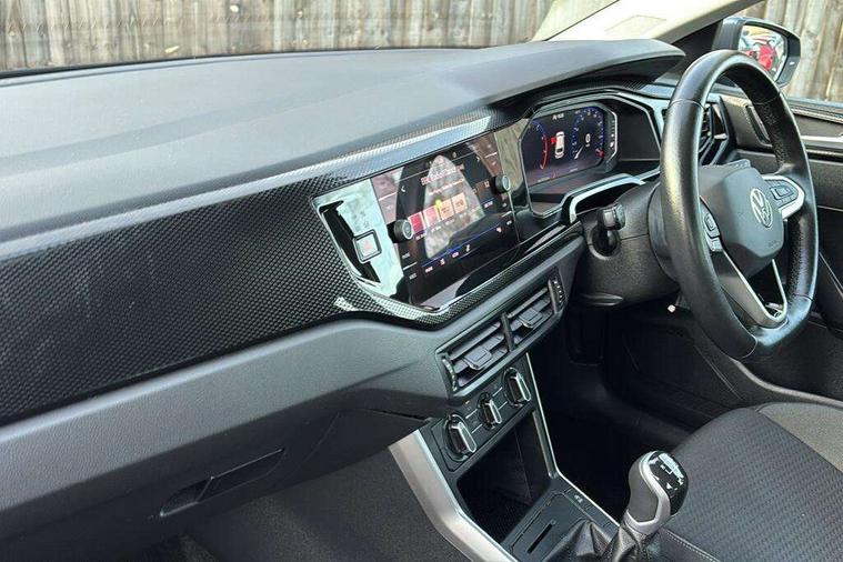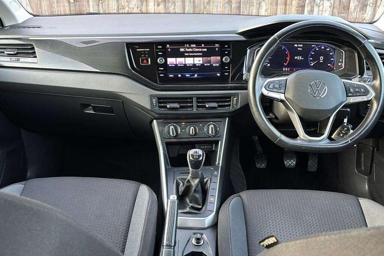 Adaptive cruise control without follow-to-stop and speed limiter, Bluetooth mobile phone interface, Driver alert system, Emergency call service, Front assist system, Power assisted speed sensitive steering, Preparation for We connect and We connect plus, Speedo and rev counter, electronic odometer, trip, service interval display and fuel gauge, Standard rear axle, Travel Assist - Lane keeping system and traffic jam assist, Travel assist including emergency assist, Trip computer, Warning signal and warning light for front and rear seatbelts not fastened, Washer fluid level indicator, Wireless app connect, Front wheel drive, Rear shock absorpion, Start-stop system with battery regeneration (recuperation - energy recovery during braking), DAB Digital radio, Diversity antenna for FM reception, Front and rear 6 speakers, Automatic dimming interior rear view mirror, Body colour bumpers, Body colour door handles, Body colour door mirrors, Electric front windows, Heat insulating darkened glass in side and rear windows, Heat insulating glass windscreen, Power folding adjustable/heated exterior mirrors and front passenger exterior mirror lowering function, Rain sensor, Rear electric windows, Rear fog light, Rear side wing doors, Rear windscreen washer and wiper with interval delay, Third brake light, 12V power socket in centre console, 2 front and 2 rear reading lights, 2 USB-C ports in the front, 2 USB-C charging sockets on the center console in the rear, 3 rear head restraints, 60/40 split folding rear seat and rear seat bench not split, Ceramique headliner, Chrome plated radiator grille inserts, air vent surrounds and light switch surrounds, Door and side trim panel, Driver and front passenger seat height adjustment, Driver/passenger sunvisors with illuminated vanity mirrors, Front centre armrest, Front seat backrest storage pockets, Front standard seats, Handbrake lever handle in leather, Hartley/Thomas cloth upholstery, Isofix child seat preparation easy-fit (for two outer rear seats, and front passenger seat) compatible with I-size, Leather trimmed gear knob, Luggage compartment cover, Luggage compartment floor, Luggage compartment lighting, Multifunction steering wheel, Single front passenger seat, Standard pedal cluster, Light and vision pack - Polo, 3 point height adj front seatbelts + pretensioners, 3x3 point rear seatbelts, ABS, Driver and front passenger airbag with front passenger airbag deactivation, Drivers and front passengers safety optimised head restraints, ESC (Electronic stability control) + EDL (Electronic Differntial lock) and ASR (Traction control), Extended and predictive pedestrian/ cyclist protection, Front curtain and side airbags with center airbag, Front disc brakes, Hill hold control, Manual child lock in rear doors, Rear drum brakes, Single tone horn, Tyre pressure loss indicator, Alarm with interior protection, Anti-theft alarm system with interior monitoring, backup horn, and towing protection, Anti-theft wheel bolts, Electronic engine immobiliser, Lava stone black gloss/matt decorative inserts in dash and front door panels, Low rolling resistance tyres,