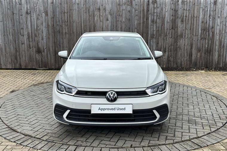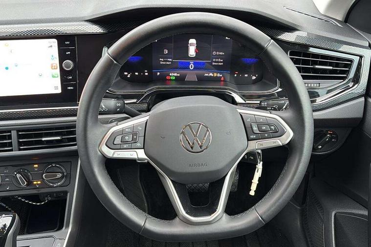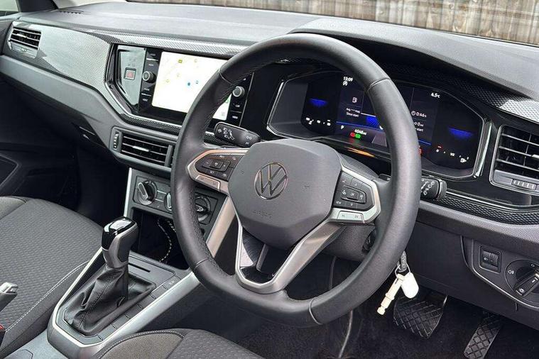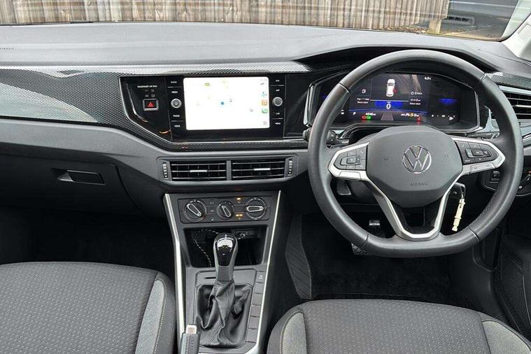 Advanced driver attention and drowsiness monitor, Bluetooth mobile phone interface, Dynamic road sign display, Emergency call service, Mobile phone preparation with inductive charging function, Multifunction front facing camera for distance control, Power assisted speed sensitive steering, Predictive adaptive cruise control without follow-to-stop and speed limiter, Preparation for navigation system with media and internet package, Preparation for We connect and We connect plus, Rear view camera, Speedo and rev counter, electronic odometer, trip, service interval display and exterior temperature gauge, Standard rear axle, Travel Assist - Lane keeping system and traffic jam assist, Travel assist including emergency assist, Trip computer, Warning signal and warning light for front and rear seatbelts not fastened, Washer fluid level indicator, Wireless app connect, Front wheel drive, Rear shock absorpion, Start-stop system with battery regeneration (recuperation - energy recovery during braking), DAB Digital radio, Diversity antenna for FM reception, Automatic dimming interior rear view mirror, Automatic headlight control with LED separate daytime running lights with coming/leaving home function, Body colour bumpers with chrome inserts, Body colour door handles, Body colour door mirrors, Electric front windows, Engine badge deletion, Headlight range adjustment, Heat insulating and laminated safety glass windshield, LED Headlights, LED rear combination lamps, Power folding adjustable/heated exterior mirrors and front passenger exterior mirror lowering function, Rain sensor, Rear electric windows, Rear fog light, Rear side wing doors, Rear tinted glass from B-pillar backwards approx 65% tinted, Rear windscreen washer and wiper with interval delay, Third brake light, 12V power socket in centre console, 2 front and 2 rear reading lights with switch off delay and dimmer, 2 USB-C ports in the front, 2 USB-C charging sockets on the center console in the rear, 3 rear head restraints, 60/40 split folding rear seat and rear seat bench not split, Ceramique roof lining, Chrome plated radiator grille inserts, air vent surrounds and light switch surrounds, Door and side trim panel, Driver and front passenger seat height adjustment, Driver/passenger sunvisors with illuminated vanity mirrors, Front centre armrest, Front seat backrest storage pockets, Front standard seats, Handbrake lever handle in leather, Hartley/Thomas cloth upholstery, Headliner in recycled material, Isofix child seat preparation easy-fit (for two outer rear seats, and front passenger seat) compatible with I-size, Leather trimmed gear knob, Luggage compartment cover, Luggage compartment lighting, Removable luggage compartment floor, Single front passenger seat, Standard climatic zones, Standard pedal cluster, Three spoke leather wrapped multifunction steering wheel with shifting paddles, Light and vision pack - Polo, 3 point height adj front seatbelts + pretensioners, 3 point seat belt for centre rear seat, 3 point seatbelts, outer rear with ECE lable, ABS, Driver and front passenger airbag with front passenger airbag deactivation, Drivers and front passengers safety optimised head restraints, ESC (Electronic stability control) + EDL (Electronic Differntial lock) and ASR (Traction control), Extended and predictive pedestrian/ cyclist protection, Front assist with autonomous emergency braking (for Adaptive Cruise Control ACC up to 130 mph), Front curtain and side airbags with center airbag, Front disc brakes, Hill hold control, Manual child lock in rear doors, Rear drum brakes, Single tone horn, Tyre pressure loss indicator, Alarm with interior protection, Anti-theft alarm system with interior monitoring, backup horn, and towing protection, Anti-theft wheel bolts, Electronic engine immobiliser, Lava stone black gloss/matt decorative inserts in dash and front door panels, 16" Torsby alloy wheels, Low rolling resistance tyres,