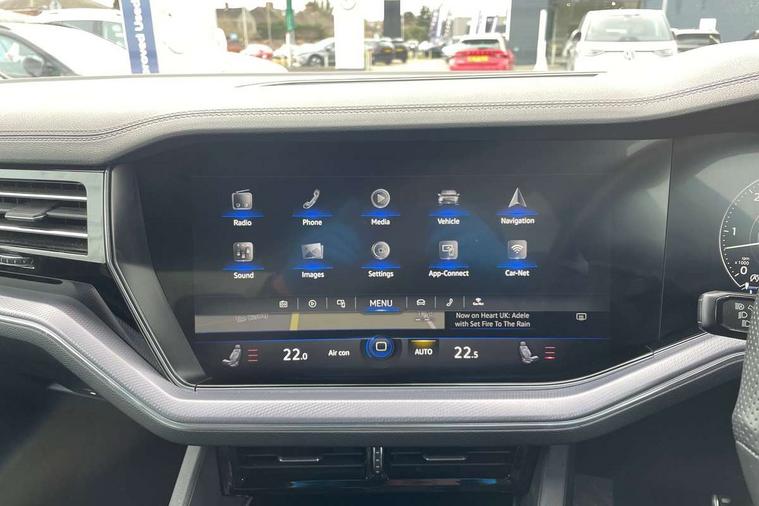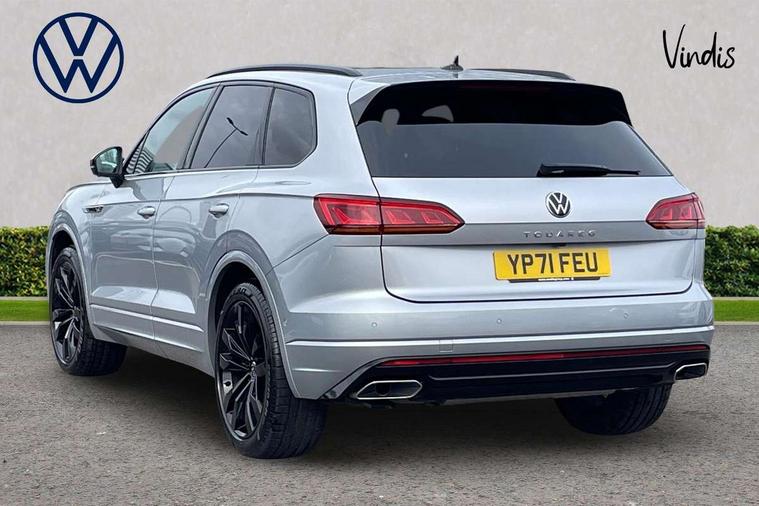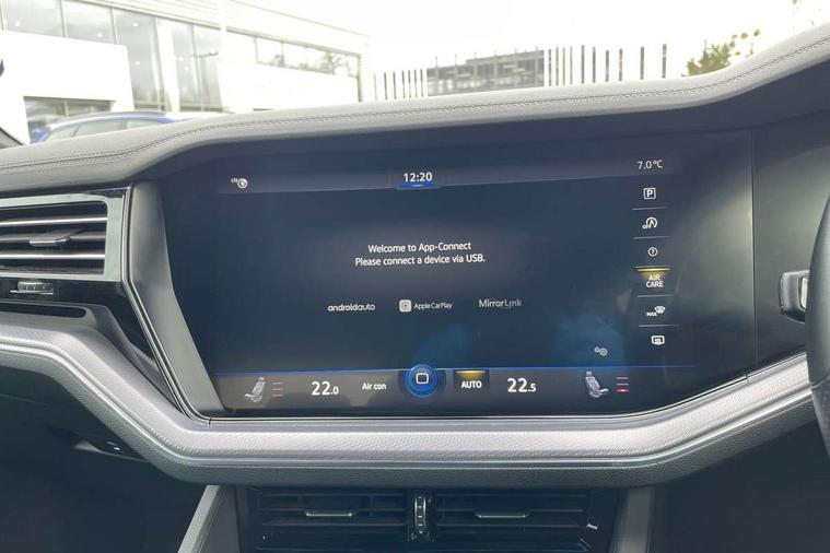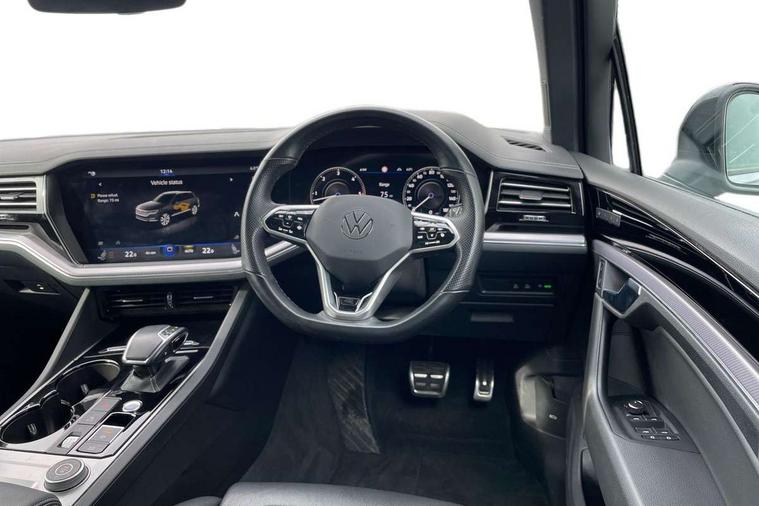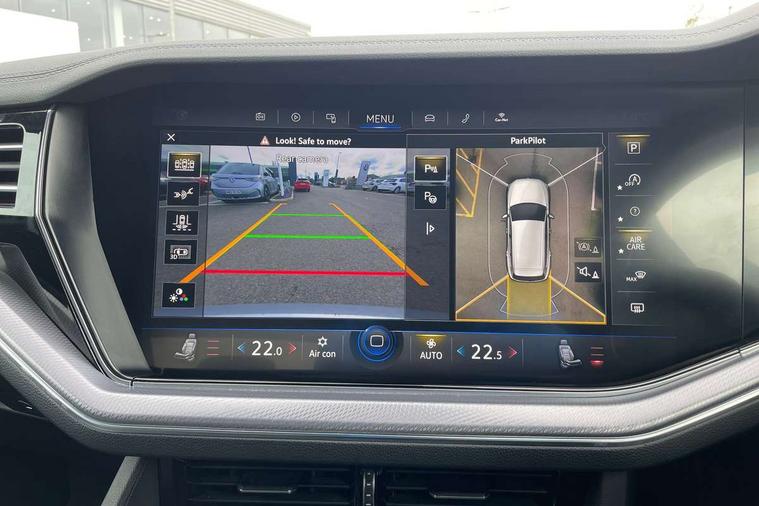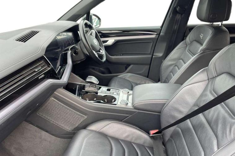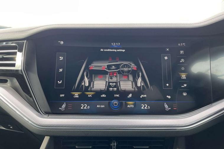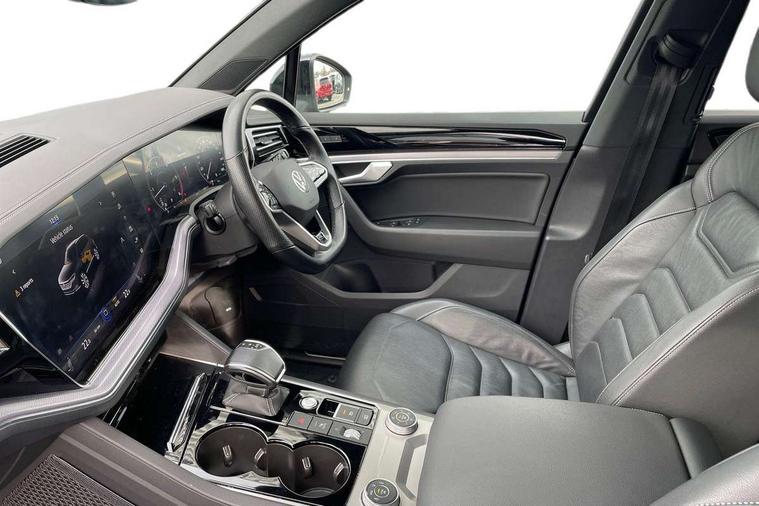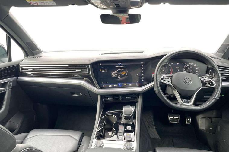 2D/3D map view, ACC - Adaptive cruise control with front assist, forward collision warning, distance monitoring, city emergency brake and speed limiter, Apple car play/Android Auto, Audible and visual fatigue detection system, Bluetooth hands free telephone connection, Car information display, Drive select with Damper control, Driver alert system, Driver profile selection, Dynamic road sign display camera controlled system with visual warning for traffic and road signs, eCall emergency system, Fully electric tailgate + keyless entry and start, Instrument cluster, MirrorLink, Multifunction camera with lane assist, Multifunction computer premium with 7" colour display, One touch indicators with repeat function, Service interval indicator, Speed sensitive power steering, Start/stop system with regenerative braking, Tailgate power latch, Think blue trainer driver tips and journey analysis, Traffic sign recognition, Voice control system, Wireless Smartphone charger, 24 litre AdBlue tank, Torsen limited slip differential, DAB Digital radio, Dynamic navigation based on TMC+, Gesture control for infotainment system, Multi device interface (MDI) with illuminated USB-C connection, Music playback - MP3, WMA and AAC files, SD card slot, Simultaneous pairing of 2 compatible mobile devices, SMS functionality - read, compose and send SMS messages using touch-screen display, Title and cover art display, Volkswagen media control, Adaptive low beam for urban and motorway use, Auto dimming rear view mirror, Automatic coming/leaving home lighting function, Automatic headlights, Black anodised roof rails, Black door mirrors, Black rear diffuser, Black side window surrounds, Black upper and lower grille louvres extending into headlights and radiator grille, Body colour door handles, Body coloured wheel arches, C signature gloss black front air intake, Chromed tailpipe on the left and right integrated in the bumper with trapezoid design, Dusk sensor, Dynamic headlight range control, Electric front tilt/slide panoramic sunroof and fixed rear sunroof, Electrically power adjustable, heated, folding, auto dimming, front passenger exterior door mirror lowering function, Front and rear electric windows, Galvanised body, Gloss black finish B pillar, Gloss black rear diffuser, Headlight washers, Heat insulating darkened glass in side and rear windows, Heated windscreen washer jets, IQ.Light-LED matrix headlight, daytime running light with dynamic cornering light and indicator, LED rear fog light, LED rear number plate lights, Plastic scuff plates in door apertures, Poor weather light, Puddle lights, Rain sensor, Rear side wing doors, Rear wiper, 12V socket in front and rear centre console and boot, 2 Coat hooks on B pillar, 3 rear head restraints, 3 spoke sport heated leather multi-function sports steering wheel with gear shift paddles - generation 2, 4 way adjustable front head restraints, 4 way electric lumbar support for driver and front passenger, 4 zone climate control, 40:20:40 split folding slide/recline rear seat, B pillar vents, Black lower edge of door extending sills, Branded points of interest, Double sun visor for drivier and passenger with LED illuminated vanity mirrors, Electric luggage compartment cover, Folding rear centre armrest with 2 cupholders, Front + rear carpet mats, Front centre armrest with storage box, Gear shift indicator, Height/reach adjust steering wheel, Illuminated air conditioned glovebox, Isofix preparation for 2 rear child seats, Jack and tool kit, Leather trimmed gear knob with gloss black inlay/aluminum trim, Leatherette door trim, LED luggage compartment lighting, Load through provision, Luggage compartment with load lashing rings, Plastic loading edge protection, Rear seat remote release levers, Soul black headlining, Stainless steel pedals, Innovision cockpit pack - Touareg, 3 point front seatbelts with pre-tensioners, ABS, Active bonnet, Automatic post collision braking system, Curtain airbags, Driver/Front Passenger airbags, EBD + Brake Assist, EDL, Electronic parking brake with auto hold, ESC with ASR, Front seat side impact airbags, Hill descent control, Hill start assist, Passenger airbag deactivate switch, Seatbelt warning lamp and buzzer, Three 3 point rear seatbelts, Two tone horn, Volkswagen roadside assistance, Warning triangle and first aid kit, Alarm with interior monitoring in cab, backup horn and towing protection, Child security locks for front and rear doors, Electronic engine immobiliser, Remote central locking, Black decorative trims on the side windows, High gloss black centre console,
