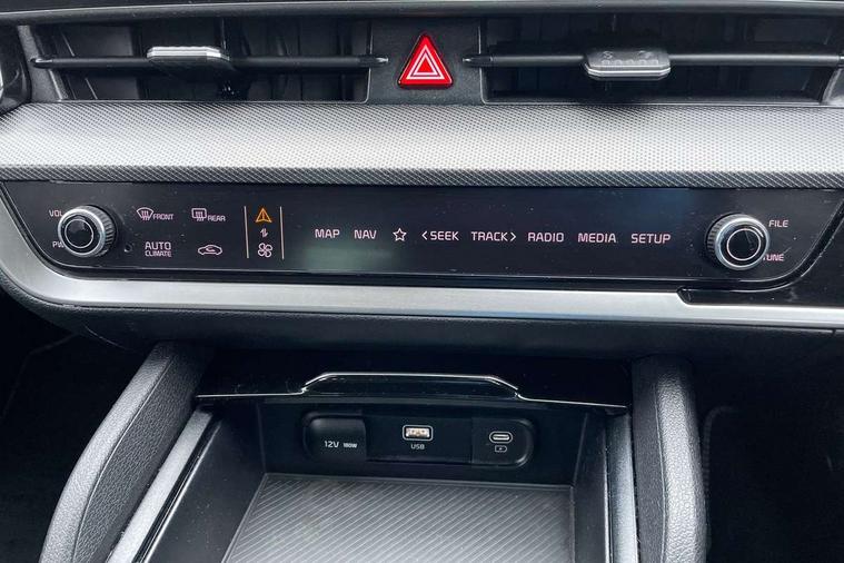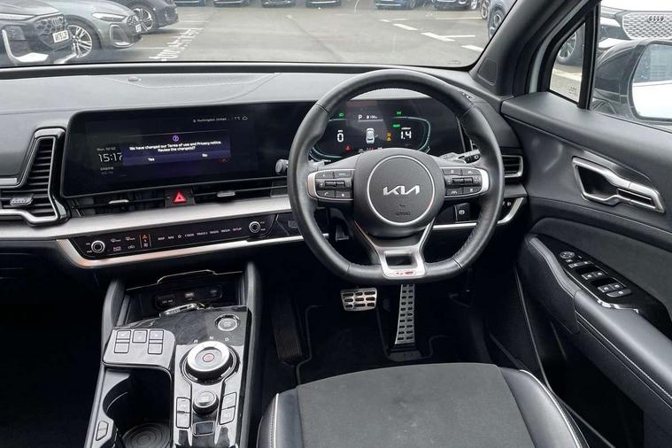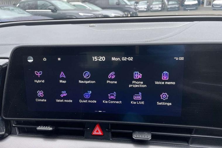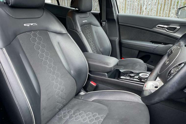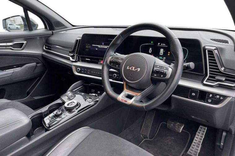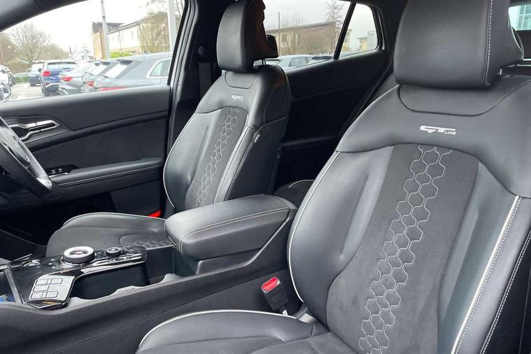 12.3" Display with navigation, 4.2" supervision colour cluster display, Apple car play/Android Auto with voice control, Drive mode selector, E-call, Forward collision avoidance assist (FCA) - city/pedestrian/cyclist/junction covering, Front and rear parking sensors, Highway Driving Assist (HDA), Intelligent speed limit assist, Kia Connect (UVO), Lane Following Assist (LFA), Lane keep assist, Low washer fluid warning, Rear view monitor, Reversing camera system integrated into centre fascia screen, Smart cruise control with stop and go functionality, Speed sensitive power steering, Trip computer, Windscreen washer level indicator, Intelligent Stop and Go, 6 speaker audio system, Bluetooth audio streaming, DAB Radio with MP3, Rear USB port, Steering wheel mounted audio controls, USB C type charging ports on centre console, USB C type charging ports on side of front seats, USB port for connection of a media device, All round electric windows with drivers and front passenger auto up/down function, Automatic headlight control system, Automatic window defogger, Backlite glass heated with timer, Body colour and black bumper with silver accents, Body colour exterior door handles, Body colour radiator upper garnish and door garnish, Electrically adjustable/heated/folding door mirrors with LED indicators, Front and rear chrome skid plates, Gloss black door mirrors, Gloss black radiator grille, Gloss black side sill and wheel arch body mouldings, Glossy black roof rack, High beam assist, Interior electrochromic mirror, LED daytime running lights, LED front fog lamps, LED headlamps (low and high beam - MFR type), LED High mounted stop light, LED rear combination lamp, Rain sensing wipers with aero blades, Rear fog lamp, Rear privacy glass, Rear side wing doors, Rear spoiler, Rear wiper, Satin finished beltline, Silver coloured inserts to bumpers, Tinted rear glass, Trailer stability assist, 12V power socket in front centre fascia and luggage compartment, 2nd row personal lamps, 3 seat bench in 2nd row, 3 x passenger assist grips, 40/20/40 split folding rear seat, All-round height adjustable headrests, Black headlining, Centre console storage box, Cupholders in rear armrest, D-Shaped sports leather steering wheel and perforated inserts with GT-Line logo, Door courtesy lamps, Drink holder at centre armrest, Driver and front passenger side sunvisors with illuminated vanity mirrors, Driver's seat manual height adjust, Drivers seat power lumbar support, Front and rear door storage, Front seat and rear pockets, Front/rear centre armrests, Gear shift indicator, Glovebox illumination, Heated front seats, Heated steering wheel, Interior door lock/unlock function, ISOFIX Child seat top tethers and anchor fixings outer rear seats, Luggage area light, Luggage area load cover, Luggage net with hooks, Metal paint interior door handles, Overhead console lamp, Paddle shift controls, Rear cabin light, Rear coat hooks, Single front passenger seat, Sports pedals, Suede leather upholstery, Three zone climate control, Tilt/telescopic adjustable steering wheel, Ventilation ducts to rear compartment, Active front headrests, All round 3-point seatbelts, Anti-lock braking system (ABS), Dual front side airbags, Dual horn, Electronic parking brake, Electronic stability control with downhill brake control, Front passenger airbag cut-off switch, Front seatbelt pretensioners + load limiters, Height adjustable front seatbelts, Hill start assist control (HAC), Impact sensing auto door unlocking, Multi collision brake assist, Rear door child safety locks, Rear seat alert system, Traction control, Twin curtain airbags, Twin front airbags, Tyre pressure monitoring system, Advanced anti-theft system including immobiliser and alarm, Door deadlocks, Engine Start/Stop Button with Smart Entry System, Locking wheel nuts, Speed sensitive auto door locking, Visible vehicle identification number, Aluminium pattern finish centre fascia and door garnish, 18" GT-Line alloy wheels, Tyre mobility kit,