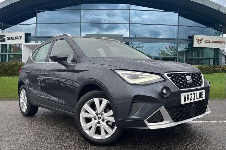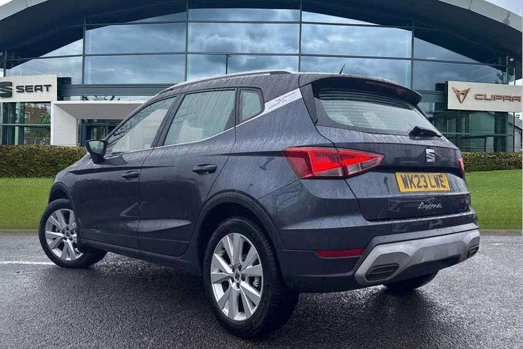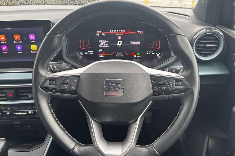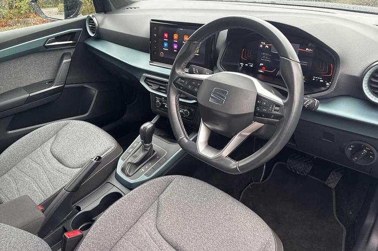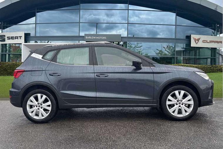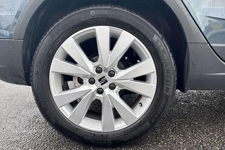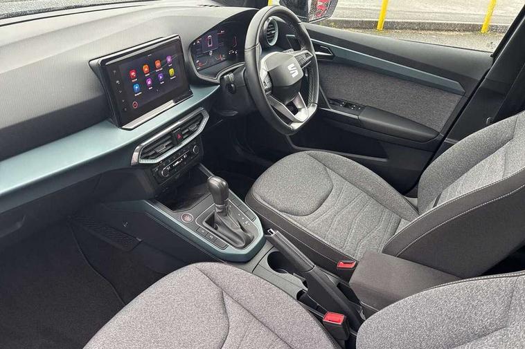 'Lights On' Reminder warning buzzer, 8" Digital cockpit, Digital clock, E-call, Electric speed sensitive power steering, Full Link Smartphone Integration with Mirror Link, Apple Car Play, Google Android Auto with USB Type C cable for Apple and Android compatibility, Lane keeping system, Low fuel warning light, Outside temperature display, Rear parking sensor, RPM counter, Seat connect with safety, service, remote and online, Trip computer, Wireless phone charger, 9.2" colour touchscreen with navigation system, voice control and USB port (type c), Bluetooth interface for hands free and audio streaming, DAB digital radio and AM/FM radio, Steering wheel mounted audio controls, Anti theft roof antenna, Auto dimming interior rear view mirror, Automatic activation of hazard warning lights, Body coloured bumpers, Body coloured door handle inserts, Chrome roof rails and window surrounds, Electric front/rear windows, Electrically adjustable, heated and folding door mirrors, Front fog lights with cornering function and rear fog light, FULL LED automatic headlights with dynamic headlight range control, coming and leaving home, LED daytime running lights, Hidden exhaust pipe, LED rear tail lights and licence plate lights, Protective side mouldings, Rain sensing wipers, Rear side wing doors, Rear spoiler, Rear window wash/wipe, Roof colour door mirrors, Third brake light, Visible VIN plate, Windshield wiper with intermittent control and potentiometer, 2 cupholders, 3 seat bench in 2nd row, 60/40 split folding rear seat, Aircare filter, Black interior roof, Cloth upholstery, Double boot floor, Driver sunvisor with covered mirror + card holder, Dual zone climate control, Flat bottomed leather steering wheel/gear knob/handbrake, Front courtesy light with 2x front and 2x rear reading lights, Front seat back storage pockets, Gear shift indicator, Height adjustable front seats, Height/reach adjustable steering column, Illuminated boot, Instrument lighting with brightness control, Interior ambient lighting, Interior light in footwell, central console and door panel, ISOFIX points in outer rear seats with top tether anchorage points, Leather steering wheel/gear knob/handbrake, Passenger sunvisor with vanity mirror, Single front passenger seat, Storage net on centre console, Two front and three rear height adjustable headrests, Interior chrome pack - Arona, Safety and driving pack (M) - Arona, Storage pack - Arona, 3 point seatbelts on all rear seats, ABS, Active front headrests, Child locks on rear doors, Driver and front passenger airbags with front passenger airbag de activation, front side and curtain airbags, Electronic stability control, Emergency Brake Assist (EBA) and front assist, Front and rear seatbelt reminder, Hill hold control, Multi-Collision braking, Tiredness recognition system, Traction control, Tyre pressure monitoring system, Alarm with back-up horn, Electronic engine immobiliser, KESSY Keyless entry and go, Locking wheel bolts, Remote central locking + deadlocks, Tow away protection, Titan black dashboard, 17" Dynamic alloy wheels,