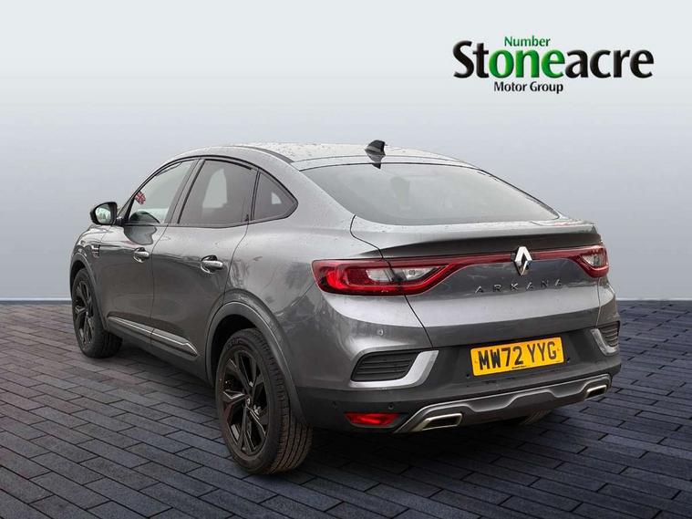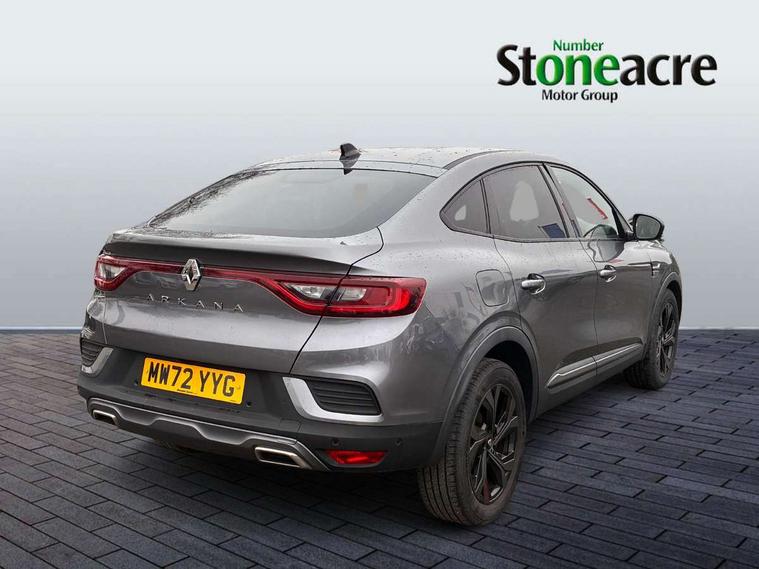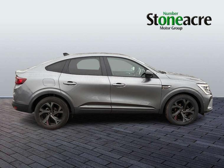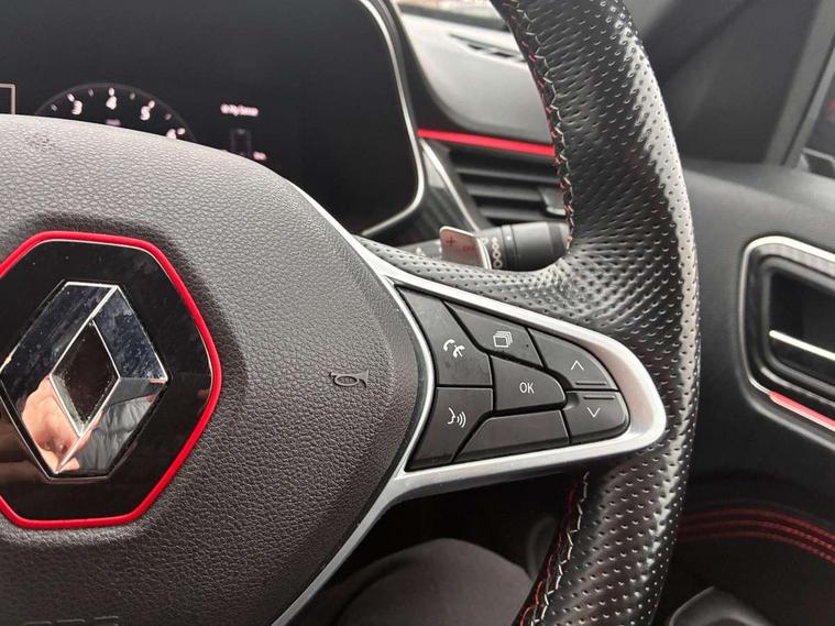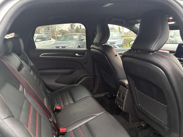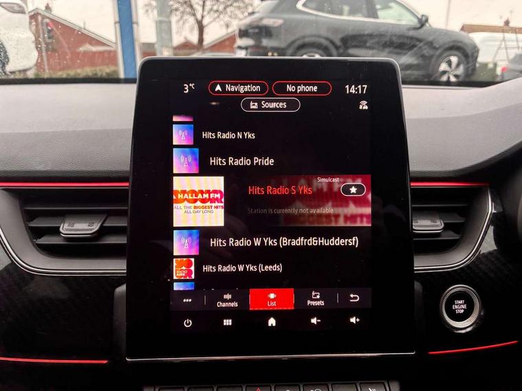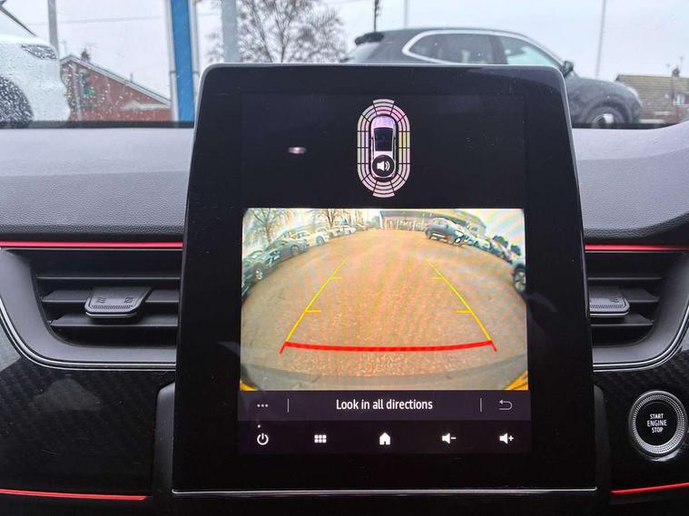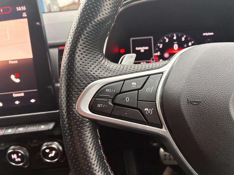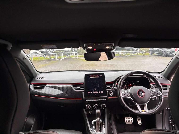 10" TFT Driver information display, Adaptive cruise control and speed limiter, Blind spot warning, Bluetooth system, EASY LINK 9.3" portrait touchscreen with navigation, Google search and traffic information, Eco mode, Front and rear parking sensors, Gear change indicator, Lane departure warning, Lane keep assist, Multi-sense - 3 driving modes and 8 ambient lighting, Rear cross traffic alert, Rear view camera, Renault automatic emergency assist, Smartphone integration compatible with Apple CarPlay and Android Auto, Traffic sign recognition with over speed warning, Trip computer, Variable assistance electric power steering, Wireless phone charger, Arkamys classic sound system with 6 speakers, DAB radio, USB port, 3rd brake light, Auto dimming rear view mirror, Automatic full LED headlights, Automatic headlights, Automatic high / low beam, Automatic windscreen wipers with rain sensor, Black door mirrors, Black side door protection with gun metal insert, Body colour rear boot spoiler, Body coloured bumpers, C-shaped LED front signature lighting (333 high), Chrome decopart on wing (fender molding) with R.S. Line badge, Double chromed exhaust tailpipes elements, Extra tinted rear windows and tailgate, Frameless rear view mirror, Front and rear electric windows, Front bumper with F1 blade and honeycomb front grille, Front driver window with one touch facility and anti-pinch function, Front grille with chrome on upper part, Glossy black door mirror and lower window lining, Gun Metal front and rear skid plates, Heated rear window, R.S. Line badges on front wing and hatch door, Rear windscreen wiper, Shiny black shark fin antenna, 3 seat bench in 2nd row, 60:40 split and fixed base rear seats, Aluminium pedals, Automatic climate control with combined filter, humidity sensor and AQS, Black interior roof lining, Carbon style dashboard, Central console with storage, Front and rear head restraints, Heated front seats, Heated steering wheel, Height and reach adjustable steering wheel, ISOFIX child seat fixing points on rear outermost seats, LED front and rear roof lights, Power adjustable driver and passenger seat with lumbar adjustable drivers seat, R.S. line black suede-leather upholstery with red/grey stiching, R.S. Line perforated leather steering wheel with red/black harmony and R.S. Line badge, Rear air vents, Red inserts on air vents, Single front passenger seat, Variable boot floor, Parking Pack - Hands-free parking & flank protection - Arkana, 3x3 point rear seat belts, ABS+EBA, Active emergency braking system, Distance warning alert, Driver airbag, Driver and passenger front and side airbag deactivation, Driver and passenger side airbags, Driver height adjustable seat belt, Electronic parking brake with auto hold, ESC (Electronic Stability Control), Front and rear no seatbelt warning sound, Front curtain airbags, Front head airbags, Hill start assist, Passenger airbag, Tyre pressure warning light, Anti drill door locks and locking fuel cap, Central door locking, Deadlocking system, Hands free keycard with Keyless access and start, RAID (Renault Anti-Intruder Device) automatic door locking, Rear side wing door and window child locking function (front driver door control panel), Thatcham alarm, 18" Silverstone diamond alloy wheels with red inserts,