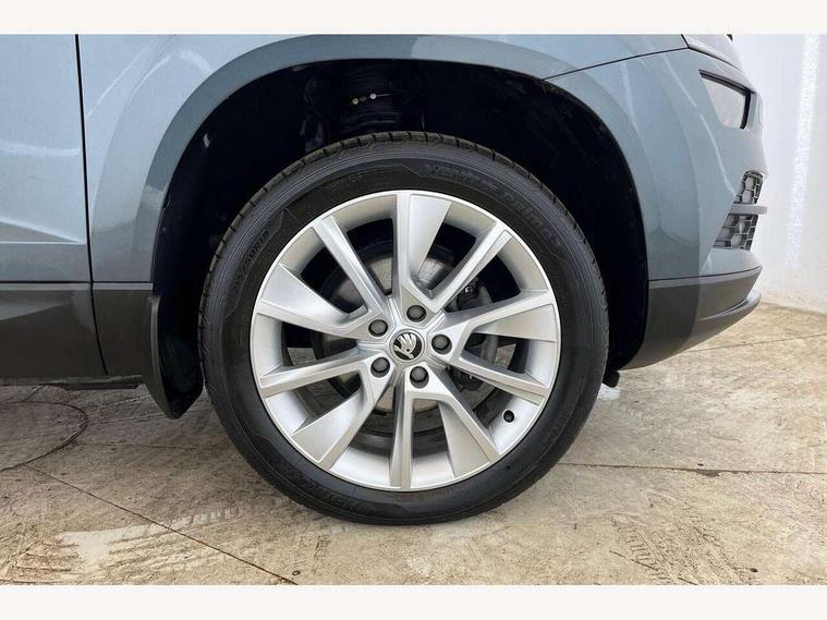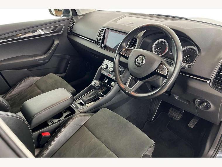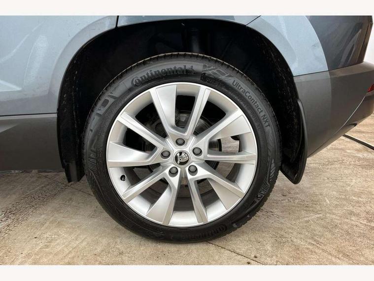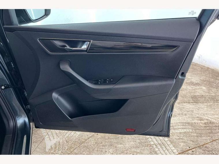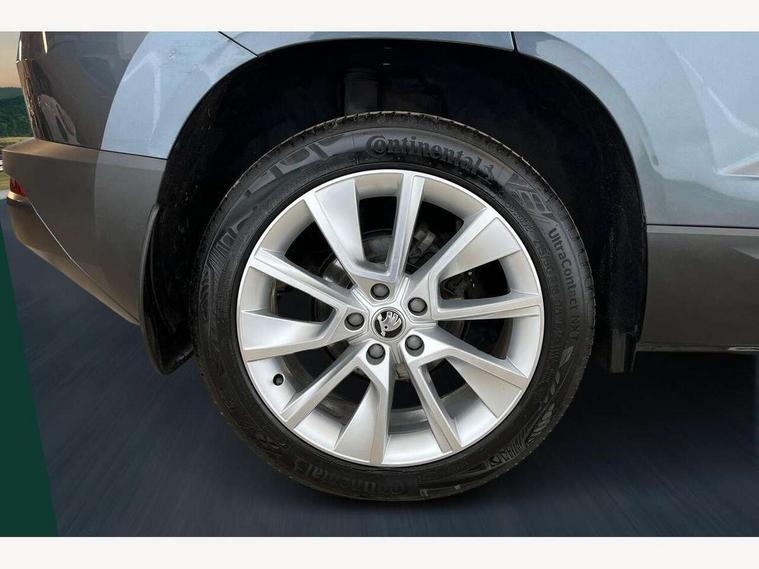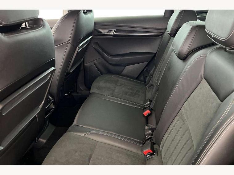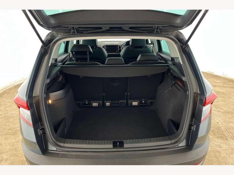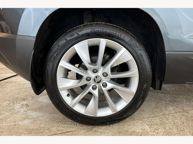 Drive mode selector, Driver alert system, Driver fatigue sensor, Driver profile selection, Multifunction colour trip computer, Outside temperature gauge, Rear view camera, Service interval indicator, Start/stop system with regenerative braking, DAB radio with Bluetooth, SD card slot, USB connection, Acoustic glass, Aero front windscreen wipers with intermittent function, Automatic headlight control system, Black electric window control buttons, Body colour door mirrors and handles, Body coloured bumpers, Electric front and rear windows with child proof lock, Full LED headlights + adaptive front light system + LED daytime running lights and front cornering fog lights, Headlight washers, Heated rear windscreen, LED rear lights with high functionality, Light assistant (coming/leaving home/tunnel light), Privacy glass, Safety reflectors on front doors, Third brake light, 1.5 litre bottle holders in driver and front passenger door panels, 12V socket in boot, 12v socket in front centre armrest with storage compartment and rear air vents, 2 Folding hooks and nets in boot, 2 Front readings lights for driver and passenger, 3 rear height adjustable headrests, 4 foldable roof handles with rear coat hooks, 4 lashing points on luggage floor, Backrest release, Cargo elements in boot, Chrome inner door handles, Dual zone climate control, Folding tables on the front seat backrests, Front head restraints, Front seat and rear pockets, Height adjustable front three point seats belts with tensioners, Height adjustable passenger seat, Height/reach adjust steering wheel, Ice scraper, Illuminated and cooled glovebox, Illuminated luggage compartment, Isofix child seat preparation outer rear, Net programme in boot, Pen holder, Pollen filter, Rear boot cover, Rear reading lights, Rear seats fixed folding and divided 60:40, Removable LED torch in the boot, Retractable parcel shelf attachable to tailgate, Safety vest holder, Storage box in upper central dashboard closed, Storage compartment below the passenger seat, Sunvisors with illuminated vanity mirrors, Textile floor mats, Umbrella under passenger seat, VarioFlex seats with retractable parcel shelf, Chrome roof rails + chrome pack - Kodiaq, Airbags - Front side, head, knee and curtain, Automatic door unlocking in case of crash, Automatic fuel cut off in case of crash, Driver airbag, Electronic parking brake with auto hold function, Emergency rear braking signal, ESC including ABS, MSR, ASR, EDS, HBA, DSR, RBS, MKB and traction control, Front assist radar scanning of the space in front of the car with automatic braking, Hill hold control, Passenger airbag with switch-off function, Pedestrian monitor, Seatbelt reminder signalisation and pretensioner for all seats, Three point seatbelts rear, Two tone horn, Tyre pressure display, Tyre pressure monitor, Alarm with interior monitoring, back up horn and tilt sensor with safe function, Electronic engine immobiliser, Keyless entry and keyless start with safe system, Remote central locking with 2 remote folding keys, Chrome framed air vents, Storage on wheel cover,