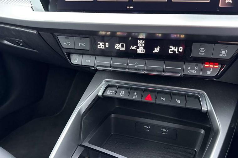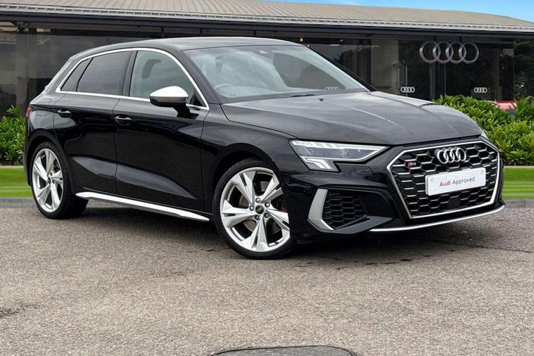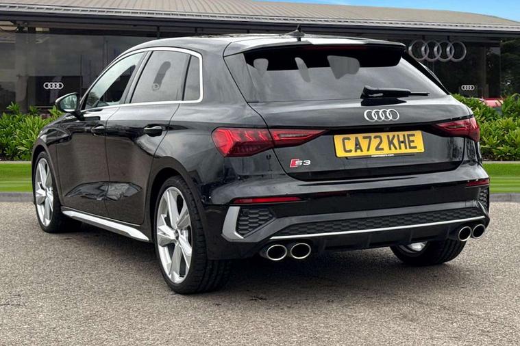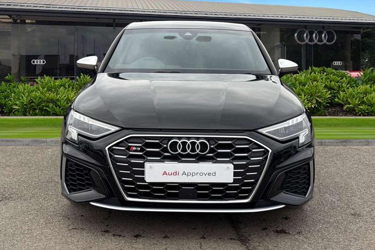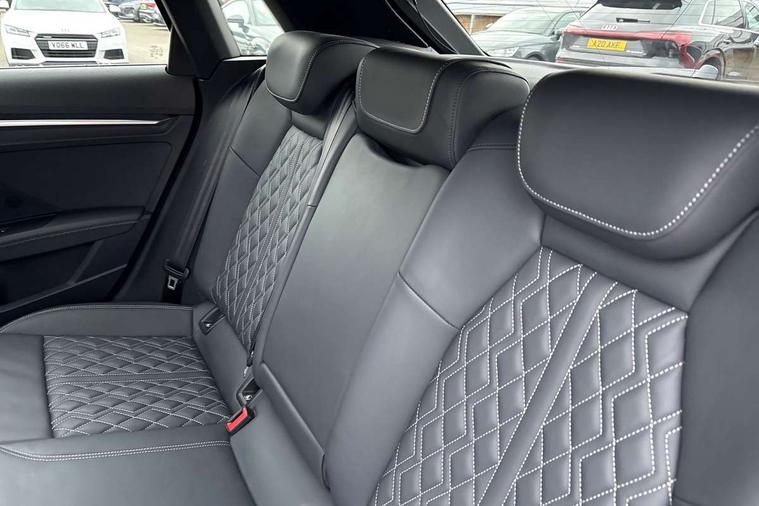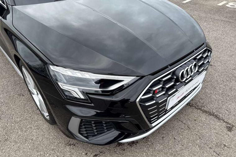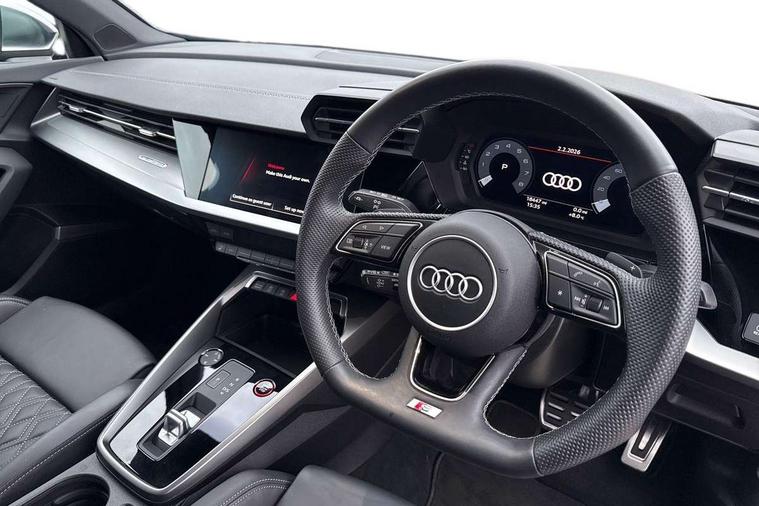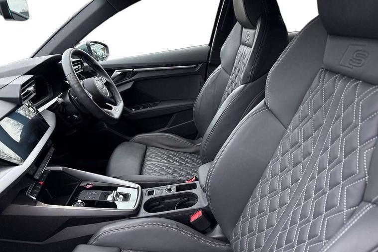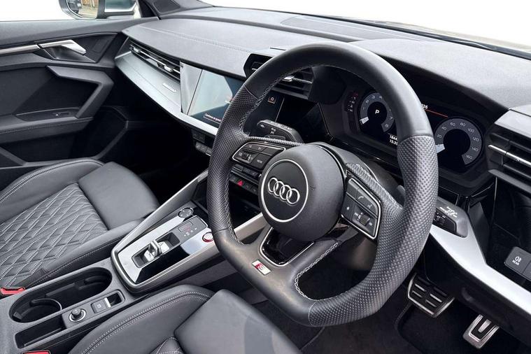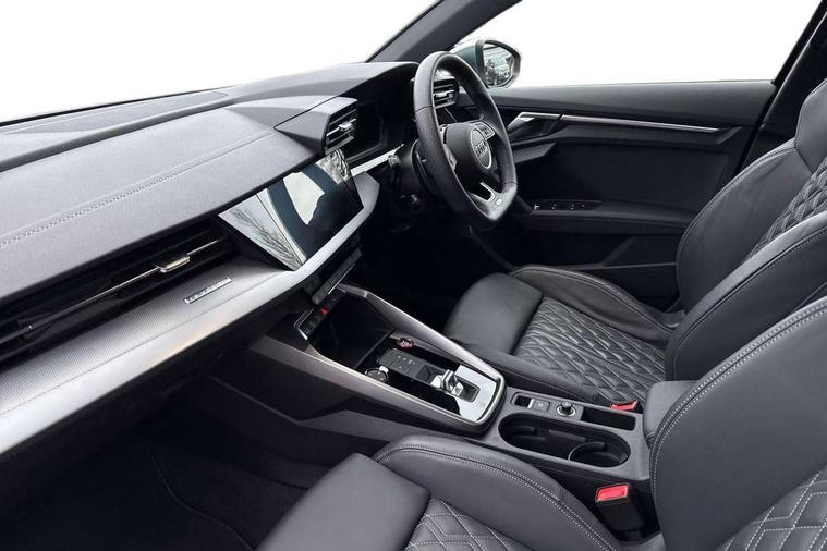 Audi drive select (Auto, Comfort, Dynamic, Efficiency and Individual), Audi smartphone interface, Audi Virtual Cockpit - 10.25" digital and colour instrument cluster, Automatic start/stop system with recuperation, Bluetooth interface, Collision avoidance assistant, e-Call (emergency call), Lane departure warning system, MMI Navigation Plus with high resolution 10.1" colour touch screen display, Progressive steering, Service indicator, Trip computer, Voice control system with natural language interaction, Quattro permanent all wheel drive, S sports suspension, 2xUSB-C connection with data and charging functions, 6 passive loudspeakers, DAB Digital radio, 3rd brake light, Acoustic glass windscreen, Aluminium window trim, Audi Beam uses LEDs to project the Audi S3 logo, Auto dimming frameless rear view mirror, Electrically adjustable/heated/folding/dimming door mirrors with kerb view includes integrated LED indications + kerb view function for passenger side, Front electric windows, Headlight washers, Illuminated aluminium inserts front door sills with S logo, LED daytime running lights, LED headlights with LED rear lights and dynamic rear indicators, Light and rain sensors, Privacy glass - dark tinted rear window, rear door and side windows, Rear electric windows, Rear side air outlets in grained matt black, Rear side wing doors, Rear wiper, 12V socket and storage compartment in front centre console, 3 seat bench in 2nd row, 40/20/40 split folding rear seat bench with cupholder, Black cloth headlining, Dual zone electronic climate control, Front and rear headrests, Front/rear floor mats, Heated front seats, Height and reach adjustable steering wheel, Illuminated vanity mirror, Interior lighting - glove compartment light and right hand side, Luggage compartment floor covering, Manually adjustable front seats, Seat side bolsters, Single front passenger seat, Stainless steel pedals and front footrest in black, Aluminium interior elements pack - A3 Sportback, Design body styling - A3 Sportback, LED interior lighting pack - A3 Sportback, Storage pack - A3 Sportback, 3x3 point rear seat belts, Audi pre sense front, Driver and front passenger airbag with passenger airbag deactivation, Electronic Stabilisation Control (ESC) including ABS, ASR and EDL, First aid kit with warning triangle and 2 safety vests, Front side airbags with head airbags and interaction airbag, Pre-sense front with pedestrian and cyclist detection, Seatbelt monitoring, Tyre pressure loss indicator, Anti theft alarm, Anti-theft wheel bolts, Electronically operated child lock, Immobiliser, Remote control central locking, Accent surfaces in the dashboard and centre console in platinum grey silk effect paint finish, Dark spectrum aluminium inlays,