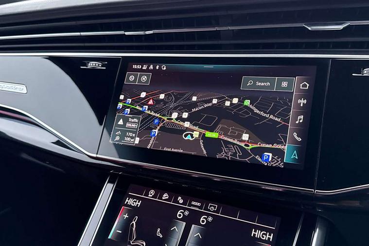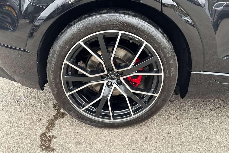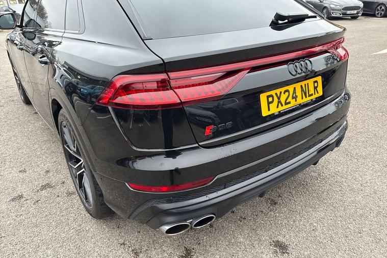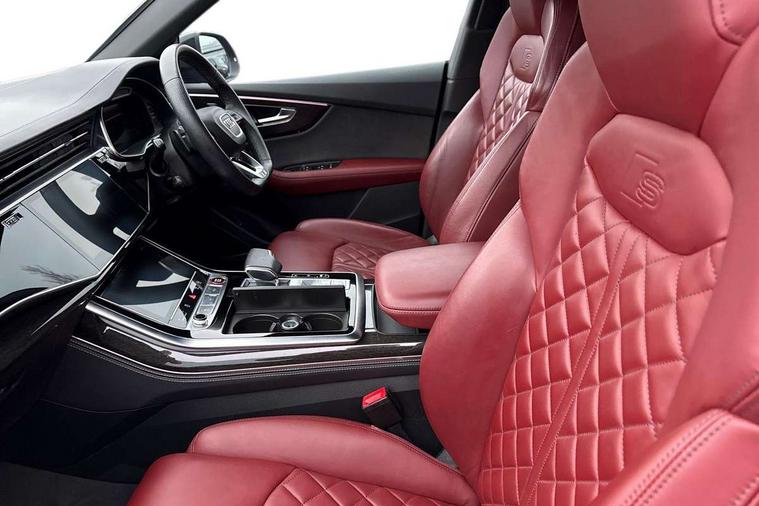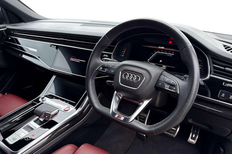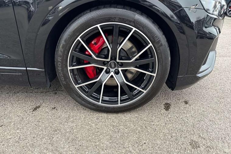 10.1" and 8.6" Dual colour touchscreens, All wheel steering, Audi connect safety and service (e-call), Audi connect with Amazon Alexa Integration, Audi drive select, Audi parking system plus includes 360 degree display with front and rear sensors, Audi virtual cockpit - 12.3" high resolution LCD display with fully customisable instrument cluster, Automatic start/stop system, Electro-mechanical PAS, Low washer fluid indicator, MMI - Multi Media Interface control system, MMI navigation plus with MMI touch, Natural voice recognition, On board computer, Operating buttons in black, glass look with haptic feedback, Power operated tailgate, Rear view camera, Service interval indicator, Smartphone interface includes wireless Apple carplay/Android Auto, 48V Mild hybrid technology, 85 litre fuel tank, Quattro all wheel drive with self locking centre differential, S specific Adaptive air suspension, Audi music interface with 2 USB ports with charge and data functions, Audi sound system with 6 channel amplifier, 180 watt amplifying capacity and 10 loudspeakers including subwoofer, Aux-in socket, DAB Digital radio, 3rd brake light, Acoustic windscreen, Audi Beam uses LEDs to project the Audi logo, Audi HD Matrix LED headlights with dynamic front and rear indicators, Auto dimming frameless rear view mirror, Body coloured bumpers, Coming/leaving home lighting function, Electric front+rear windows, Electrically folding auto dimming/adjustable/heated door mirrors with memory function, LED side indicators and kerb view function for passenger side, Gloss black finish for exterior Audi rings and SQ8 logo, Headlight washers, Heat insulating glass in windshield, LED signature daytime running lights, Platinum grey front spoiler lip and diffuser insert, Privacy glass - dark tinted rear and rear side windows from B-pillar backwards, Rain and light sensors, Rear side wing doors, Rear wiper, S specific dual brach chrome tailpipes on both the left and right, S specific front and rear bumpers, S specific side skirts in matt selenite silver, Side air inlet grilles in matt anthracite black, Trim and underbody protection in matt selenite silver, 3 bench rear seats in 2nd row, 4 zone deluxe automatic climate control, 4-way lumbar support for front seats, 40:20:40 split folding rear bench seat, Black cloth headlining, Comfort front centre armrest, Driver seat memory function, Electrically adjustable front seats, Front head restraints, Front/rear floor mats, Heated front seats, Illuminated door sill trims, ISOFIX child seat mounting for front passenger seat and 2 outer rear seats with top tether child seat mounting for all 3 rear seats, LED interior ambient lighting, Luggage compartment sill protection in stainless steel, Rear centre armrest with 2 cupholders, Rear headrests, Single front passenger seat, Stainless steel pedals, Sunvisors with illuminated vanity mirrors, Upper and lower interior elements in leather, leather door armrests, Valcona leather upholstery + super sports seats with S embossed logo, Anthracite black Styling Pack - Q8, 3 point seatbelts on all seats, Audi pre sense front, Child locks on rear doors, Driver and front passenger, front side and curtain airbags, Electromechanical parking brake, Electronic Stability Control (ESC) including ABS, ASR and EDL, Front passenger airbag deactivation, Hill descent control, Hill hold assist, Predictive pedestrian protection, Seatbelt monitoring, Traction control, Tyre pressure loss indicator, Warning triangle and first aid kit, Anti theft alarm with tow away protection, Anti-theft wheel bolts and wheel loosening detection, Immobiliser, Keyless go with remote central locking, Polished oak trim with grey finish inlay, Tool kit, Tyre repair kit,