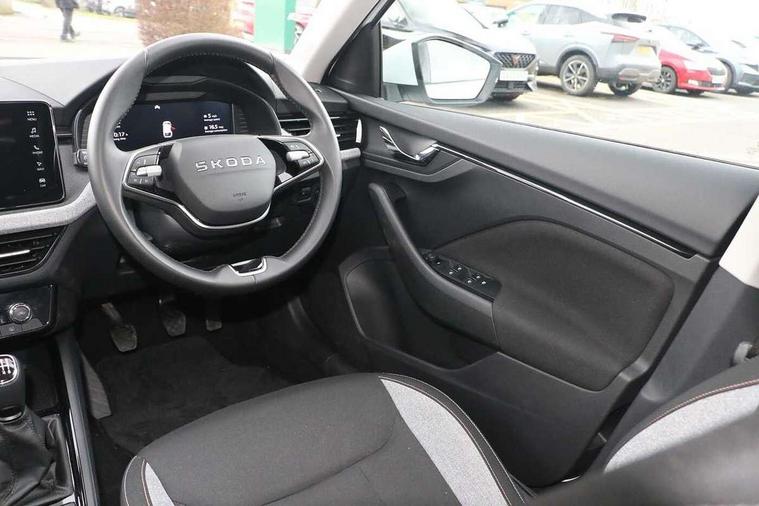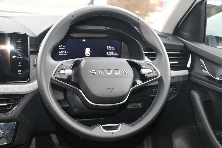 Advanced driver attention and drowsiness monitor, Bluetooth, e-Call (emergency call), Front assist system, PAS, Rear parking sensors, Rear view camera, Speed limiter, Tailgate, Traffic sign recognition, Virtual Cockpit - 10.25" digital display, Voice control system, Wireless smartlink, 4 USB C ports, 8 Speakers, 9.2" Skoda navigation display, DAB radio, Auto dimming rear view mirror, Automatic headlamp activation with Coming home and Leaving home feature, Automatic high/low beam, Body colour bumpers, Body colour door mirrors and handles, Chrome moulding around grille, Front and rear electric windows, Full LED headlights, Heated rear window, LED 3rd brake light, LED brake lights, LED daytime running lights, LED front turning lights, LED high beam, LED low beam, LED taillights, Rear LED fog light, Rear side wing doors, Rear wiper, Tinted windows, Unique dark chrome design logo on alloy wheels, 12V socket in luggage compartment, 3 seat bench in 2nd row, Black / Grey armrest stitching, Black hotstamping, Cargo elements, Chrome inner door handles, Door inserts in satin black, Driver and passenger sun visors with vanity mirror, Dual zone climate control, Front and rear roof lights, Front centre armrest, Front head restraints, Glasses storage in roof liner, Height adjustable driver seat, Height adjustable passenger seat, Ice scraper, Illuminated glove compartment, Inner circulation control with pollen filter, ISOFIX for front passenger seat, Isofix preparation for back seats, Leather gearknob and handbrake lever, Loft cloth upholstery, Luggage net under rear parcel shelf, Manual lumbar support for front seats, Net package and top tether hooks in boot space, Pearl grey ceiling, Pocket on the back of both front seats, incl. mobile phone pockets, Single front passenger seat, Skoda lettering on steering wheel, Textile floor mats, Third rear headrest, Ticket holder, Top tether for front passenger seat, Umbrella in driver's door, 3x3 point rear seatbelts, ABS, Child locks, Curtain airbags and front side airbags, Disc brakes, Driver and front passenger airbags, ESP, Hill hold control, Manual leather parking brake, One tone horn, Passenger airbag switch off function, Seatbelt reminder for driver and front passenger, Tyre pressure monitoring system, Anti theft alarm system with interior monitoring, backup horn and towing protection, Anti-theft wheel bolts, Remote central locking with 2 remote folding keys, SAFE function for remote central locking, Decord pad, door inserts Kota uni,