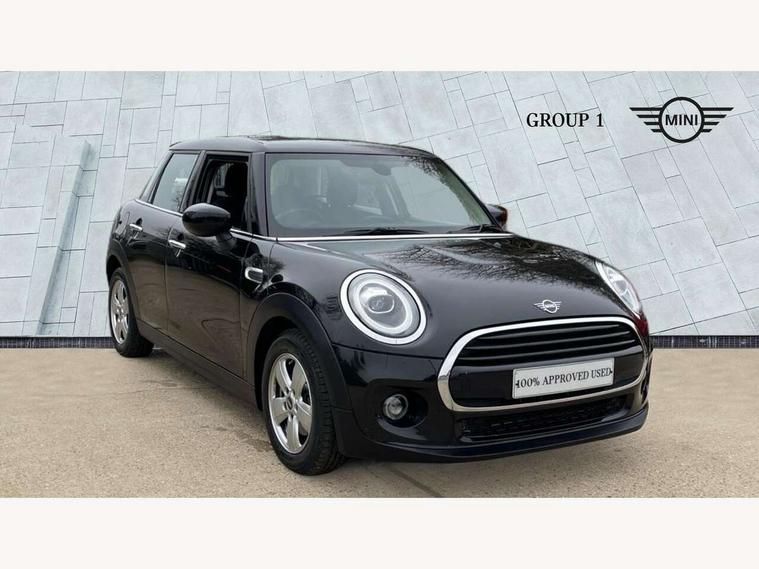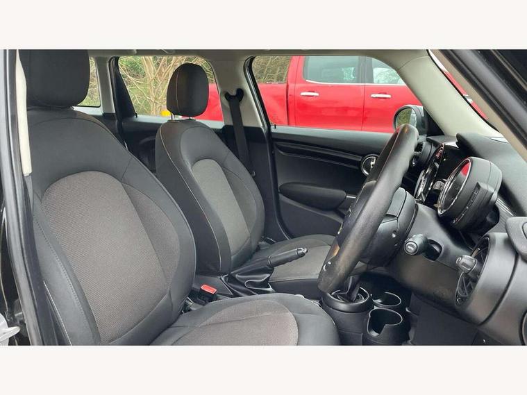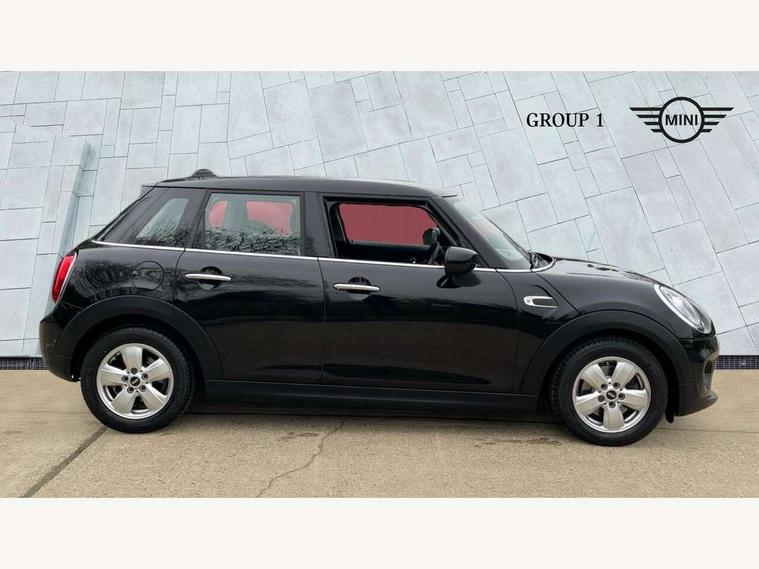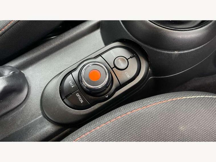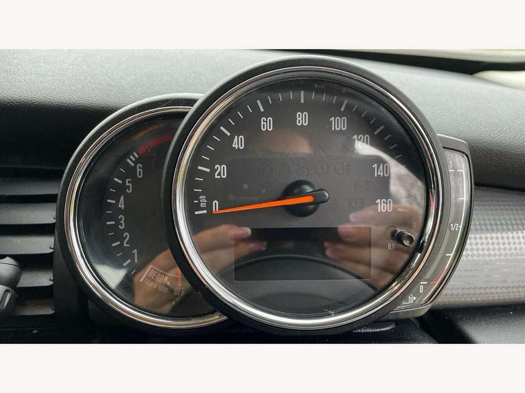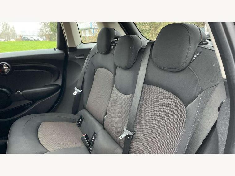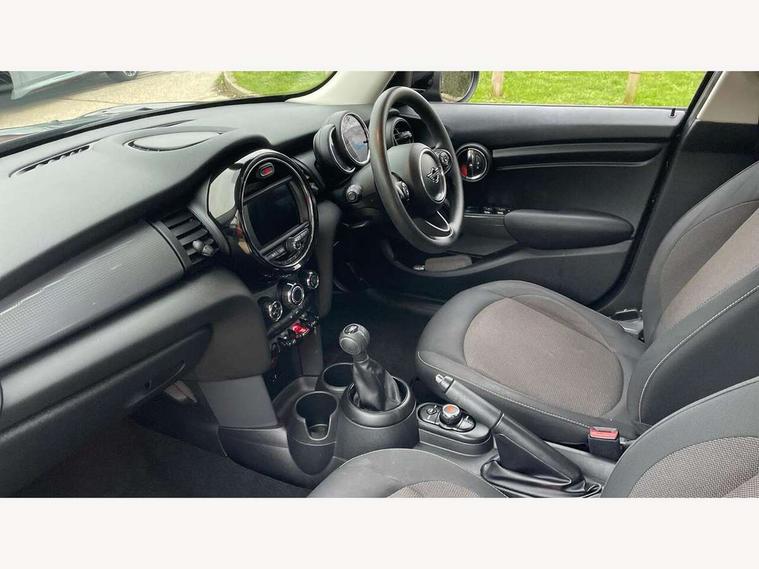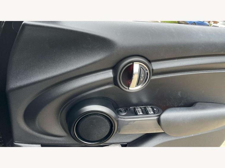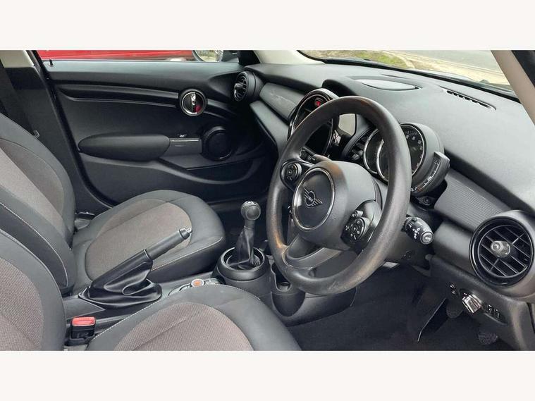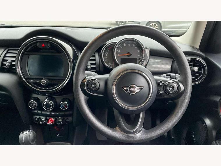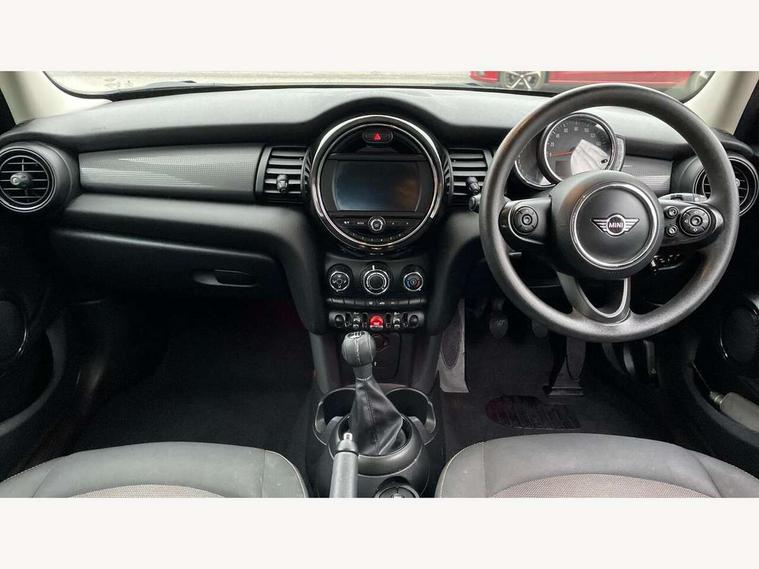 Automatic start/stop function with brake energy recuperation, Compatible mobile phone bluetooth with audio streaming, Electro-mechanical speed dependant steering assistance, Instrument cluster, Mini E-call, MINI TeleServices, On board computer, Service interval indicator, Double Vanos system, Fully variable valve control, Gear change indicator display, High precision injection, 6.5" touchscreen with LED ring, FM tuner and DAB digital radio, Automatic headlight activation switch, Body colour fuel filler cap, Chrome border high gloss black slats radiator grille, Dynamic brake lights, Electric front+rear windows, Heated rear window, Heated windscreen washer jets, LED headlight with closed ring and daytime driving lights, Left exhaust tailpipe with chrome finisher, Metal door sill strips with MINI imprint, Model logo Cooper on right of tailgate, Rain sensor window wipers, Rear fog lights, Rear LED lights with union jack design, Rear window wiper, Side scuttle panel with integrated indicator, Sun/heat protection glass, White indicator lenses, 12V Accessory socket in centre console, 4 lashing eyes in luggage compartment, 60/40 split folding rear seat, Carbon Black colour line, knee roll and door armrests, Chrome interior highlights, Colour line - Carbon black, Cupholders, Front and rear head restraints, Front and rear isofix with front passenger airbag deactivation, Glove compartment, Height and length steering column adjustment, Interior lighting with 12 basic colours selectable via toggle switch in roof, Leather gearshift lever and handbrake gaiters, LED reading lights, vanity mirror lights, front foot well light and spotlight on front seats, Manual air conditioning, Mechanical seat adjustment, driver seat height adjust, forward/back and front seats backrest, Mini logo projection on floor from drivers exterior mirror, Multifunction steering wheel, Satellite grey headlining, Storage compartments in doors, Sunvisors with vanity mirrors, 3 point seatbelts on all five seats, 6 Airbags - front, side, head and seat belt tensioners, Anti-lock braking system (ABS), DSC - Dynamic Stability Control, Front and rear disc brakes, Hill start assist, Single tone fanfare horn, Tyre pressure monitoring system, Alarm system with tilt sensor, monitoring doors, bonnet interior and tailgate, Electronic vehicle immobiliser, Start/stop toggle with keyless go, Tool kit, Tyre repair kit,