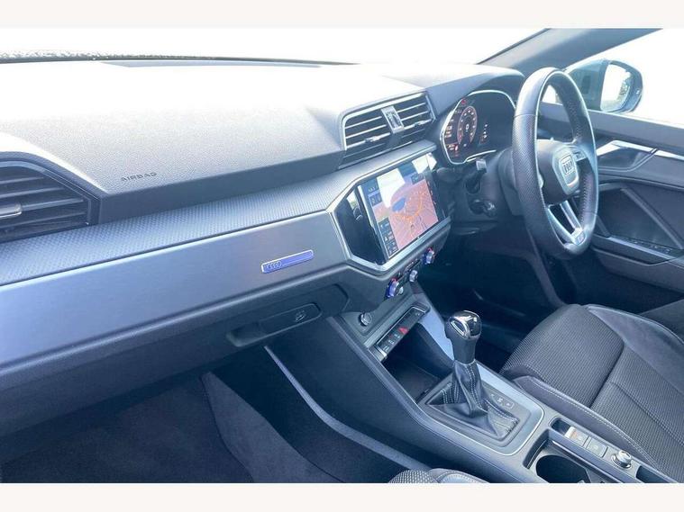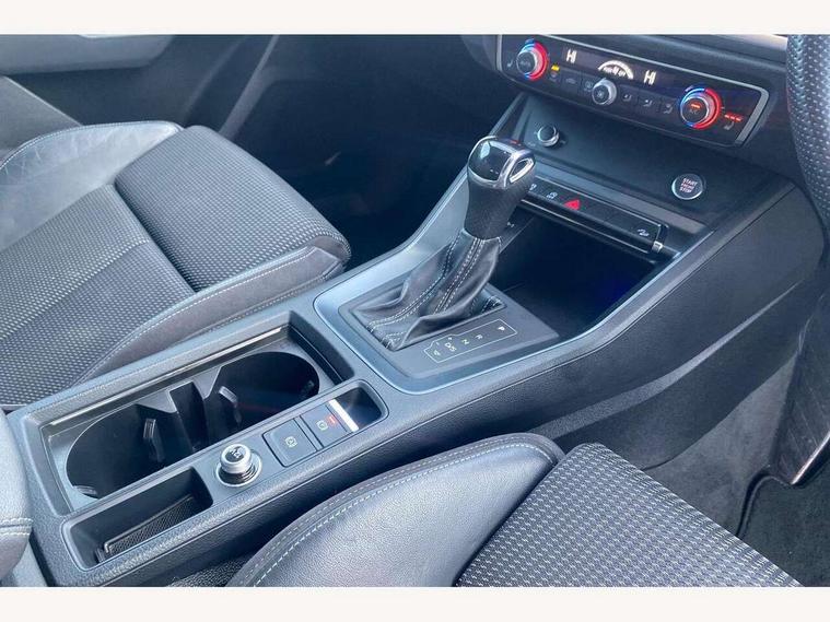 Audi connect safety and service (e-call), Audi drive select, Audi lane departure warning, Audi side assist, Audi smartphone interface, Audi Virtual Cockpit - 10.25" display, Bluetooth interface, Camera based traffic sign recognition, MMI Navigation Plus with high resolution 10.1 inch touchscreen colour display, Power operated tailgate, Progressive steering, Service interval indicator, Start stop system with recuperation, Voice control system with natural language interaction, Diesel particulate filter, Sports suspension, 1 x USB type C and 1 USB type A charging points, 6 passive loudspeakers, DAB digital radio module, Acoustic windscreen, Aluminium window trim, Auto dimming frameless rear view mirror, Diffuser grille in grained matt black, Diffuser trim in selenite silver, Electrically folding, adjustable and heated door mirrors with integrated LED side indicators and kerb view function for passenger side, Front and rear electric windows, Front fog lights, Front side air inlets in selenite silver, Front underbody protection in manhattan grey paint finish, Grille surround in aluminium silver matt, High gloss black finish B and C pillars, LED headlights with LED daytime running lights and dynamic rear indicator, LED rear lights, Privacy glass dark tinted rear and rear-side windows (from B-pillar backwards), Radiator grille in titanium black with inlay in matt aluminium silver, Rain and light sensors, Rear underbody protection in matt black, S line badges on front wings, Side skirt insert in matt Platinium grey, 12V socket in rear centre console, 40:20:40 folding with manual adjustment for 60:40 forwards/backwards position and backrest angle, Adjustable rear seat bench/backrest with centre armrest and cupholder, Black cloth headlining, Dual zone climate control, Front and rear black floor mats with contrast stitching, Front and rear headrests, Front and rear roof module including reading lights, Front centre armrest, Glove compartment lighting, Illuminated door sill trims with S logo, ISOFIX child seat mounting and Top Tether with front passenger airbag deactivation, Luggage compartment light, Manual front seats with height adjustment, Perforated leather gearknob, Stainless steel luggage compartment sill finisher, Stainless steel pedals, Non smoking pack - Q3, 3x3 point rear seatbelts, 6 airbags - Driver, front passenger, curtain and side windows, Electrically operated child locks on rear doors, Electromechanical parking brake, Electronic stabilisation control including ABS, ASR and EDL, Hill descent control, Hill hold assist, Pre sense basic, Seatbelt monitoring, Tyre pressure warning, Warning triangle and first aid kit, Anti theft alarm, Anti theft wheel bolts, Audi pre-sense front with pedestrain and cyclist recognition, Remote central locking, Dark matt brushed aluminium inlay, Leatherette door armrest, MMI touch colour display in glass look, black with surround in aluminium look,