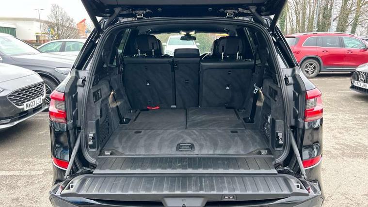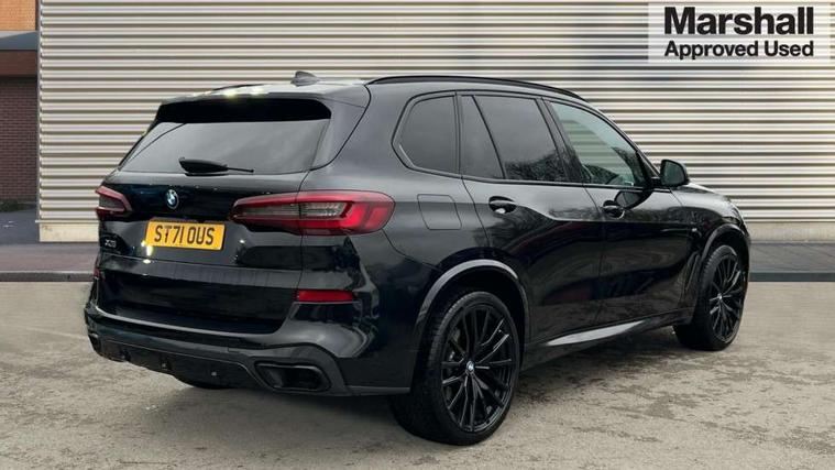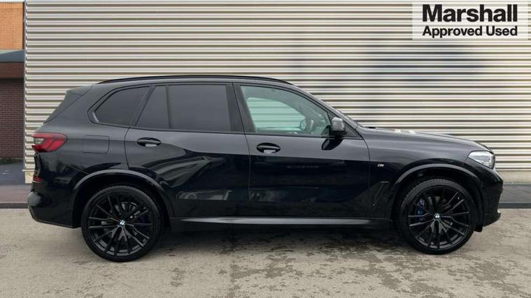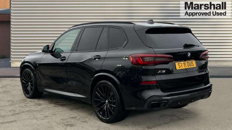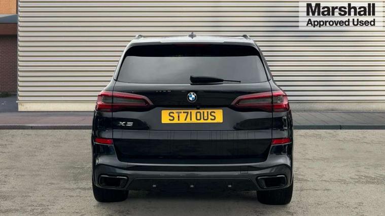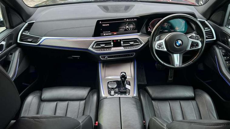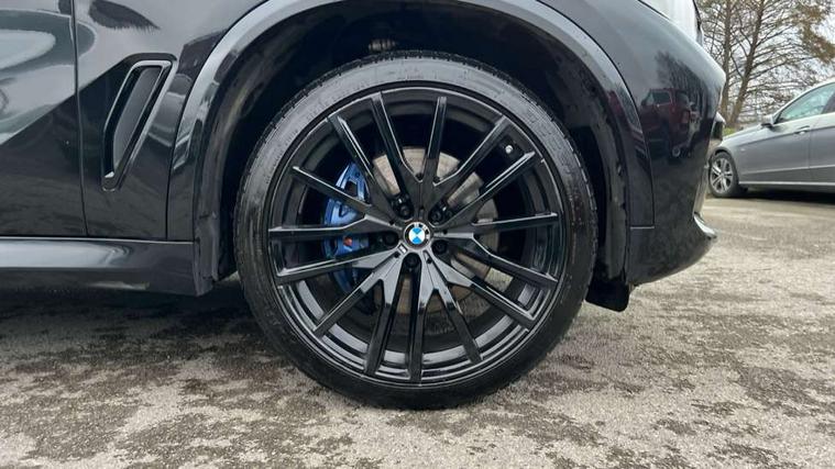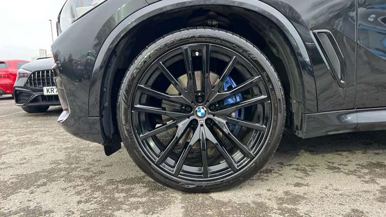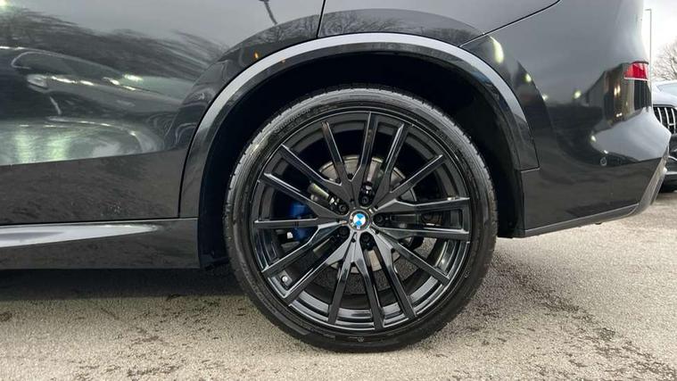 20GB hard disc drive (HDD) memory, Active guard plus, Attentiveness assist, Automatic tailgate with top hinged section open and manual bottom hinged section, BMW ConnectedDrive online services, BMW digital live cockpit professional - 12.3" digital instrument panel and 12.3" CID, with touch/voice command, BMW legal emergency call, BMW Teleservices, Brake force display, Brake pad wear indicator warning light, Cruise control with brake assist, Enhanced bluetooth with wireless charging, Front/rear park distance control, iDrive touch controller with shortcut buttons, Lights on warning, Oil sensor for level and grade, On board computer inc. average speed, fuel consumption, liquid crystal Info display, journey computer, outside temperature display, personal profile, Service interval indicator, Speed limit info display, Speed limiting function, Wi-Fi hotspot, 48V Mild hybrid technology, Adaptive 2-axle air suspension, Common rail technology, Diesel particulate filter, Double wishbone front axle, Drive performance control with ECO PRO comfort + sport mode, Eight speed steptronic sport automatic transmission and gearshift paddles on the steering wheel, Safety battery terminal clamp, Variable vane geometry, DAB Tuner enables digital radio reception, Favourite buttons, Hi-Fi loudspeaker system, USB connection, USB type A 1.5A in cupholder, USB Type C 3A in centre armrest, Active Air Stream kidney grille with high-gloss chrome, Adaptive air flap control bar in high-gloss black, Automatically dimming rear view mirror, BMW Individual high gloss black shadow line roof rails, Body colour bumpers, Body colour door handles, Dynamic brake lights with LED technology, Exhaust tailpipes - single, left and right with Chrome finisher, Follow me home headlight function, Front and rear electric windows with open and close fingertip control, anti trap facility and comfort closing, Heated windscreen washer jets, High beam assistant, High gloss black outer and central air intakes on front bumper with pearlescent chrome finish, High gloss black Side elements, LED daytime running lights, LED rear lights, M aerodynamic body styling, M designation on left and right front side panels, Pearlescent chrome front grille bars, Rain sensor with automatic headlight activation and windscreen wiper control, Rear side wing doors, Satin aluminium side window graphic, Third brake light in rear spoiler, Variable intermittent rear wash/wipe, Welcome light carpet, X5 on left tailgate, xDrive designation on right tailgate, 12V - Power sockets with 2x centre console and 1x luggage compartment, 3 seat bench in 2nd row, 40:20:40 split folding rear seats, Ambient interior lighting with 6 pre-designed selectable lights including dynamic function, Centre and rear interior light, Child seat ISOFIX attachment with rear outer seats includes top tether, Compartment in front of cupholder, Electric front seat adjustment with driver and front passenger memory function, Electrical steering column with adjustable height and length with activation and control on the steering column, Foldable rear centre armrest with 2 cupholders and storage compartment, Front and rear cupholders x 2, Front and rear door pockets, Front and rear door sill inlays with illuminated BMW M designation, Front and rear side armrest integrated into door trim, Front footwell lights, Front reading lights, Light inside glove compartment, Lockable glove compartment, Luggage compartment floor panel with integral storage tray, Luggage compartment lighting, M leather steering wheel, M specific key, M specific steering wheel, M specific velour floor mats, Make-up mirror lights, Multifunction controls for leather steering wheel, Multifunctional hooks, Rear head restraints, Seat back with flap pocket, Securing rings in luggage compartment, Single front passenger seat, Storage bins on all doors, Storage tray and compartment with cover in centre console, Sunvisors with illuminated vanity mirrors, Toolkit located in luggage compartment, Connected Package Professional - X5, Expanded exterior mirror pack - X5/X5 M, Non-smokers pack - X5, Airbags - driver/front passenger, rear and side, first and second row seats head airbags, front passenger seat airbag deactivation + knee airbag, Anti-lock braking system (ABS), Automatic Stability Control (ASC), Brake drying, Brake energy regeneration, Brake fade compensation, Braking pre-tensioning, Cornering brake control (CBC), Crash sensor activating central locking release, hazard warning lights, fuel cut off, interior lighting + activation of safety battery terminal clamp, Deformation zones - front and rear with door reinforcements and bumpers up to 2.5 mph, DSC - Dynamic Stability Control, Dynamic brake control, Dynamic Traction Control - DTC, Electromechanical parking brake with automatic drive away release and auto hold function, Electronic brake force distribution, Front and rear seatbelts with seatbelt stopper, seatbelt tensioner for front and outer rear seats and belt force limiter, Front head restraints with anti-whiplash, Height adjustable front seatbelts, Hill start assistant, Integrated brake system, M Sport braking system in blue high gloss + blue painted brake calipers with M designation, Mechanical child proof lock on rear doors, Passive protection for pedestrians, Seat occupancy detection for driver and passenger side, Side impact protection, Three 3 point inertia reel seatbelts, Two tone horn, Tyre pressure monitoring system, Ventilated front and rear disc brakes, Warning triangle and first aid kit, Closing system with central locking, Driver and front passenger door centre lock switch, Locking wheel bolts, Thatcham 1 alarm system with remote control and engine immobiliser, Start/stop toggle diamond shaped trim finisher in pearl chrome,
