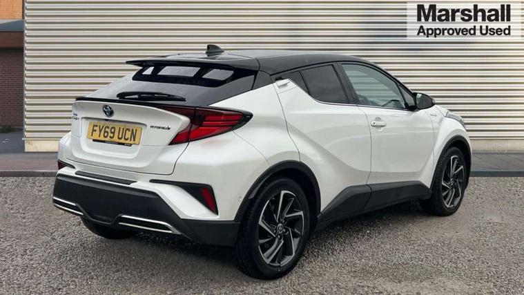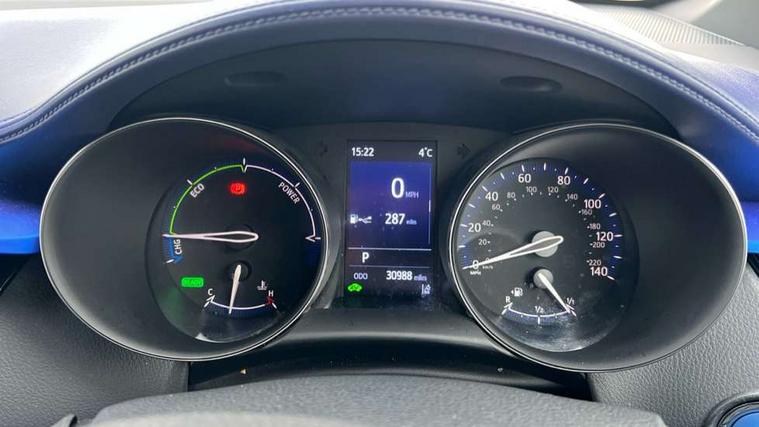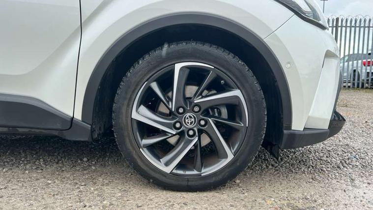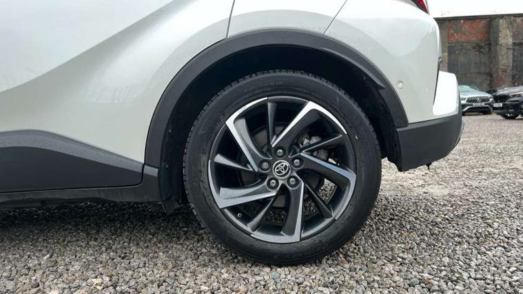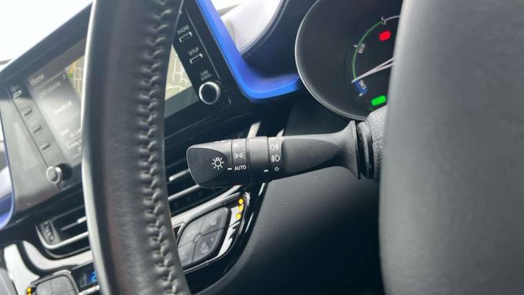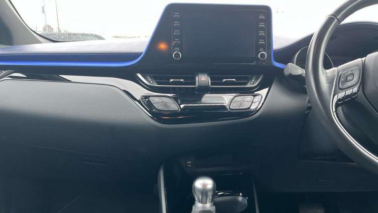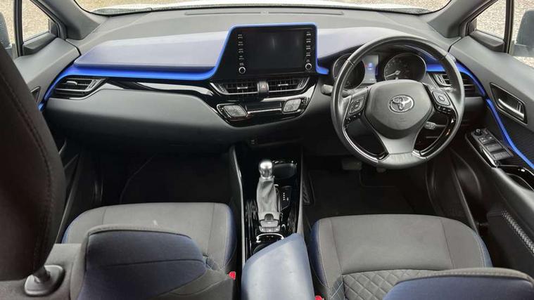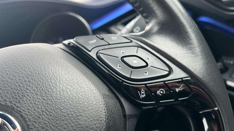 4.2" coloured TFT screen for multi-information display, Adaptive cruise control, Bluetooth connectivity, Electric power steering, Hybrid system indicator, Lane departure alert with steering control, Remote boot door release in cabin, Remote boot door release in key, Reversing camera, Road sign assist - RSA, Simple Intelligent parking assist, Touch 2 Go navigation system, Trip computer, Voice recognition, Vehicle Stability Control (VSC), 6 speakers, Aux connectors + 12V front outlet, DAB Radio (Digital Audio Broadcasting), Toyota touch 2 multimedia system with 8" display, USB connector integrated with radio and CD player, Wi-fi connectivity, Adaptive front light system, Adaptive LED Headlights, Anti-jam protection on power windows, Auto high beam, Auto up and down function on all power windows, Automatic headlight levelling, Automatic headlights, Automatic headlights cut-off, Automatic wipers with heated folding mirrors, Bi-tone black roof, Black and body coloured rear bumper, Black front bumper, Black upper front grille, Body colour door handles, Body colour door mirrors, Boot door release with push button, Electric heated door mirrors, Follow me home headlights, Front and rear power windows, Front spoiler, Hard tonneau cover, Honeycomb lower front grille, LED daytime running lights, LED fog lights, LED front light guide, LED High mounted stop light, LED rear brake lights, LED rear combination lights, Noise reduction layer on front windows and windscreen, Power adjustable door mirrors, Privacy glass, Rear spoiler, Rear tailgate, Rear window defogger, Rear window wiper, Shark fin antenna, UV-filter on driver and passenger windows, UV-filter on rear windows, 12v power outlet - front, 3 rear headrests, 3 seat bench in 2nd row, 3 spoke leather steering wheel, 60/40 split folding rear seat, Adjustable rear headrests, Adjustable speed limiter switch on steering wheel, Assist grips front and centre pillar, Audio and telephone switches on steering wheel, Black front door assist grips, Blue ambient lighting on front cup holders, Blue ambient lighting on front doors, Boot light, Chrome interior door handles, Cloth upholstery, Driver and front passenger personal light, Driver and front passenger Whiplash Injury Lessening seats, Driver and passenger seatback pockets, Dual zone automatic air conditioning, Floor mats, Front cupholders, Front head restraints, Front sports seats, Glovebox with internal light, Heated driver and front passenger seats, Hooks for luggage holding net, Humidifying Nanoe air purifier, Illuminated entry system, Isofix attachments on rear seats, Leather gearshift, Light on driver sun visor, Light on passenger sun visor, Manual telescopic steering wheel, Manual tilt steering wheel, Manually adjustable lumbar support on driver seat, Manually height adjustable driver seat, Manually height adjustable front passenger seat, Manually reclining driver seat, Manually reclining front passenger seat, Manually sliding driver seat, Manually sliding front passenger seat, Microphone on front personal light, Mirror on driver sun visor, Mirror on passenger sun visor, Multimedia switches on steering wheel, Pollen filter, Shopping bag hooks, Slow opening on lower glovebox, Voice recognition switch on steering wheel, Parking sensor pack - C-HR, Tech pack - C-HR, 16 Disk front wheel brake, 3x3 point rear seatbelts, ABS+EBD+Brake assist, Electronic parking brake, ESP + traction control, Front and rear seatbelt reminder, Front passenger airbag on/off switch, Hill start assist control (HAC), Pre collision system with pedestrian detection, Pre-tensioners and force limiters, Rear door child safety locks, SRS Airbags - Driver + Front passenger, front side, front and rear curtain and driver's knee airbags, Toyota safety sense, Tyre pressure monitoring system, Glass-breaking alarm sensors, Immobiliser, Intrusion alarm, Intrusion sensor, Motion sensor alarm, Power door locks, Power passenger window lock, Remote central locking, Remote door lock, Black lower dashboard, Black lower driver dashboard, Blue deco line on upper dashboard, Blue upper dashboard, Piano black console, Tyre repair kit,
