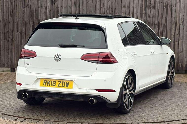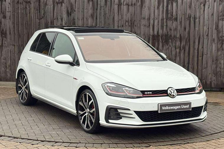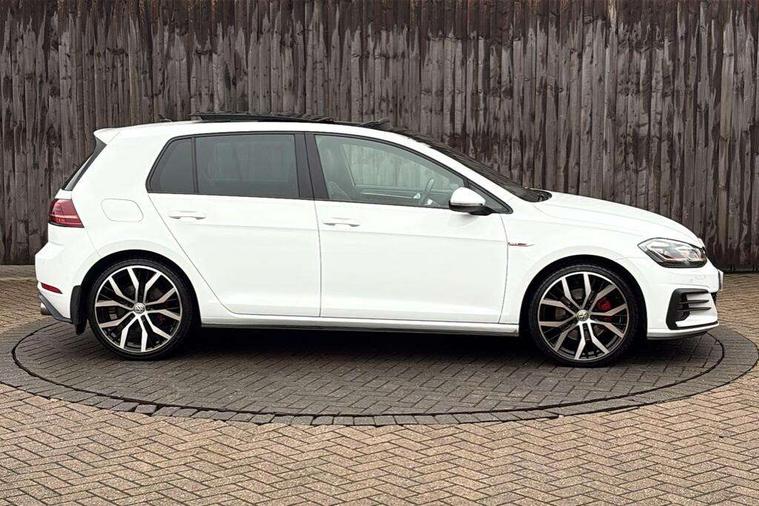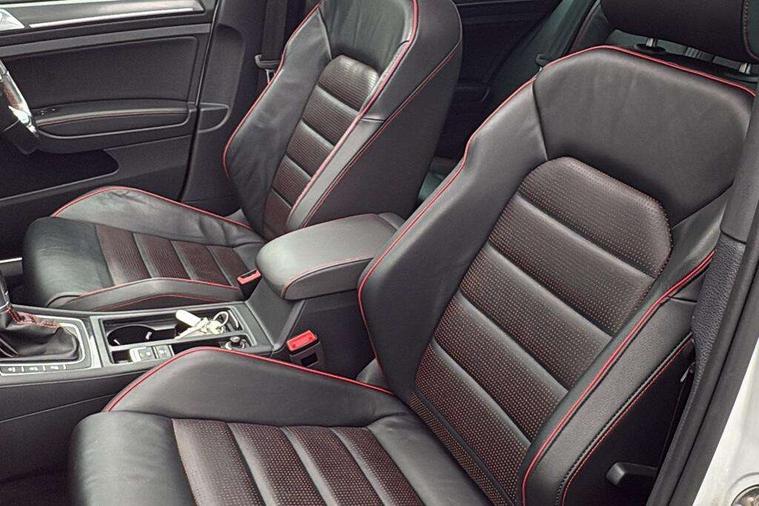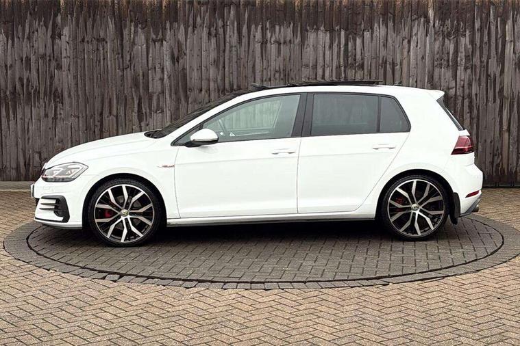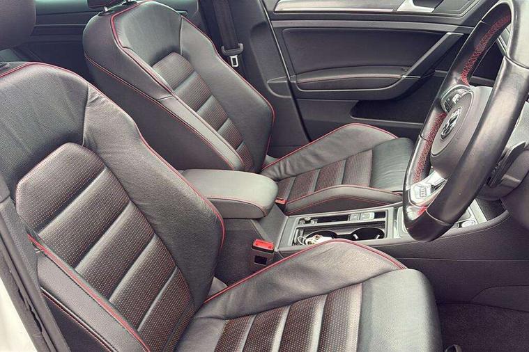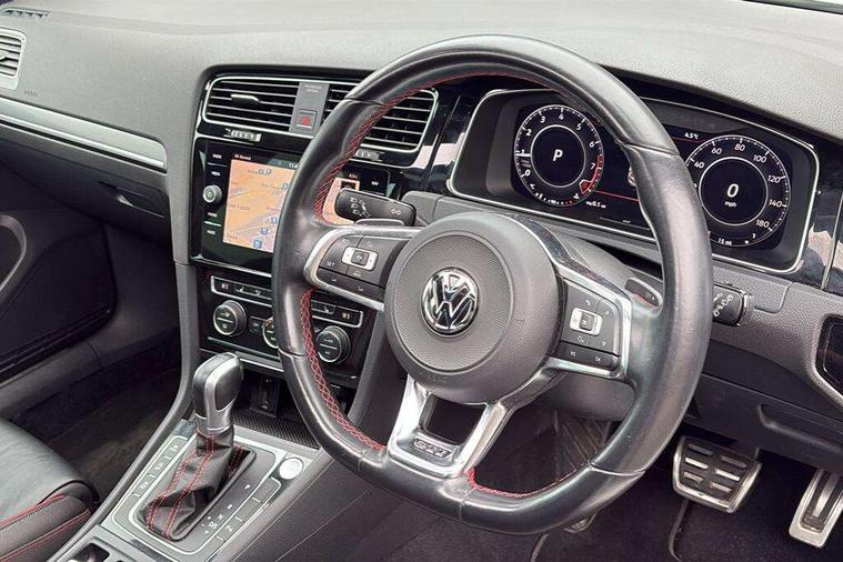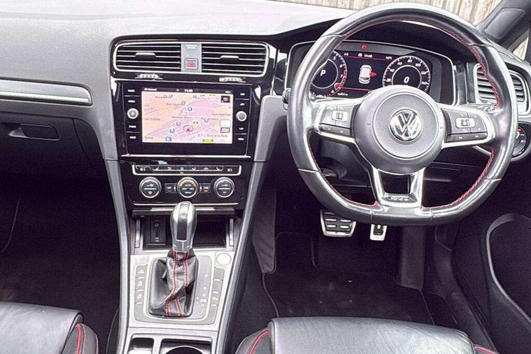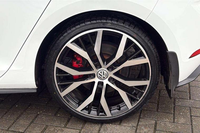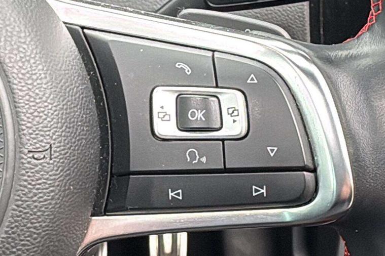'Lights On' Reminder warning buzzer, 8" touch screen, Adaptive Cruise Control with pedestrian detection and speed limiter, App-Connect, Bluetooth hands free telephone connection, Brake pad wear indicator warning light, Driver alert system, Driver profile selection, Exterior temperature gauge, Front assistant collision mitigation, Instrument cluster in white, Multifunction computer, Progressive power assisted steering, Rev counter, Trip and service interval display, Ultrasonic front and rear optical and audible parking sensors, Warning buzzer and light for front seatbelts unfastened, Anti-tramp function, Lowered sports suspension, XDS plus electronic differential lock, CD/MP3/WMA, USB and SD card reader, aux-in, Composition media system, DAB Digital radio, 3D-LED-SBBR with sweeping indicator, Auto dimming rear view mirror, Automatic coming/leaving home lighting function, Automatic headlights, Black rear diffuser, Body colour door handles, Body colour door mirrors, Body colour rear roof spoiler, Body colour sports bumpers, Electric front windows, Electric rear windows, Electrically adjustable and heated door mirrors, Heated rear windscreen, Honeycomb radiator grille - black, LED daytime running lights, LED front fog lights, LED rear lights, Rain sensor, Rear windscreen washer and wiper with interval delay, Twin exhaust tailpipe, 12V socket in luggage compartment, 3 rear headrests, 3 spoke steering wheel, 60/40 split folding rear seat, Air conditioning - 2 zone electronic climate control, Bag hook in luggage compartment, Black headlining, Boot lashing points, Cooled glovebox, Courtesy light delay, Cover for storage compartment in centre, Dust/pollen filter, Front + rear carpet mats, Front centre armrest with storage box and rear air vents, Front passenger seat height adjust, Front seat back storage pockets, Gearshift paddles, Grab handles, Height adjustable driver's seat, Height/reach adjust steering wheel, Illuminated door sills, Illuminated vanity mirrors, Isofix preparation for 2 rear child seats, Load through provision with rear centre armrest and cupholders x2, Luggage compartment cover, Luggage compartment lighting, Multi-function leather steering wheel with red stitching, Overhead storage box, Stainless steel pedals, Storage box in luggage compartment, Storage compartments in doors, Sun visors, Variable boot floor, height adjustable and removable, Ambient lighting pack - Golf, Mirror pack - Golf, 3 point height adj front seatbelts + pretensioners, 3 rear 3 point seatbelts, ABS, Automatic post collision braking, Child locks on rear doors, Driver/Front Passenger airbags, Driver/Passenger whiplash optimised head restraints, Drivers knee airbag, Electronic parking brake with auto hold, ESP with EDL + ASR, Front and rear curtain airbags, Front passenger airbag deactivation, Front side airbags, Pre crash system, Red brake calipers, Tyre pressure monitor, Alarm with interior protection, Electronic engine immobiliser, Remote central locking with 2 remote folding keys, Chrome-plated light switch surround, Honeycomb black decorative inserts, Piano black centre console, Space saver spare wheel,