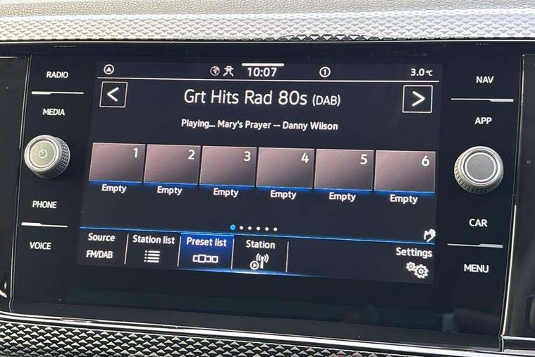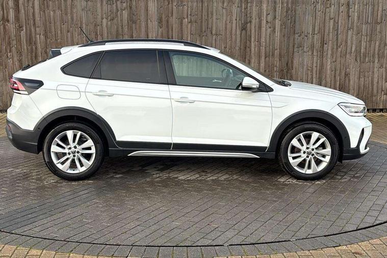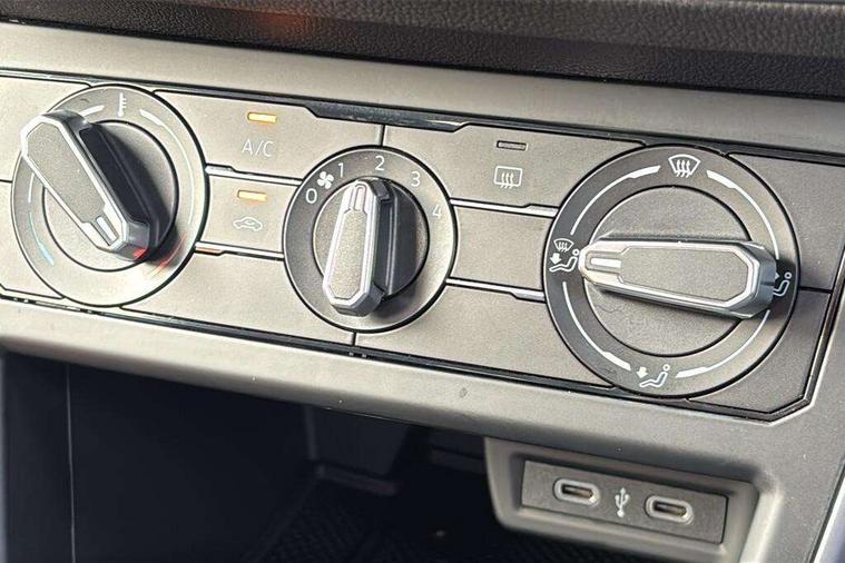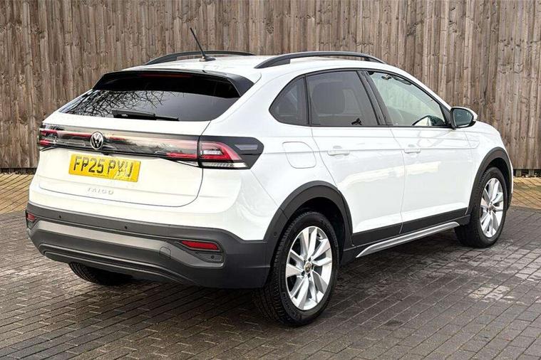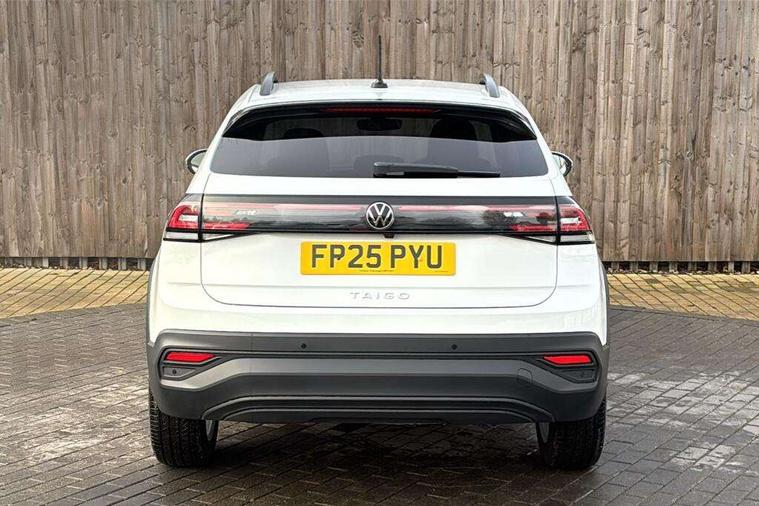 8" Digital cockpit basic display, Advanced driver attention and drowsiness monitor, Dynamic road sign display, e-Call (emergency call), Power Steering, Predictive adaptive cruise control, Rear view camera, Travel assist including emergency assist, Washer fluid level indicator, Wireless Charging including Bluetooth, Start-stop system with battery regeneration (recuperation - energy recovery during braking), Digital radio reception (DAB+), WeConnect plus, Ambient lighting with logo projection, Aspherical driver's exterior mirror, Body coloured bumpers, Body coloured exterior mirror housings and door handles, Electric windows, External USB type C socket and charging sockets, Heat insulating glass windscreen, LED rear combination lamp, LED third brake light, Left convex exterior mirror, Power folding adjustable/heated exterior mirrors and front passenger exterior mirror lowering function, Rear fog light on one side, reversing light on both sides, Rear side wing doors, Rear wash/wipe with intermittent wipe setting, Side windows in heat-insulating glass, from B-pillar and rear window dark tinted, 'Slash/ Austin' Cloth upholstery, 12V socket in centre console, 2 front reading lights, 3 rear head restraints, 3 seat bench in 2nd row, Black carpets, Ceramique headliner, Child seat anchor for child seat system i-Size, 2x top tether and child seat anchor in front on front passenger side, Door and side trim panels in titan black, Driver and front passenger seat height adjustment, Front centre armrest, Handbrake lever handle in leather, Height and reach adjustable steering wheel, Leather trimmed gear knob, Leather wrapped multifunction steering wheel, Luggage compartment floor, Luggage compartment light, Lumbar support for driver's and front passengers seat, Seat covers in titanium black, Single front passenger seat, Split folding backrest with centre armrest and unsplit rear seat bench, Storage compartment under front seats, Sun visors with illuminated vanity mirrors, Titanium black instrument panel, Chrome Package - Taigo, Drivers assistance package - Taigo, Light and sight pack - Taigo, 2 x 3-point seatbelts/outer rear seats with ECE label, 3-point seat belts in front with pretensioner and height adjustment, 3-point seatbelt for centre rear seat, Driver and front passenger airbag with front passenger airbag deactivation, Driver and front passenger safety-optimised head restraints, Electronic stability control, Extended and predictive pedestrian/ cyclist protection, Front and rear disc brakes, Front curtain and side airbags with center airbag, Hill start assist, Manual rear child locks, Single tone horn, Tyre pressure loss indicator, Anti-theft alarm system with interior monitoring, backup horn, and towing protection, Keyless locking and starting system keyless access with safelock, Black (slush) Dashboard, Lava stone black gloss/matt decorative inserts in dash and front door panels, Low rolling resistance tyres,