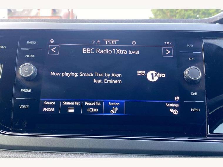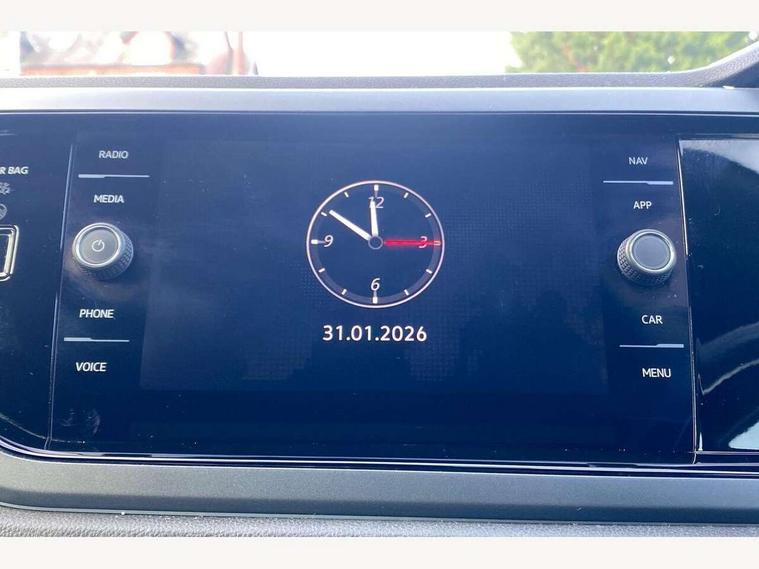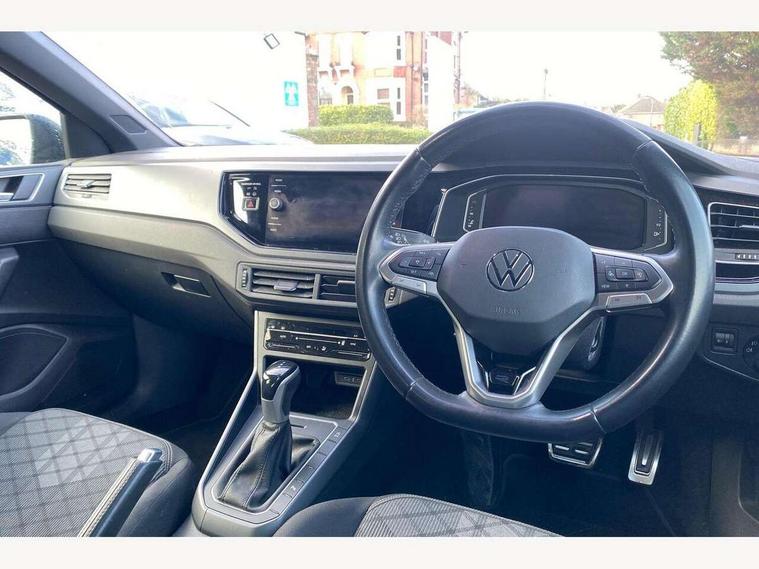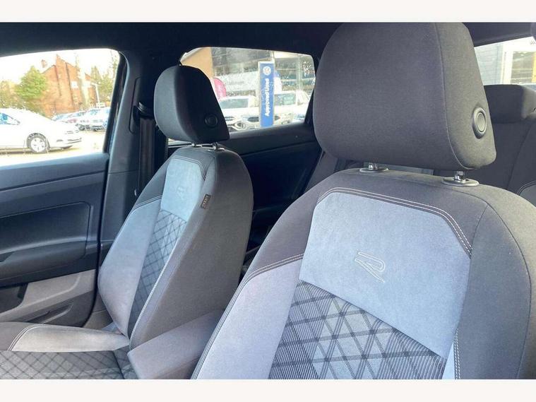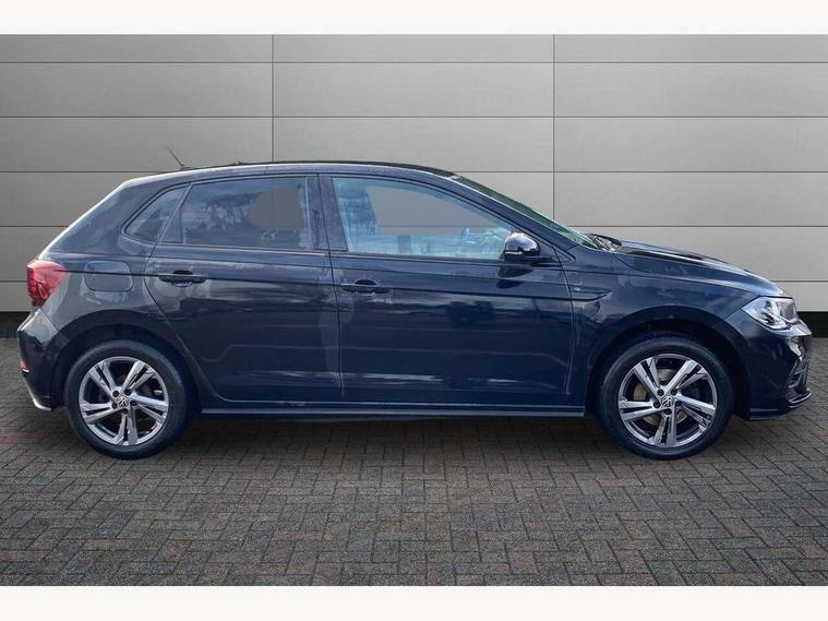 Adaptive cruise control with follow-to-stop and speed limiter, Bluetooth mobile phone interface, Digital Cockpit Pro with 10.25" Display, Driver alert system, Dynamic road sign display, Emergency call service, Power assisted speed sensitive steering, Preparation for We connect and We connect plus, Speedo and rev counter, electronic odometer, trip, service interval display and fuel gauge, Standard rear axle, Travel Assist - Lane keeping system and traffic jam assist, Travel assist including emergency assist, Trip computer, Warning signal and warning light for front and rear seatbelts not fastened, Washer fluid level indicator, Wireless app connect, Front wheel drive, Rear shock absorpion, Start-stop system with battery regeneration (recuperation - energy recovery during braking), DAB Digital radio, Diversity antenna for FM reception, Front and rear 6 speakers, Body colour bumpers, Body colour door handles, Body colour door mirrors, Electric front windows, Front scuff plates with R-Line logo, Heat insulating darkened glass in side and rear windows, Heat insulating glass windscreen, Power folding adjustable/heated exterior mirrors and front passenger exterior mirror lowering function, Rear electric windows, Rear fog light, Rear side wing doors, Rear tinted glass from B-pillar backwards approx 65% tinted, Rear windscreen washer and wiper with interval delay, Third brake light, 12V power socket in centre console, 2 USB-C ports in the front, 2 USB-C charging sockets on the center console in the rear, 3 rear head restraints, 60/40 split folding rear seat and rear seat bench not split, Air care climatronic air conditoning system with active combination filter and 2-zone temperature control, Black roof lining, Ceramique headliner, Chrome plated radiator grille inserts, air vent surrounds and light switch surrounds, Door and side trim panel, Driver and front passenger seat height adjustment, Driver/passenger sunvisors with illuminated vanity mirrors, Front + rear carpet mats, Front centre armrest, Front footwell illumination, Front seat backrest storage pockets, Front sports comfort seats, Handbrake lever handle in leather, Isofix child seat preparation easy-fit (for two outer rear seats, and front passenger seat) compatible with I-size, Karoso artvelours cloth upholstery, Leather trimmed gear knob, LED interior light with switch off delay and dimmer, 2 reading lights front and rear, Luggage compartment cover, Luggage compartment floor, Luggage compartment lighting, Lumbar adjustment for front seats, Single front passenger seat, Stainless steel pedals, Standard pedal cluster, Three spoke leather wrapped multifunction steering wheel with shifting paddles, Light and sight pack - Polo R-Line/Black Edition, 3 point height adj front seatbelts + pretensioners, 3x3 point rear seatbelts, ABS, Driver and front passenger airbag with front passenger airbag deactivation, Drivers and front passengers safety optimised head restraints, ESC (Electronic stability control) + EDL (Electronic Differntial lock) and ASR (Traction control), Extended and predictive pedestrian/ cyclist protection, Front curtain and side airbags with center airbag, Front/rear disc brakes, Hill hold control, Manual child lock in rear doors, Single tone horn, Tyre pressure loss indicator, Alarm with interior protection, Anti-theft alarm system with interior monitoring, backup horn, and towing protection, Anti-theft wheel bolts, Electronic engine immobiliser, Chrome applications on rotary light, mirror adjustment, window regulator switches, outlet with frame in black, Dark grey anodised matt decorative inserts in dash and front door panels, Low rolling resistance tyres,