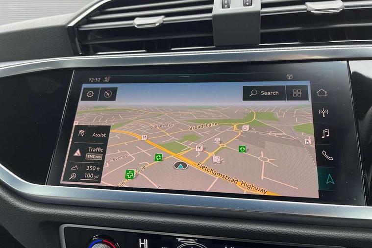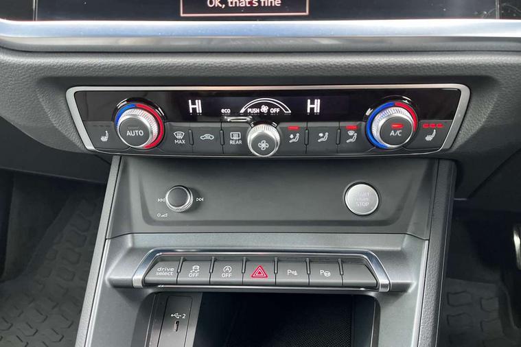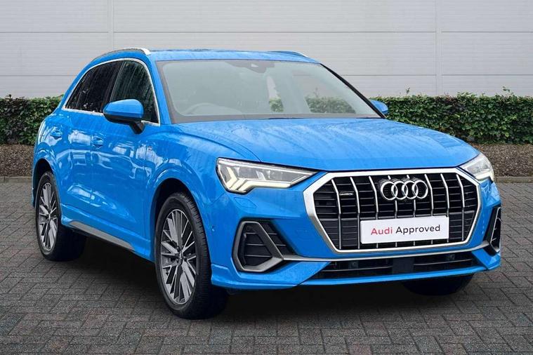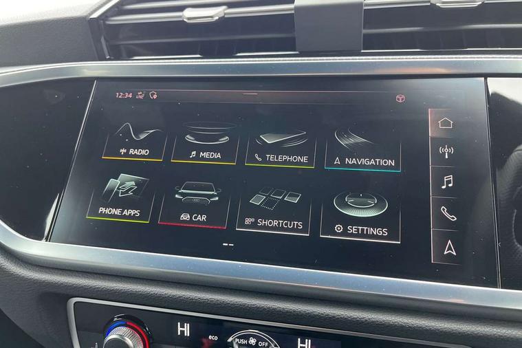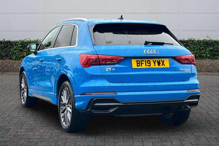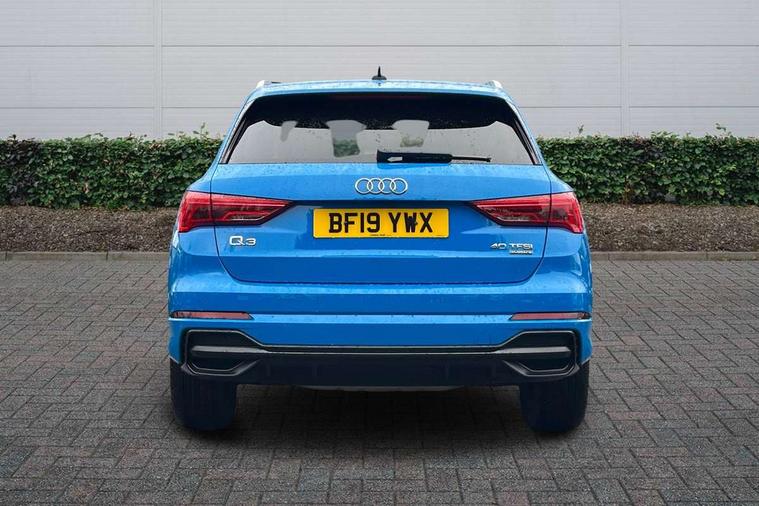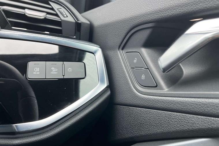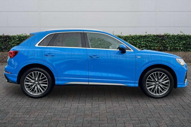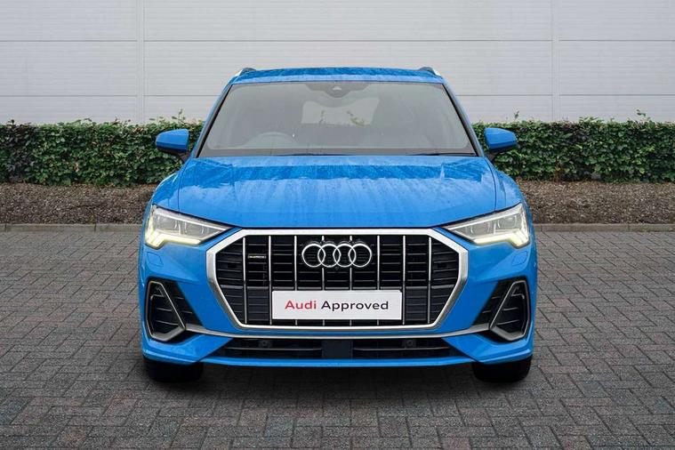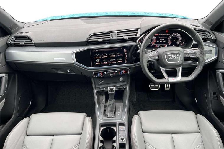 Audi connect safety and service (e-call), Audi drive select, Audi lane departure warning, Audi side assist, Audi smartphone interface, Audi Virtual Cockpit - 10.25" display, Bluetooth interface, MMI navigation plus with MMI touch, Power opening/closing tailgate, Progressive steering, Service interval indicator, Stop/start system, Voice control system, DAB digital radio module, Acoustic windscreen, Aluminium roof rails, Aluminium window trim, Auto dimming rear view mirror, Body colour door mirrors, Body coloured bumpers, Diffuser in matt Platinum grey, Electrically adjustable and heated door mirrors with integrated LED side indicators, Front and rear electric windows, Front fog lights, Front side air inlets in matt platinum grey, Front spoiler blade in matt platinum grey, Grille vertical bars in aluminium silver/Matt, High gloss black finish B and C pillars, Privacy glass, Rain and light sensors, Rear diffuser strip in selenite silver, S Line badge on wings, S Line front and rear bumpers, Side skirt insert in matt Platinium grey, Titanium black radiator grille, 12V socket in rear centre console, 40:20:40 split folding rear bench seat, Adjustable rear seat bench/backrest with centre armrest and cupholder, Aluminium door sill trims, Black cloth headlining, Dual zone climate control, Front and rear black floor mats with contrast stitching in rock grey, Front and rear headrests, Front centre armrest with storage compartment and angle adjustment, Illuminated door sill trims with S logo, ISOFIX child seat mounting and Top Tether with front passenger airbag deactivation, Perforated leather gearknob, Stainless steel luggage compartment sill finisher, Stainless steel pedals, Non smoking pack - Q3, 3x3 point rear seatbelts, 6 airbags - Driver, front passenger, curtain and side windows, Audi pre-sense front with pedestrain and cyclist recognition, Electronic stabilisation control including ABS, ASR and EDL, Hill hold assist, Pre sense basic, Seatbelt monitoring, Tyre pressure warning, Warning triangle and first aid kit, Anti theft alarm, Anti theft wheel bolts, Remote central locking, Dark matt brushed aluminium inlay, MMI touch colour display in gloss black with aluminium surround,