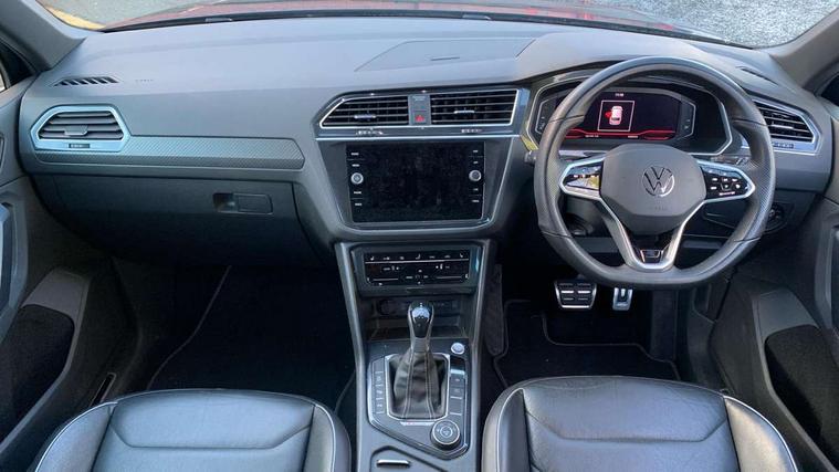 Adaptive cruise control ACC stop and go including speed limiter, App-Connect incl. App-Connect Wireless for Apple CarPlay and Android Auto, Bluetooth phone integration system, Digital Cockpit Pro - Active info display, Distance control assist, Driver alert system, Driver profile selection, Dynamic road sign display, eCall emergency call system, Electromechanical speed sensitive power steering, Lane keeping system Lane Assist, Lights on warning, Multifunction front facing camera, Outside temperature display, Premium multifunction display with multi colour display, Revision / skills operating concept travel assistant, Service interval indicator, Start/stop system with regenerative braking, Warning sound and light for doors and tailgate open, Battery regeneration during braking, Diesel particulate filter, Misfuel prevention device for diesel engine, XDS electronic differential lock for improved traction and handling, 2 USB-C ports in the front, 1 USB-C charging socket on the center console in the rear, Diversity antenna for FM reception, Radio, SD card slot, Simultaneous pairing of 2 compatible mobile devices, SMS functionality - read, compose and send SMS messages using touch-screen display, Title and cover art display, Auto dimming interior rear view mirror, Automatic headlight control system, Black roof rails, Body colour door handles, Body coloured bumpers in R Line style, Chrome moldings on the side windows, Coming/leaving home lighting function, Dynamic headlight range control, Front and rear electric windows, Heated rear window, High level 3rd brake light, Laminated safety glass windshield, heat and sound insulating, LED rear number plate lights, License plate carrier in front and rear, Poor weather light and cornering light, Privacy glass for rear side windows and rear window, R Line body kit, R Line side sills, Rain sensor windscreen wipers, Rear exhaust tailpipe, Rear fog lamp, Rear spoiler in R style, Rear windscreen washer and wiper with interval delay, Side and rear windows in heat insulating glass, Trailer Stability Programme, Unique R Line badging, Windscreen wipers/ intermittent wipe + 4 position delay, 12V outlet in center console rear and in luggage compartment, 2 cup holders in front, 2 LED front reading lights, 2 LED rear reading lights, 3 rear headrests, 4 load lashing points, 40:20:40 split folding rear seats, Air Care Climatronic 3 zone automatic climate control with enhanced air filter and controls in the rear, Backrest release for left front seat, Black headlining, Brushed stainless steel pedals and footrest, Carpet mats in front and rear with decorative stitching in Gray, Climate control unit rear with touch function, Door and side trim panel in foam film, insert in leatherette, Front footwell illumination, Front seats head restraints (x-adjustment), Height adjustable front seats, Height/reach adjust steering wheel, Instrument lighting white adjustable panel illumination, Interior light with delay, Isofix Preparation 2 Rear child seats, Leather gear knob, Lockable cooled glovebox, Luggage compartment lighting, Rear bench seat asymetrically split folding, longitudinally movable and folding with load-through hatch and center armrest, Remote unlocking for rear seat backrest, Removable luggage cover, Safety optimised front head restraints, Sliding/reclining rear seats, Standard rear seat release, Storage compartment in driver's door, Storage compartment in passenger's door, Storage compartment in rear doors, Storage compartments in luggage area left and right, Storage tray on dashboard, Sun visors with illuminated vanity mirrors, Tool kit, Top front comfort seats, Variable boot floor, height adjustable and removable, Ambience pack - Tiguan R Line, Driver assistance pack plus - Tiguan, 3 point seat belt for centre rear seats, 3 point seat belts with seat belt pretensioners for the outer rear seats, Active bonnet, Curtain airbags for front and rear passengers, Driver/Front Passenger airbags, Drivers knee airbag, Electronic parking brake with auto hold, Electronic Stability Control with driver steering recommendation, ABS, ASR, EDL, EDTC and trailer stabilization, Front assist with autonomous emergency braking (for Adaptive Cruise Control ACC up to 130 mph), Front disc brakes, Front passenger airbag deactivation, Front side airbags, Height adjustable front 3 point seatbelts + pretensioners, Hill hold control, Pedestrian monitoring system, Proactive passenger protection system in combination with front assist, Rear disc brakes, Rigid safety cell with front and rear crumple zones, Two tone horn, Warning sound and light for front seat belts if unfastened, Anti theft alarm system with interior monitoring, backup horn and towing protection, Anti theft wheel bolts, Electronic engine immobiliser, 20" Misano black with diamond turned surface alloy wheels with Airstop tyres,