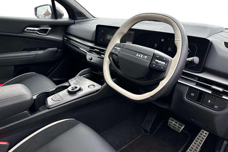 12.3" Driver display screen, 12.3" Touchscreen navigation system, 360 degree around view monitor, Blind spot collision avoidance assist, Blind spot view monitor, Bluetooth connection, Customisable head-up display, Digital key 2.0, Drive mode selector, Driver attention warning, E-call, Emergency stop signalling system, Forward collision avoidance assist 2.0, Front and rear parking sensors, Highway Driving Assist (HDA 2.0), Intelligent speed limit assist, Kia Connect (UVO), Lane Following Assist (LFA), Lane keep assist, Low washer fluid warning, Motor driven power steering, Over the air (OTA) functionality, Parking collision avoidance assist (PCA), Rear cross traffic collision avoidance assist (RCCA), Reversing camera, Safe exit warning (SEW), Smart cruise control with stop and go functionality, Smart power tailgate, Speed limiter, Trip computer, Windscreen washer level indicator, Wireless apple car play/android Auto, Wireless Smartphone charger, DAB Radio with MP3, Front passenger 1x USB-C port, Harman Kardon premium sound system with 8 speakers, Rear passenger 2x USB-C port, Steering wheel mounted audio controls, USB-C port for connection of a media device, Auto dimming rear view mirror, Automatic defog system, Automatic headlight control system, Black and body coloured bumpers, Black window surrounds, Body colour exterior door handles, Body colour radiator upper garnish and door garnish, Dual LED headlights with adaptive driving beam, Electric front and rear windows with front one touch function, Electrically adjustable/heated/folding door mirrors with LED indicators, Front and rear body colour skid plates, Gloss black door mirrors, Gloss black radiator grille, Gloss black wheel arches, Glossy black roof rails, GT-Line exterior styling, Heated rear window, High beam assist, LED daytime running lights, LED front fog lamps, LED High mounted stop light, LED rear lights, Panoramic sunroof with tilting and sliding function with electric blind, Privacy glass in rear windows and tailgate, Rain sensing wipers, Rear fog lamp, Rear roof spoiler, Rear side wing doors, Rear wiper, Satin finished beltline, Trailer stability assist, 12V power socket in front and luggage compartment, 3 seat bench in 2nd row, 3 x passenger assist grips, 40/20/40 split folding rear seat, All-round height adjustable headrests, Alloy pedals, Automatic air conditioning, Black headlining, Centre console storage box, Cupholders in rear armrest, Customisable ambient lighting, Door courtesy lamps, Driver and front passenger sunvisors with illuminated vanity mirrors, Drivers seat power lumbar support, Electric adjustable driver seat with memory function, Electric adjustable front passenger seat, Front and rear door storage, Front seat and rear pockets, Gear shift indicator, Glovebox, GT-Line Interior Styling, Heated front and outer rear seats, Heated steering wheel, ISOFIX Child seat top tethers and anchor fixings outer rear seats, Leather steering wheel, Leather/suede upholstery, LED front cabin light, LED interior personal lamp, LED lighting in overhead console, LED rear reading lights, Luggage area LED light, Luggage area load cover, Luggage area parcel shelf, Luggage board, Luggage compartment under floor storage, Luggage net hooks, Manual adjust steering wheel, Metal paint interior door handles, Paddle shift controls, Rear air conditioning, Rear cabin light, Rear coat hooks, Single front passenger seat, Ventilated front seats, Ventilation ducts to rear compartment, Active front headrests, All round 3-point seatbelts, Anti-lock braking system (ABS), Dual front side airbags, Dual horn, Dynamic brake control, Electronic parking brake with auto hold function, Electronic stability control with downhill brake control, Front passenger airbag cut-off switch, Front seatbelt pretensioners + load limiters, Height adjustable front seatbelts, Hill start assist control (HAC), Impact sensing auto door unlocking, Multi collision brake assist, Rear airbags, Rear door child safety locks, Rear seat alert system, Seatbelt reminder warning, Traction control, Twin curtain airbags, Twin front airbags, Tyre pressure monitoring system, Vehicle stability management, Customisable automatic door locking, Customisable automatic door unlocking, Door deadlocks, Engine Start/Stop Button with Smart Entry System, Locking wheel nuts, Smart key with motion sensor, Speed sensitive auto door locking, Thatcham category 2 security alarm and immobiliser, Visible vehicle identification number, 18" GT-Line alloy wheels, Tyre mobility kit,